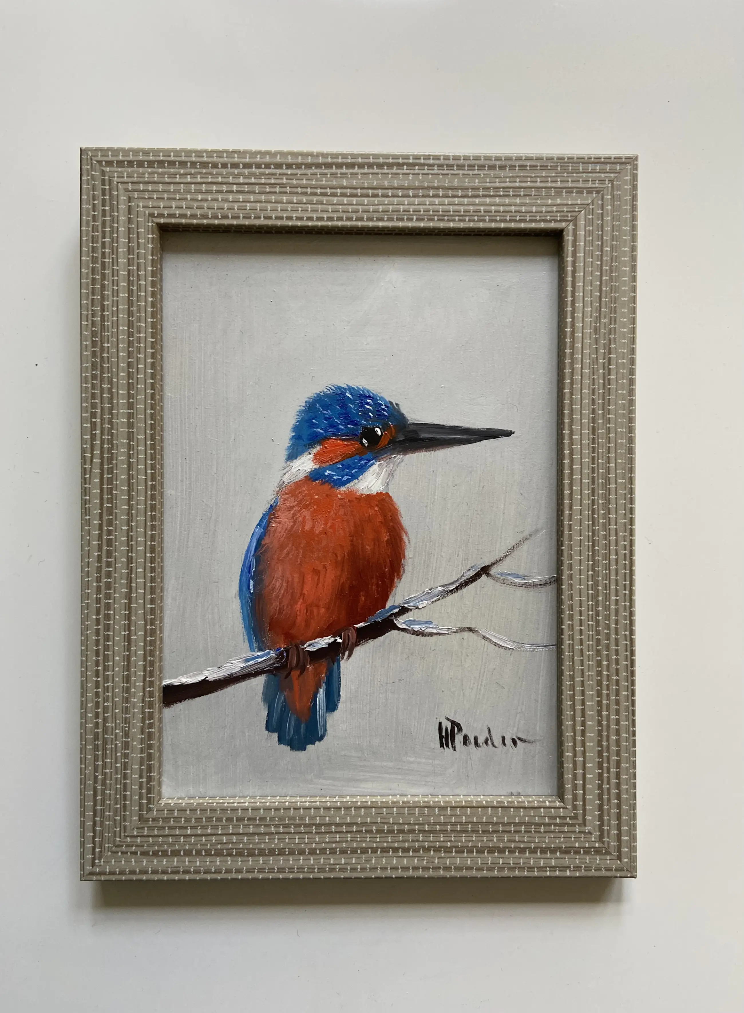 Leuk werk van Henk poeder 1964 betreft een Ijsvogel op tak , schilderij is rechts onder gesigneerd h poeder schilderij