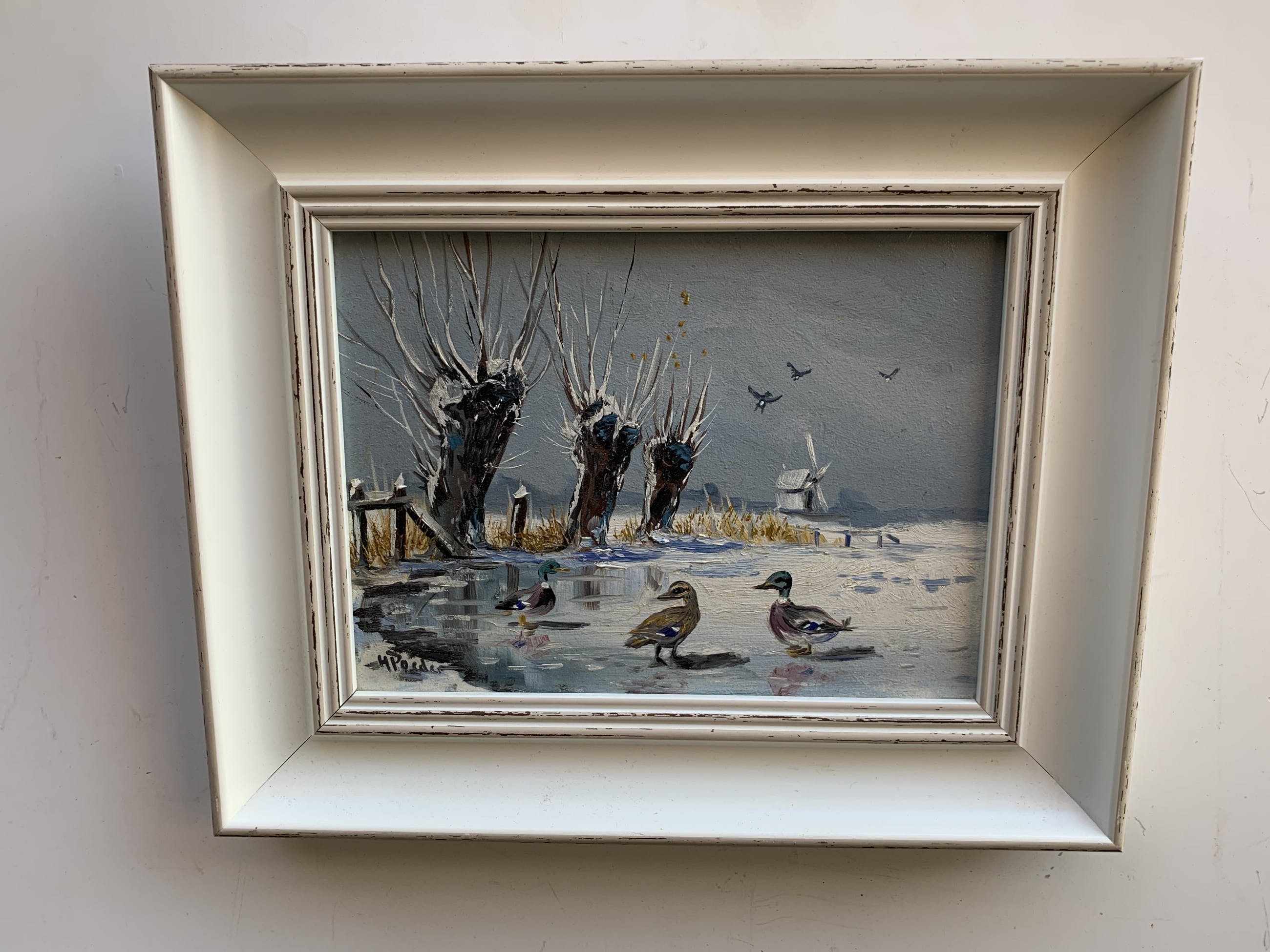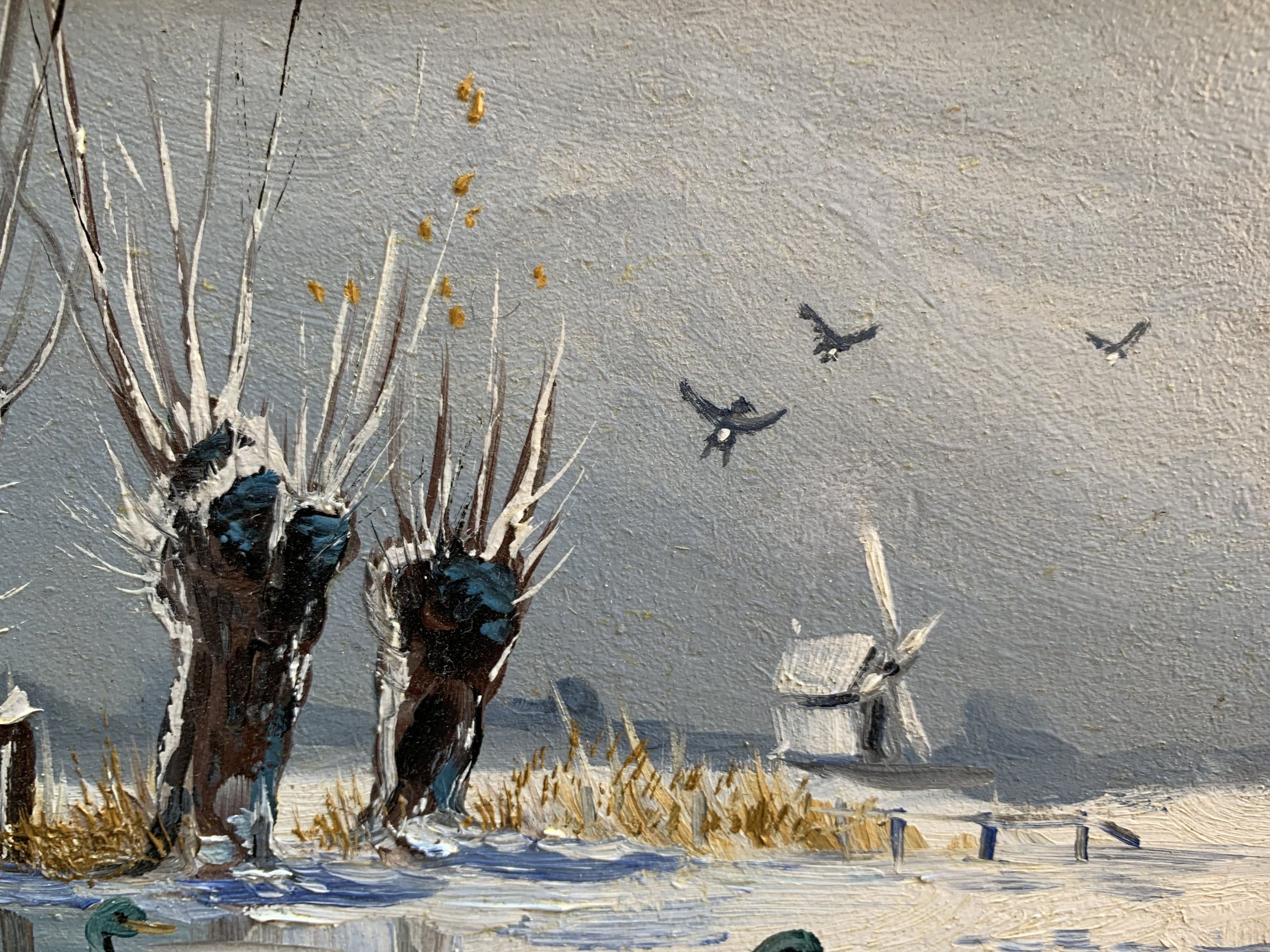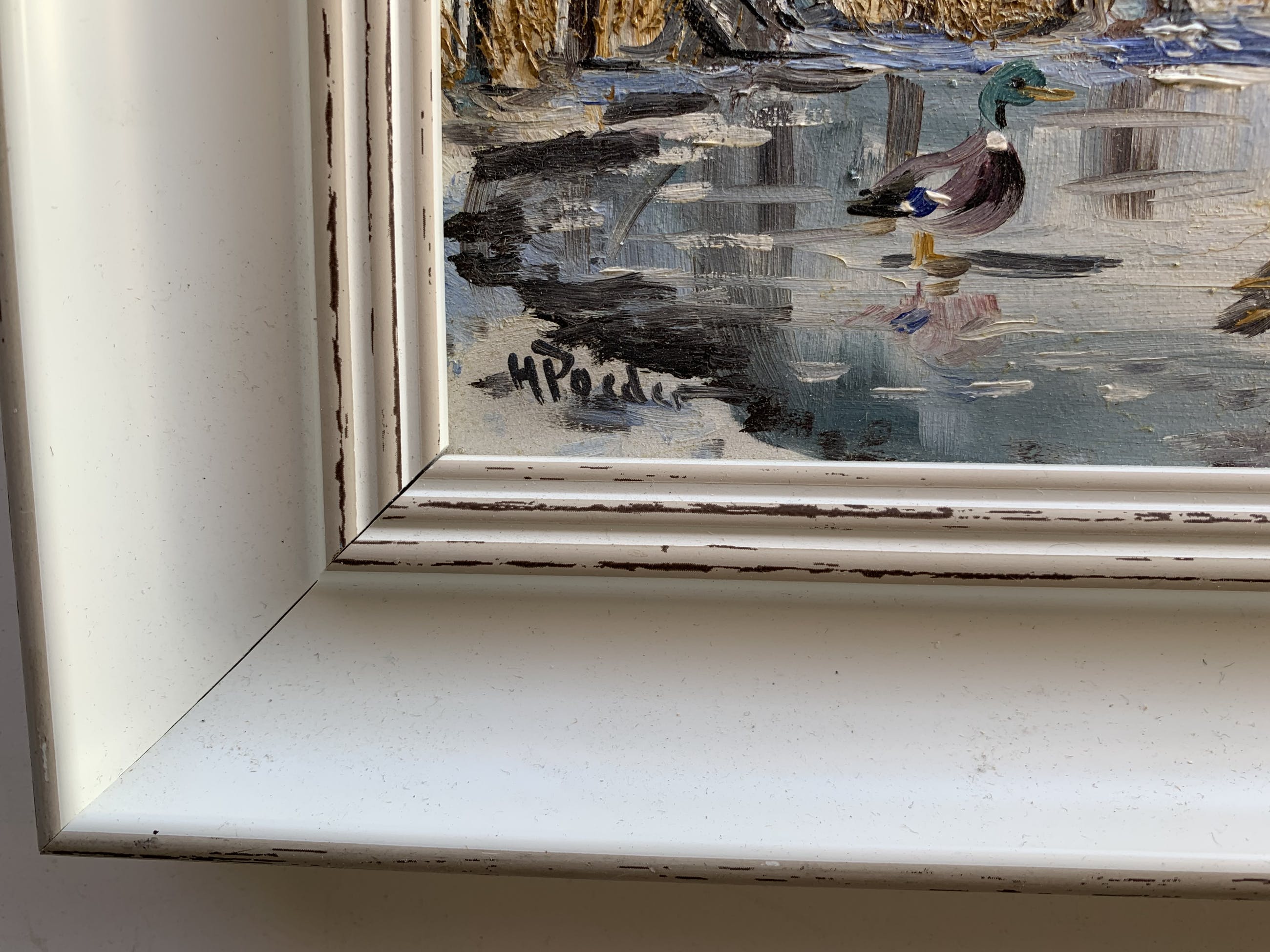 Prachtig polderlandschap van H Poeder info rijks kunst en documentatie Denhaag (rkd) betreft een winters polderlandschap met eenden bij een wak gesigneerd h poeder links onder