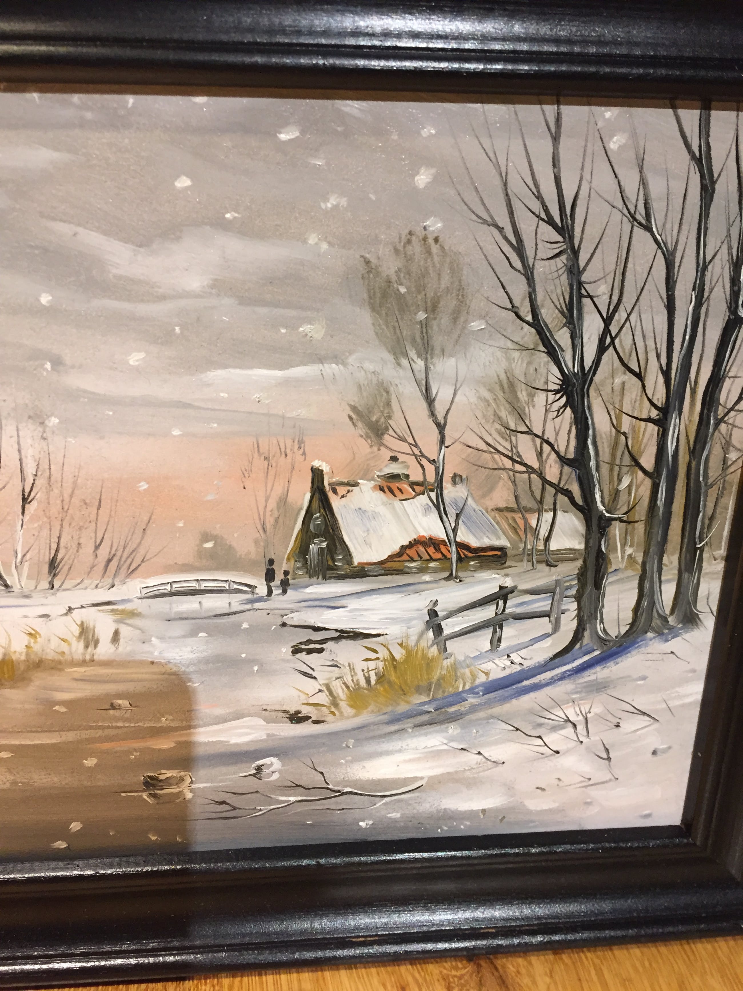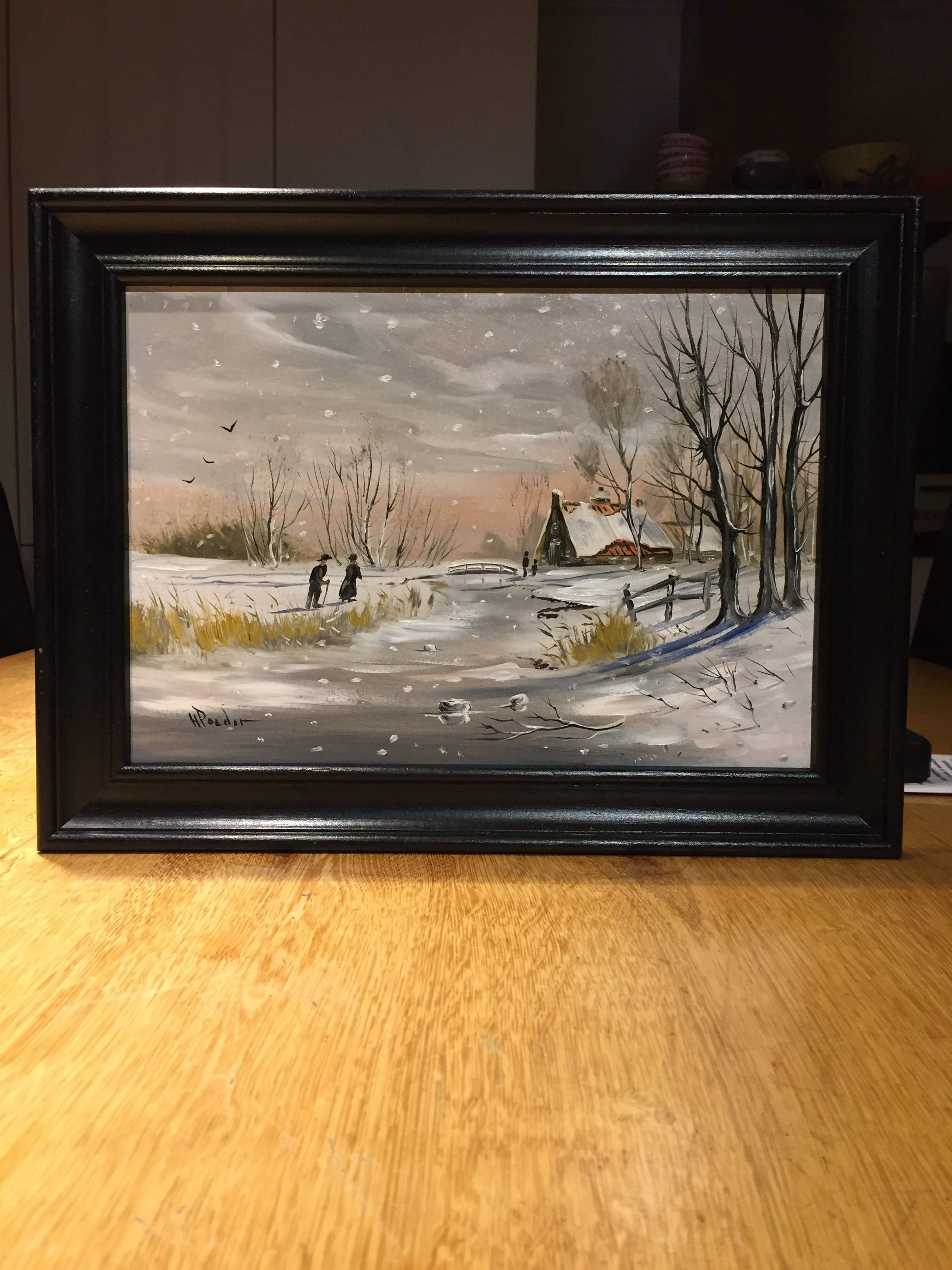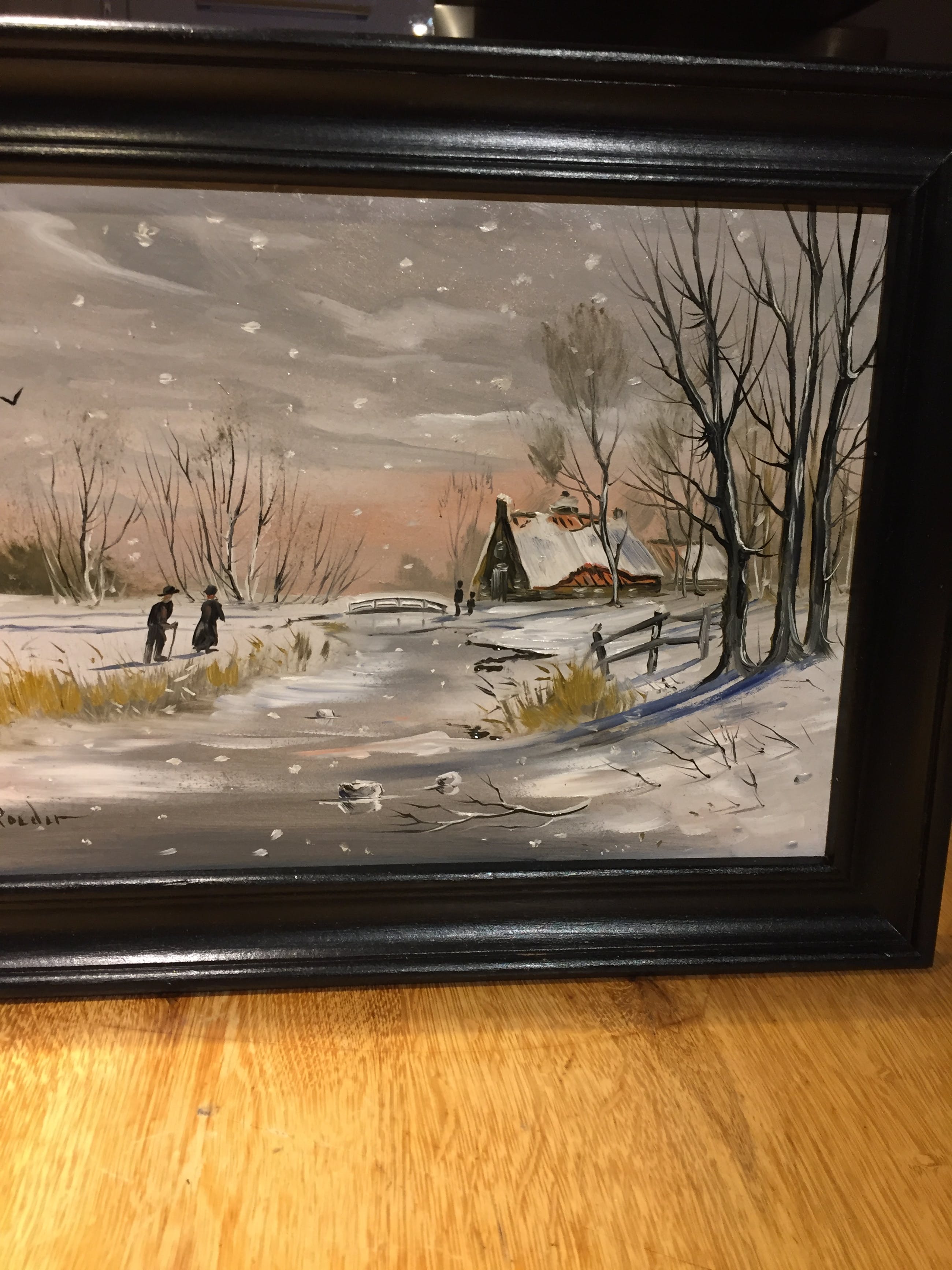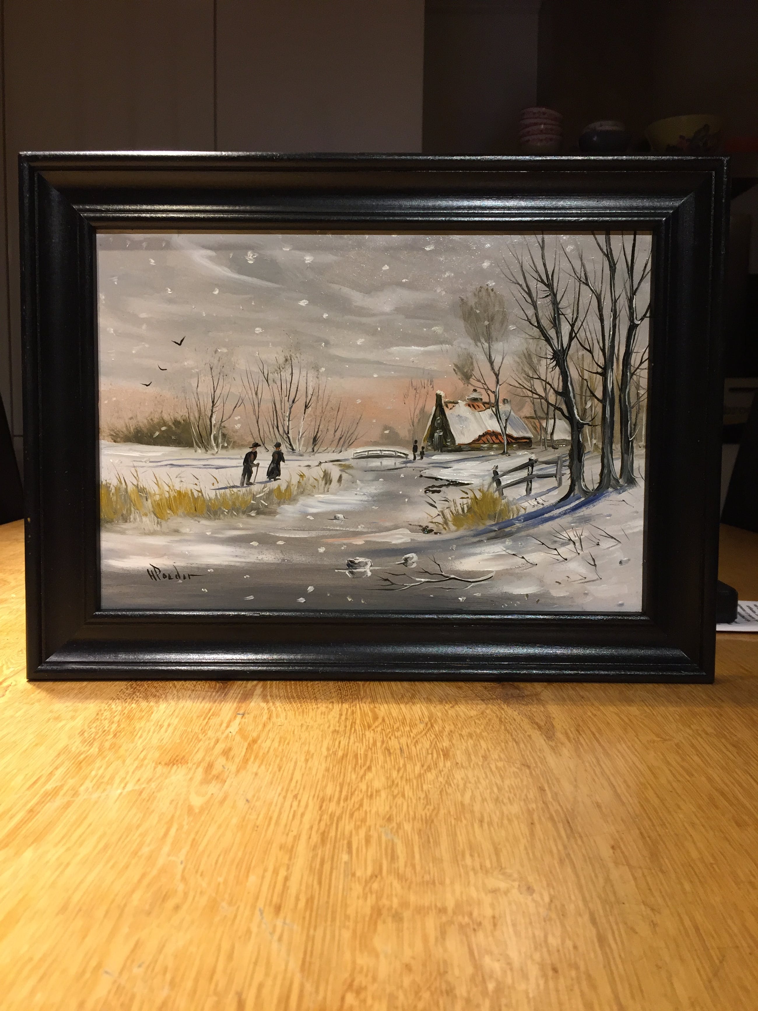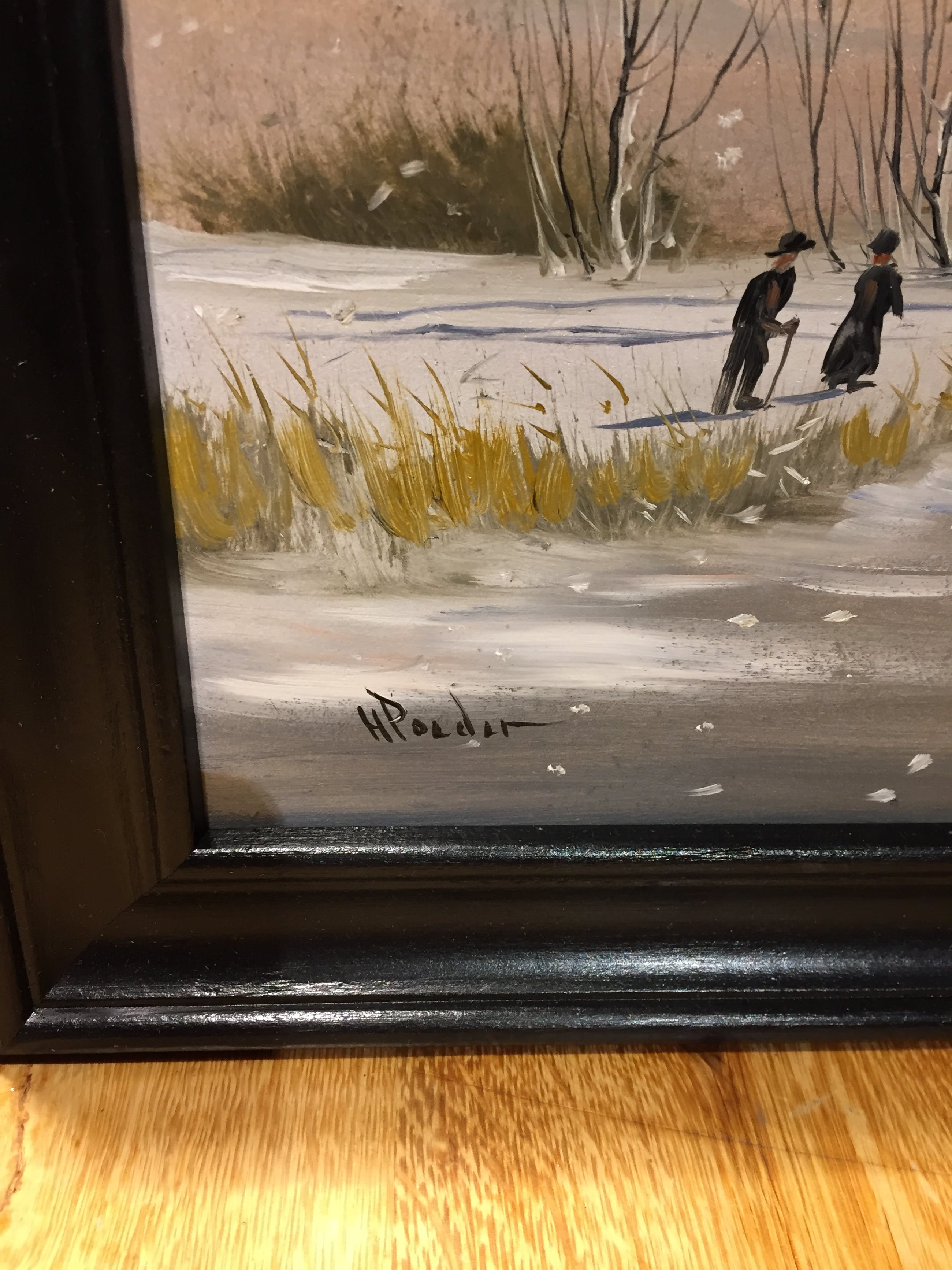 Mooi winterlandschap van h poeder 1964, mooie houten lijst er schilderij spreekt voor zich ,een mooie winter waar vallende sneeuw nog valt .