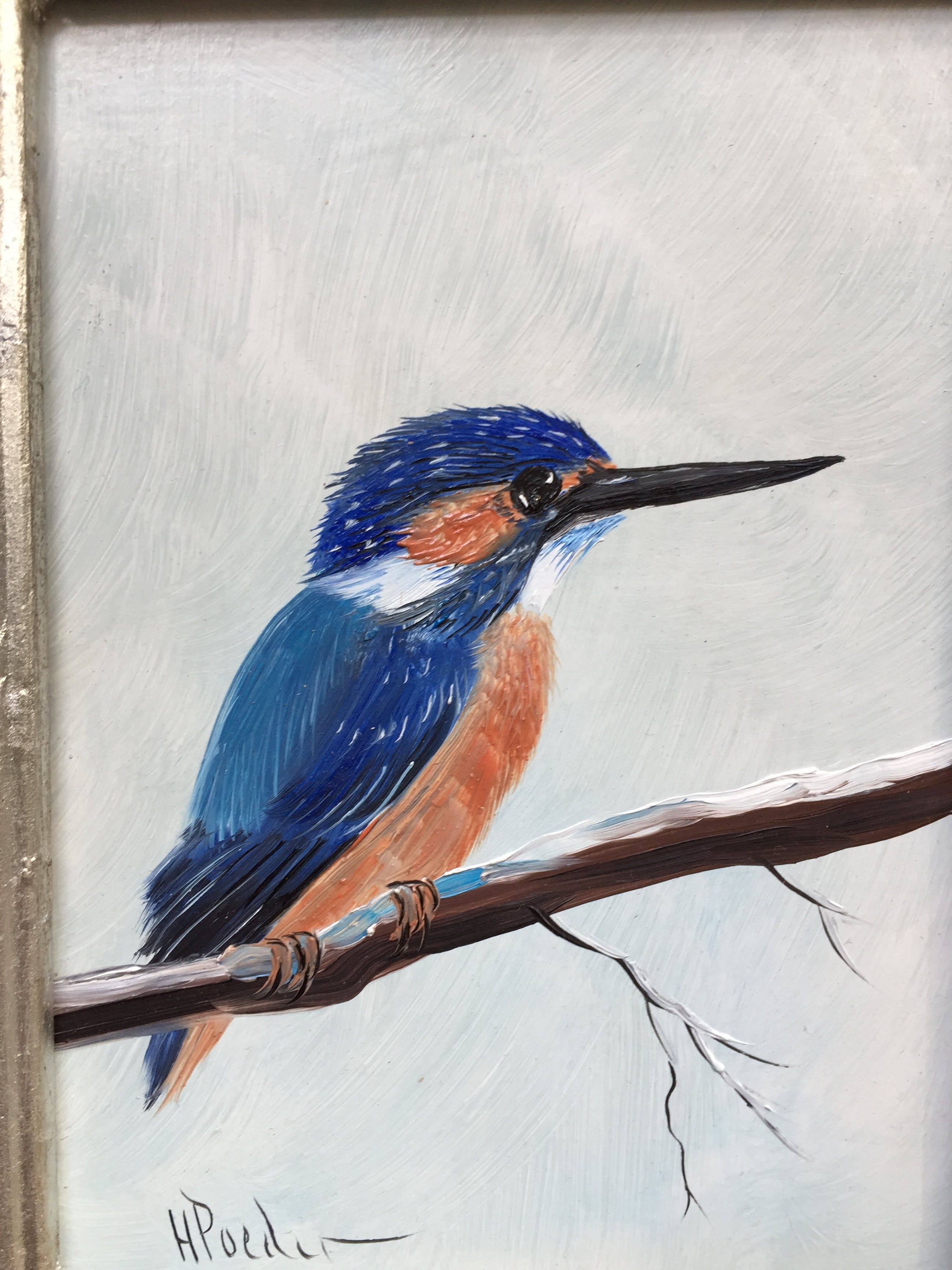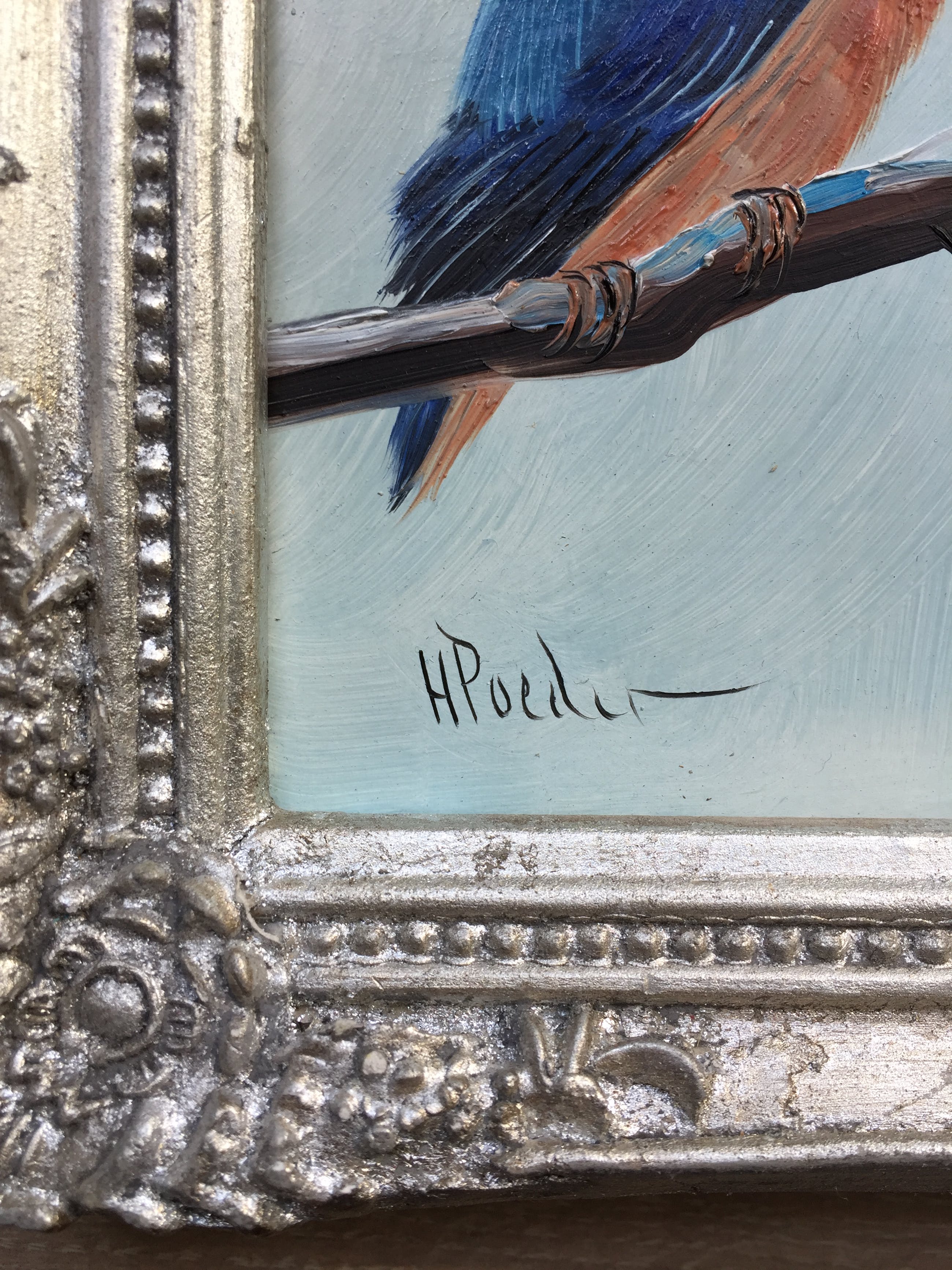 Mooi olieverf van een Ijsvogel op paneel door h poeder ede 1964 verder spreekt het schilderij voor zich en gesigneerd h poeder