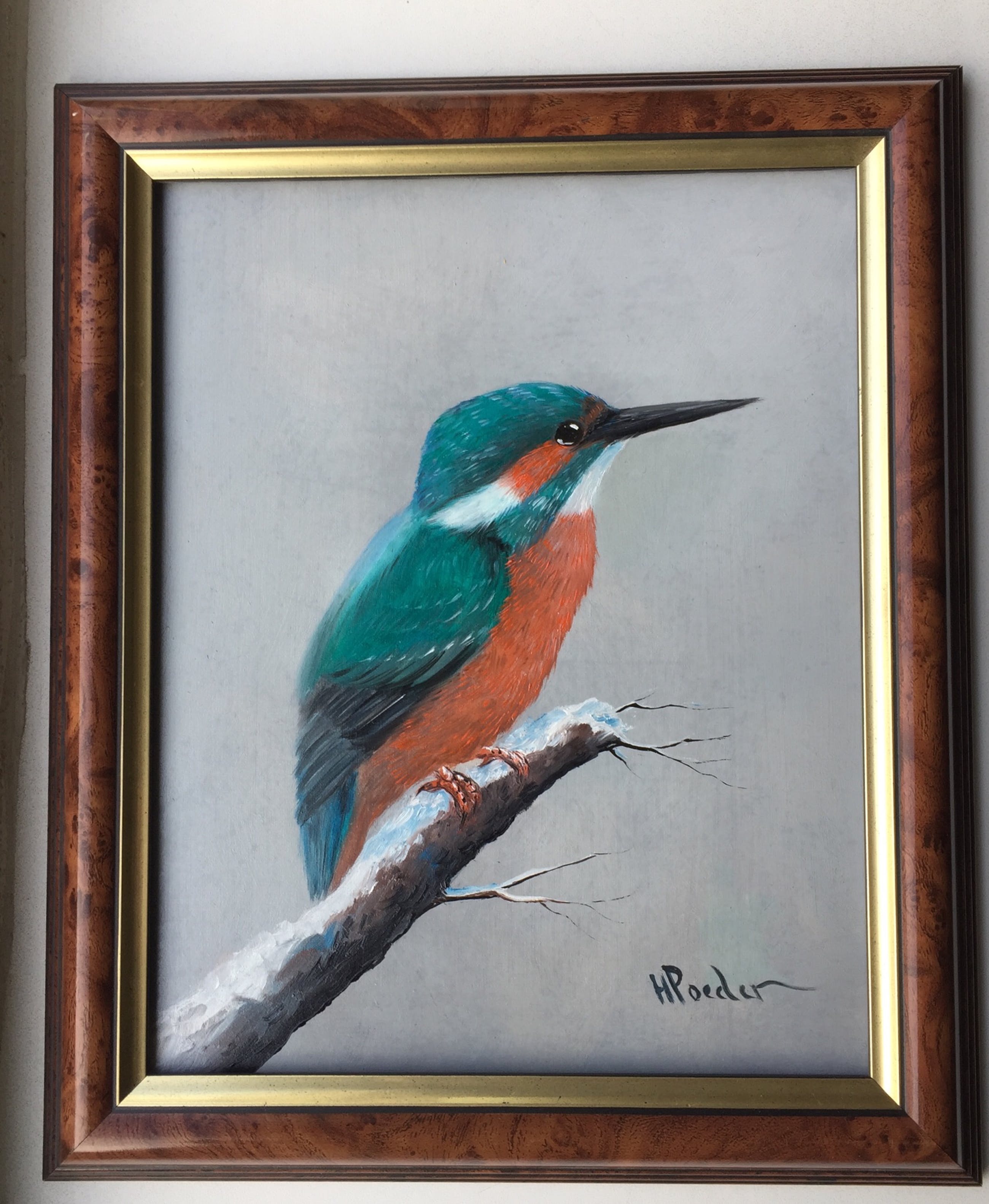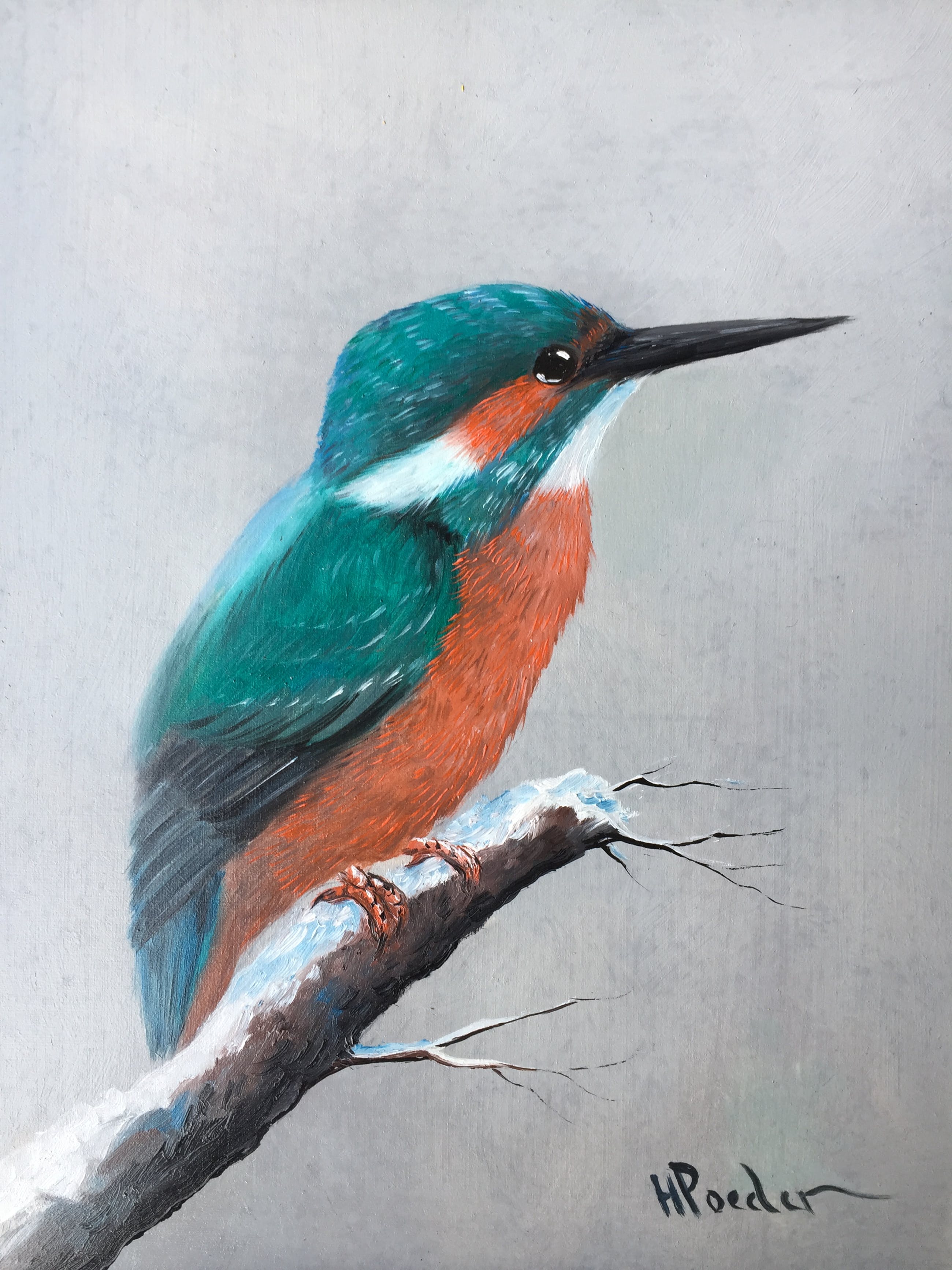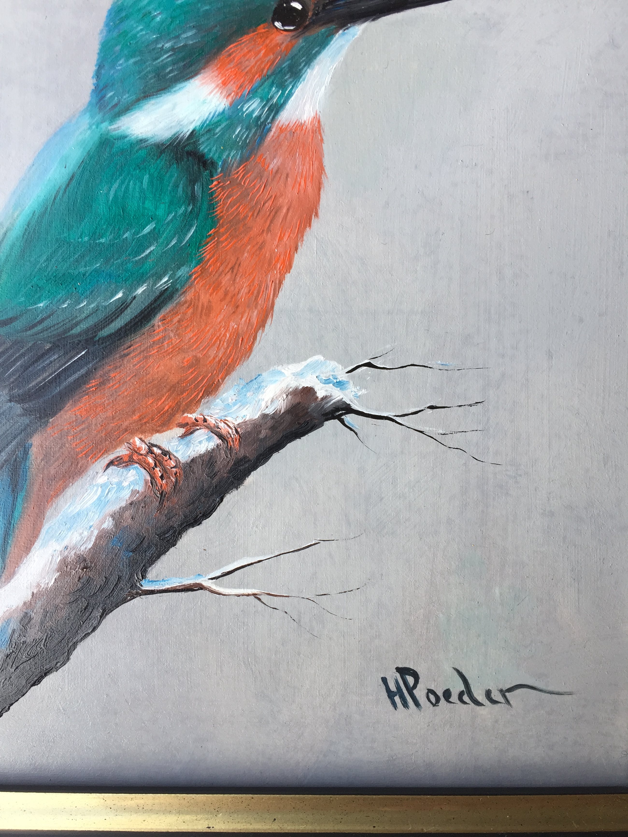 Mooi olieverf v h poeder een ysvogel op tak geschreven poeder ro