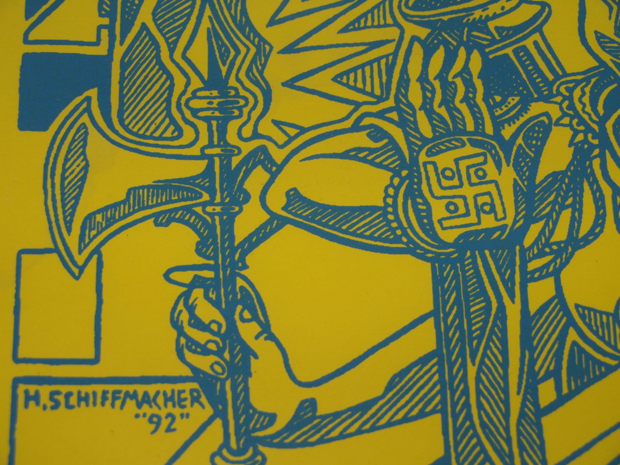 Een zeefdruk uit 1992 van de Nederlandse tattoo-kunstenaar Henk Schiffmacher.