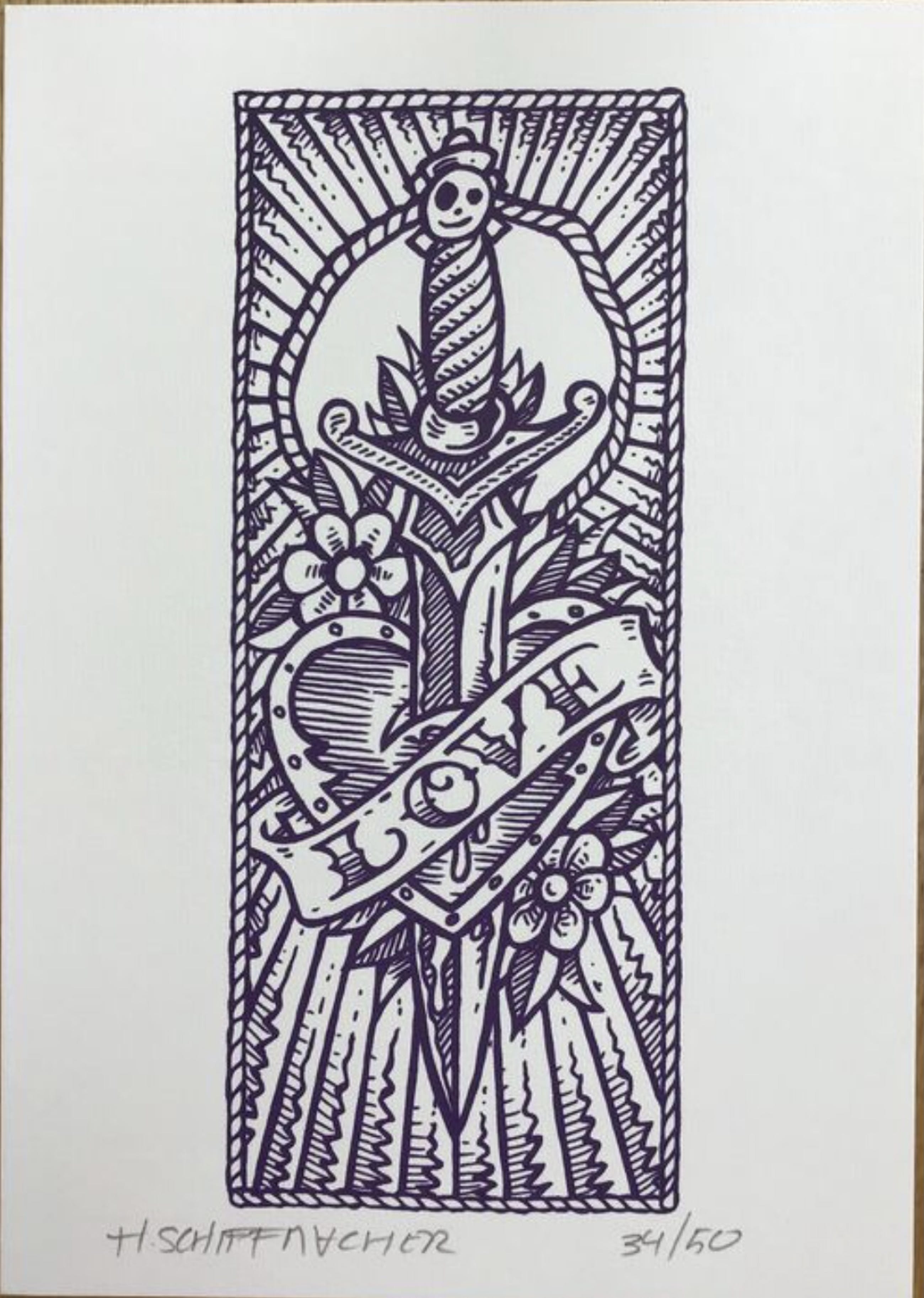Zeefdruk Henk Schiffmacher Titel Love Oplage slechts 50, waarvan deze nummer 34 Afmetingen 30x21cm Handgesigneerd en genummerd Conditie nieuw