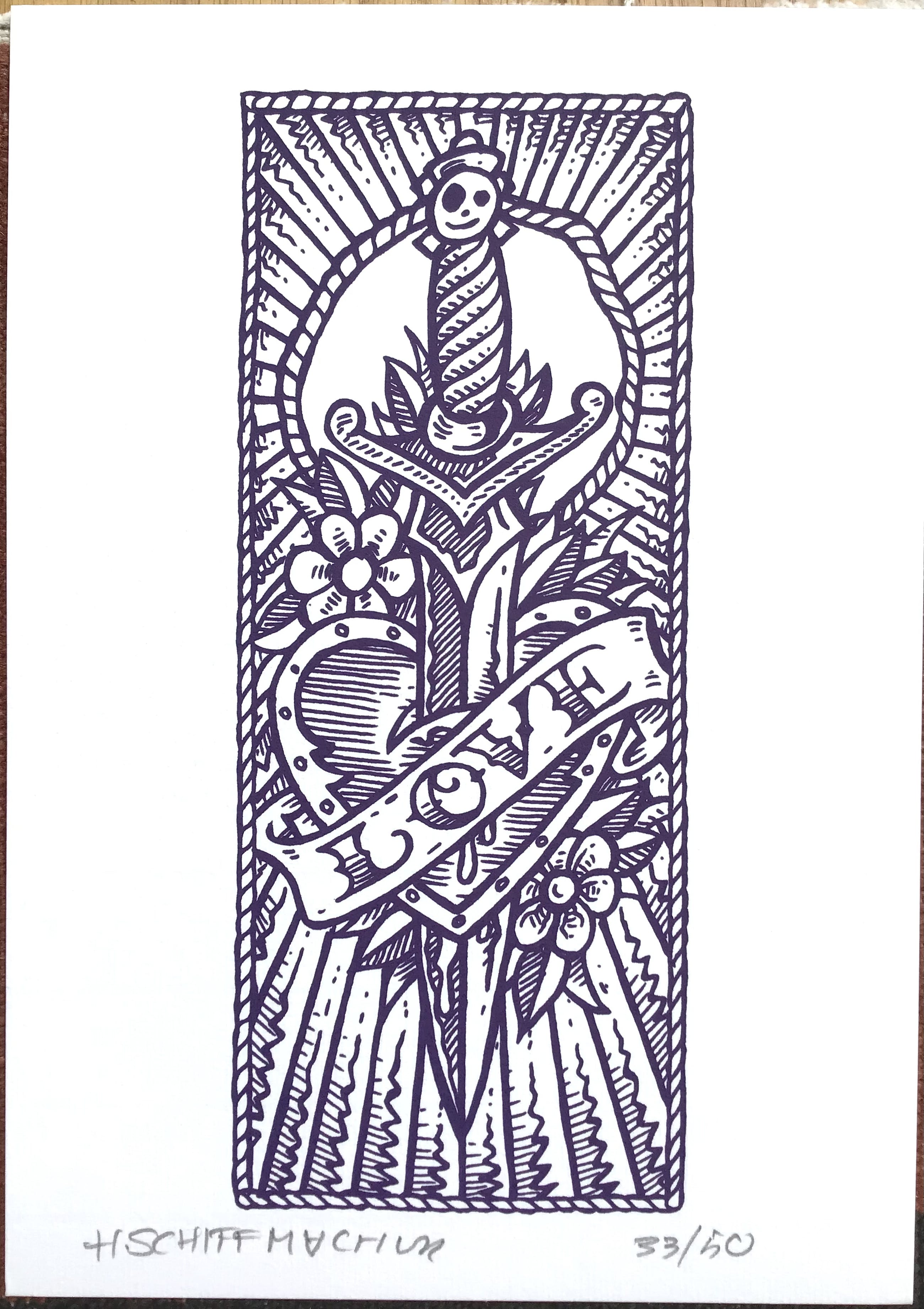Zeefdruk Henk Schiffmacher Titel Love tattoo Oplage slechts 50 waarvan deze nummer 33 Hand gesigneerd en genummerd Afmetingen 30x21cm Conditie nieuw Wordt aangetekend verzonden