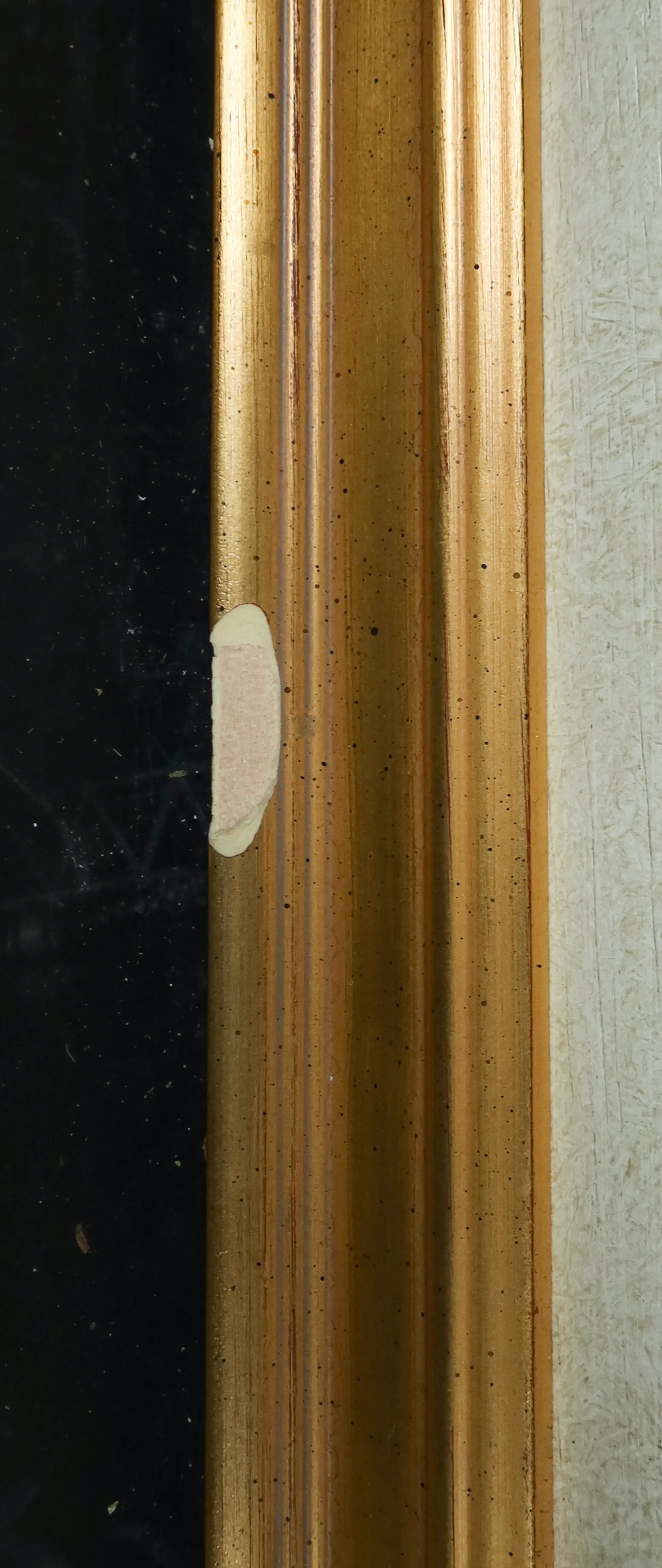 | De lijst heeft wat schade. Daarnaast zit er wat golving in het doek en is hier en daar wat zeer minimale craquelé te zien. | |
