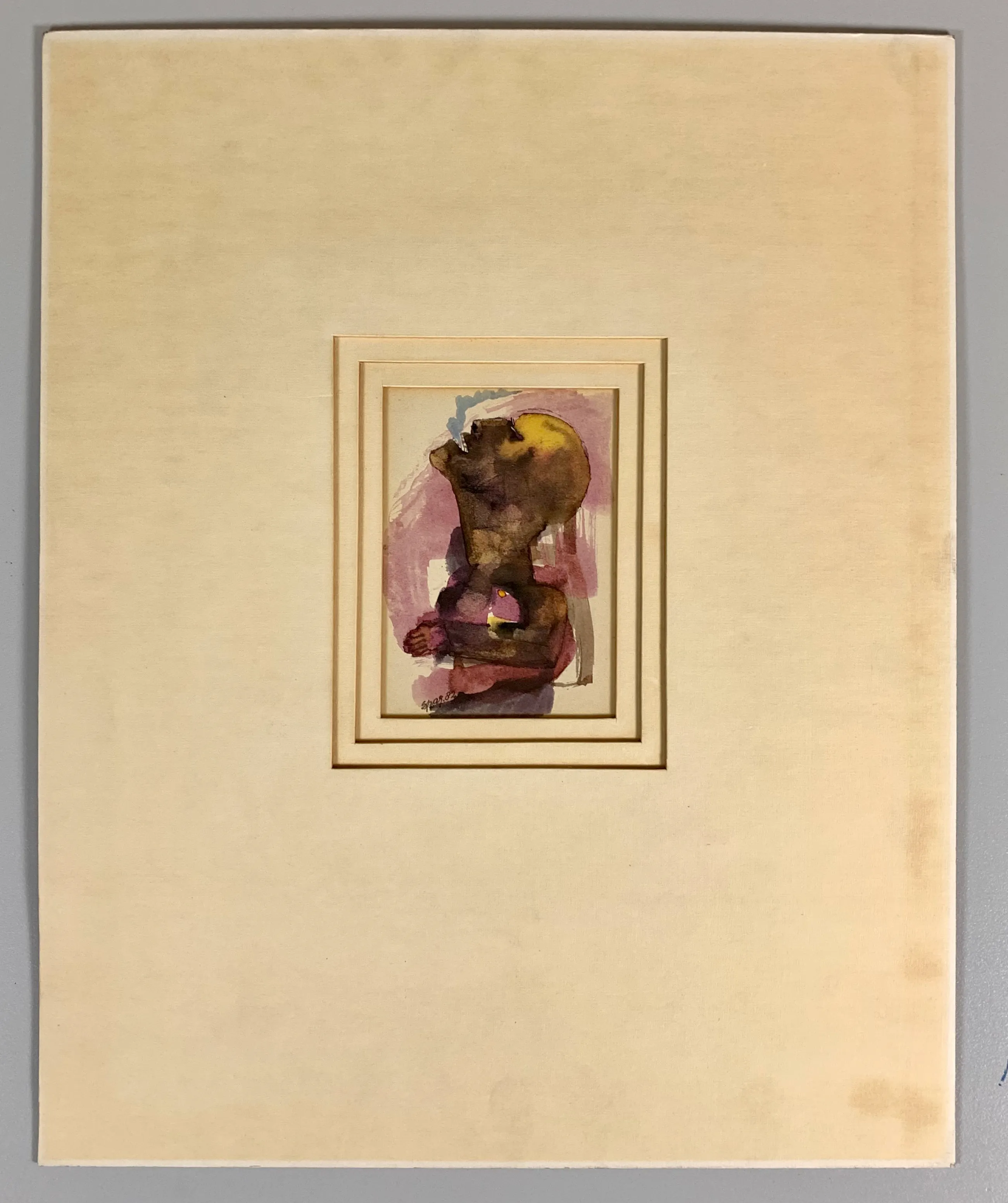 Conditie: Gouache zeer goed, passe partout heeft vlekken, zie foto. Afmeting: Passe-partout 47 x 38 cm. Afbeelding: 19 x 22 cm. Wordt zorgvuldig verpakt en verzekerd verzonden.
