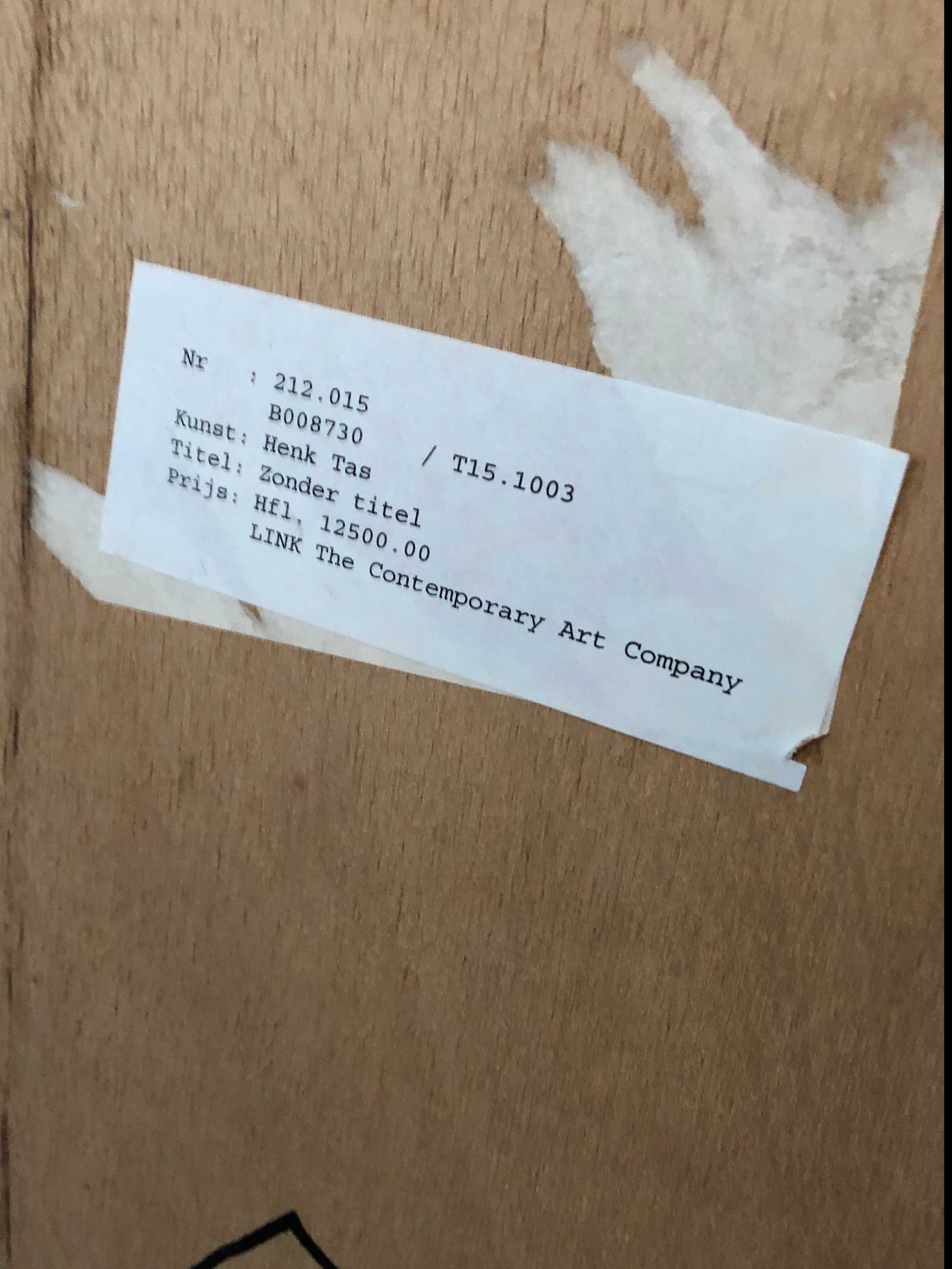 Prachtig werk van Henk Tas met een uiterst bijzondere door de kunstenaar zelf gemaakt lijst. Uit de collectie van de Rijksdienst Beeldende Kunst. Waarde was destijds 12500 gulden (5700 euro)