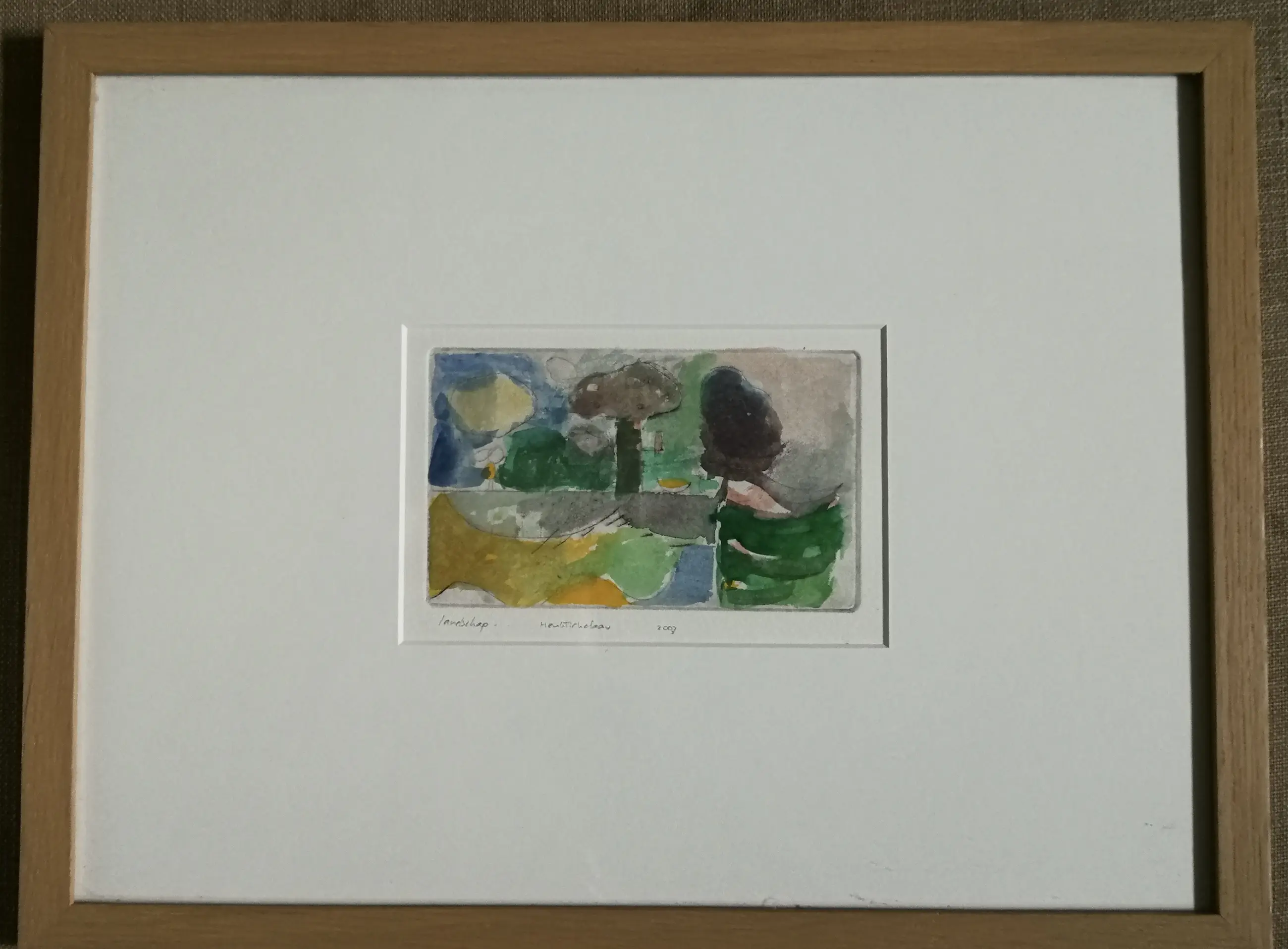 Met aquarel ingekleurde ets op papier van Henk Tichelaar, getiteld, gedateerd en gesigneerd in potlood. Ingelijst achter passe-partout en glas in houten lijst. Verzending aangetekend 11,25