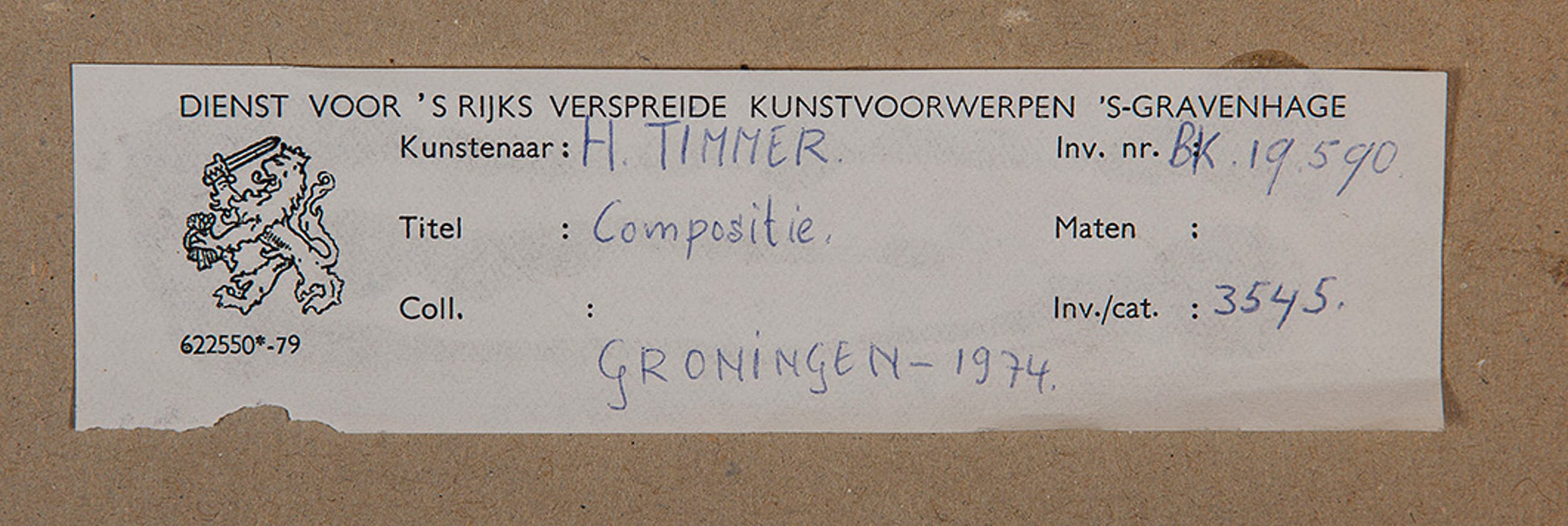 Herkomst: BKR Groningen (Het kunstwerk is afgevoerd uit de rijkscollectie in 2018)