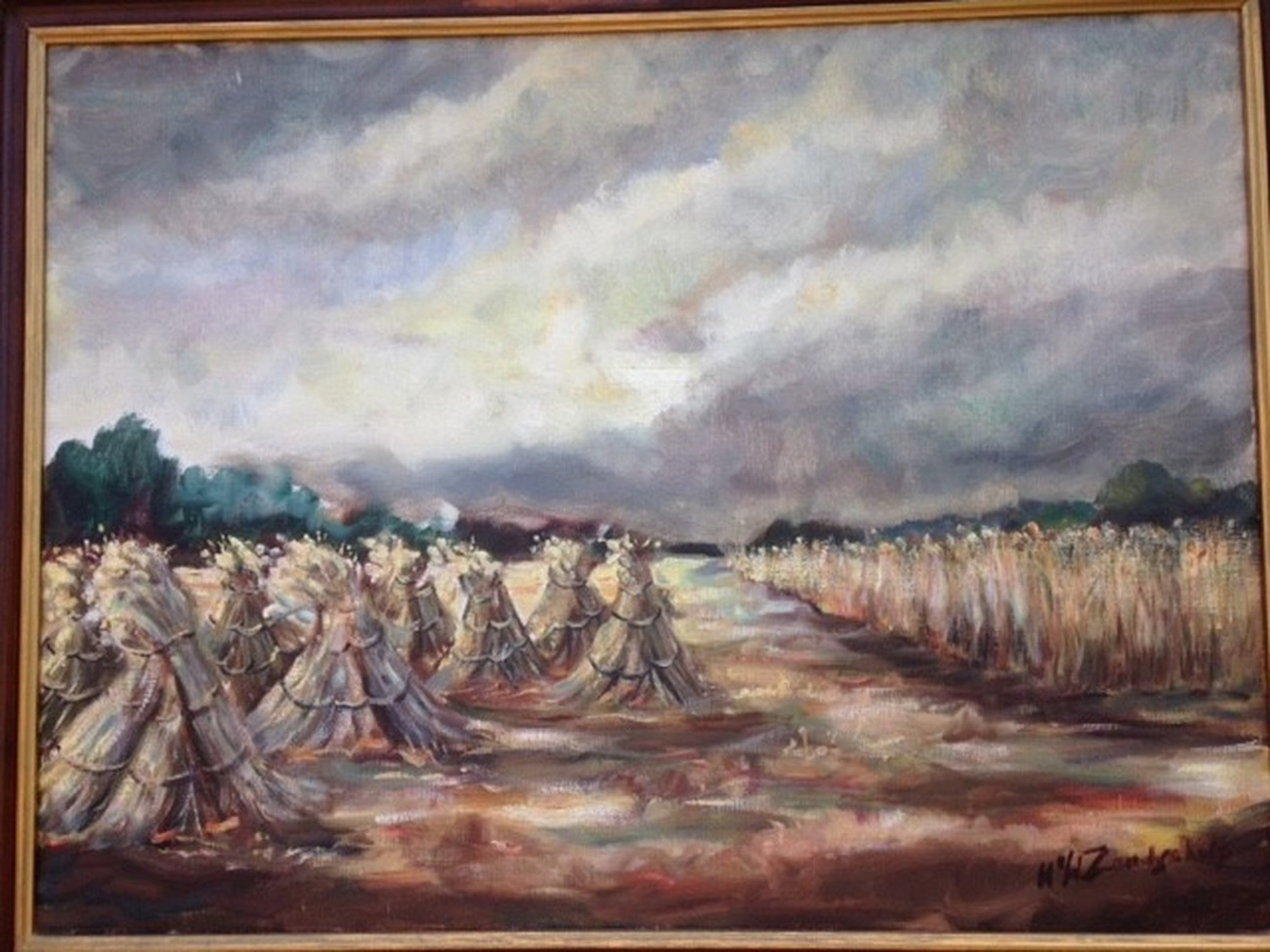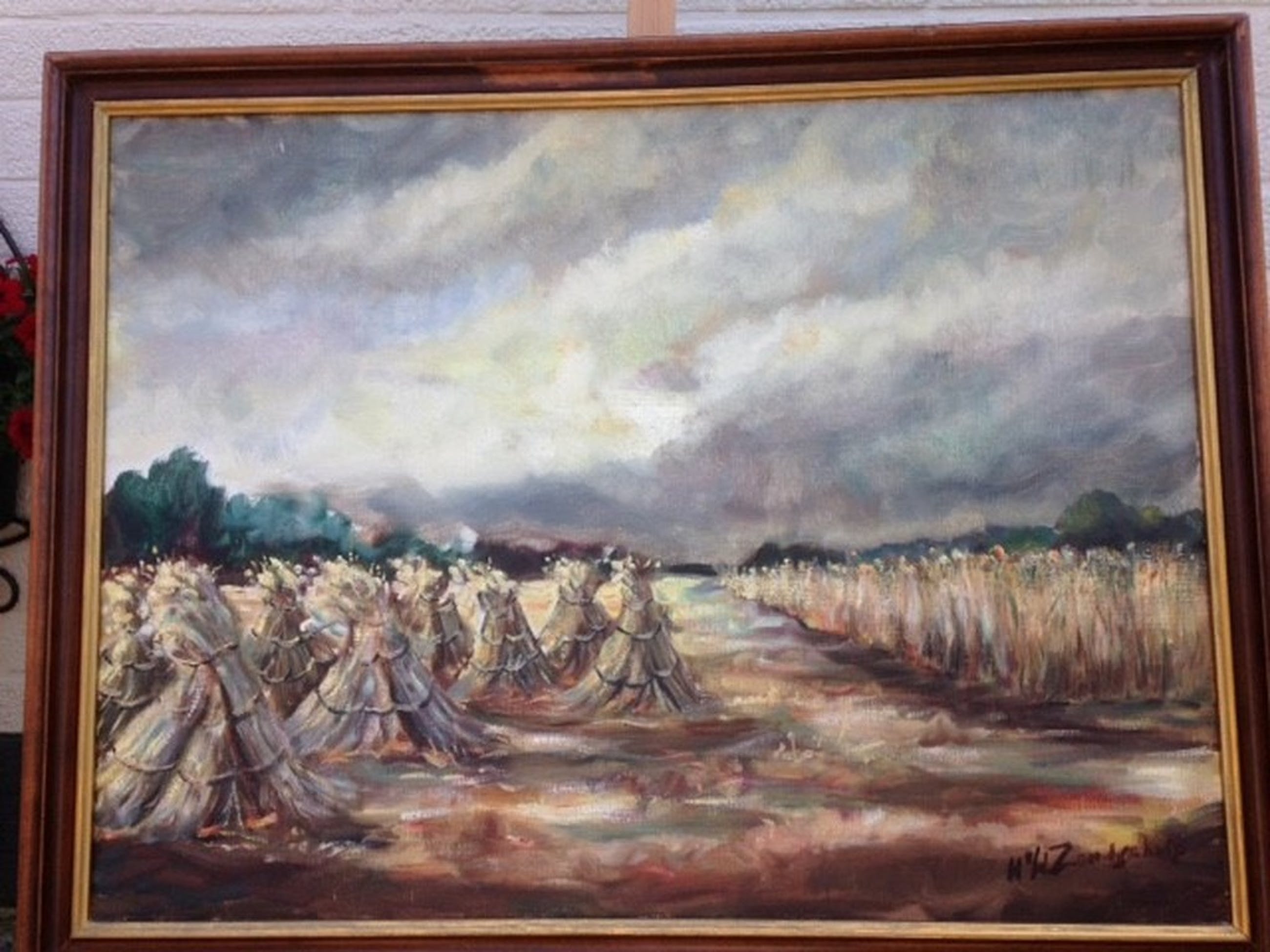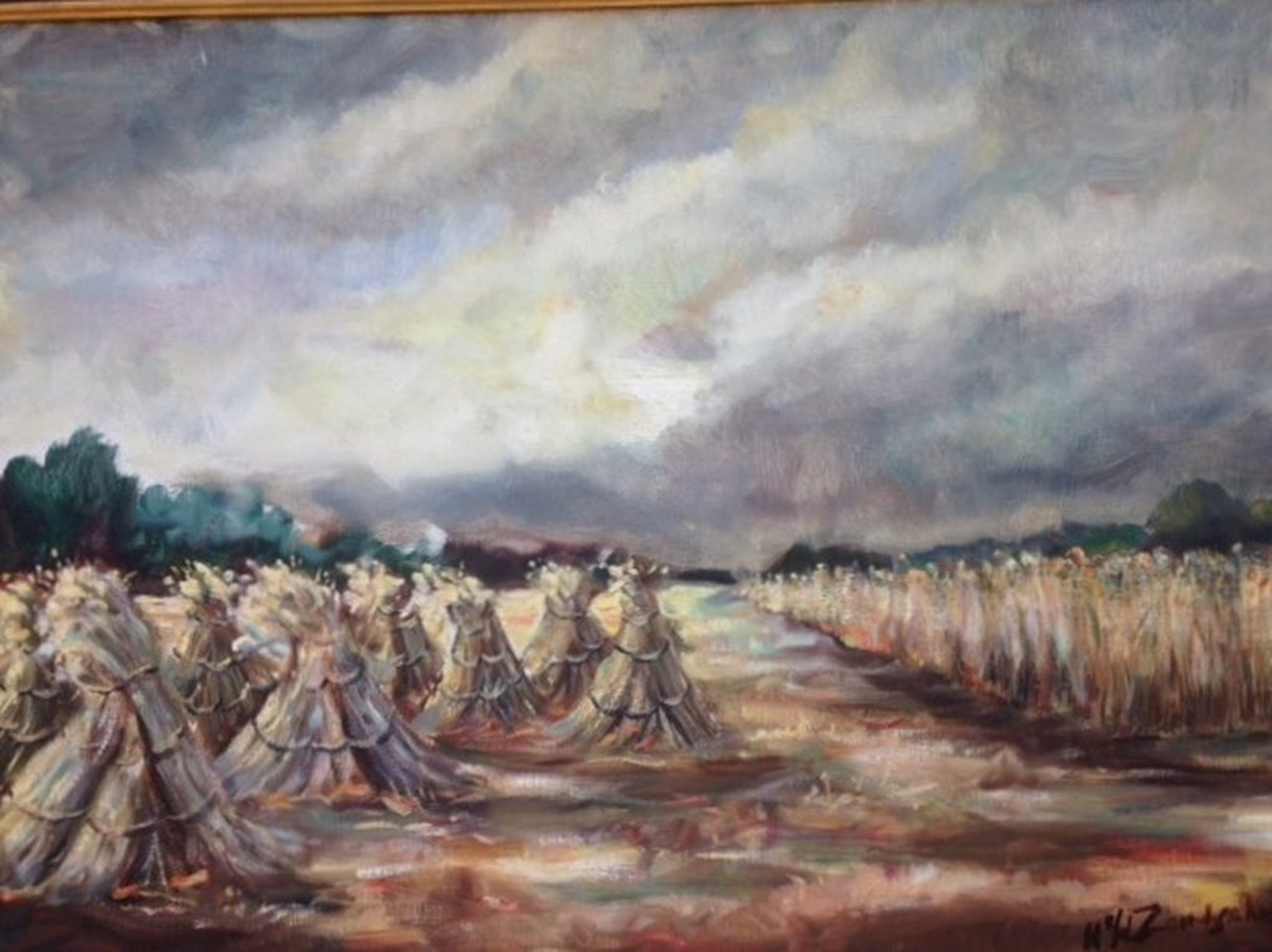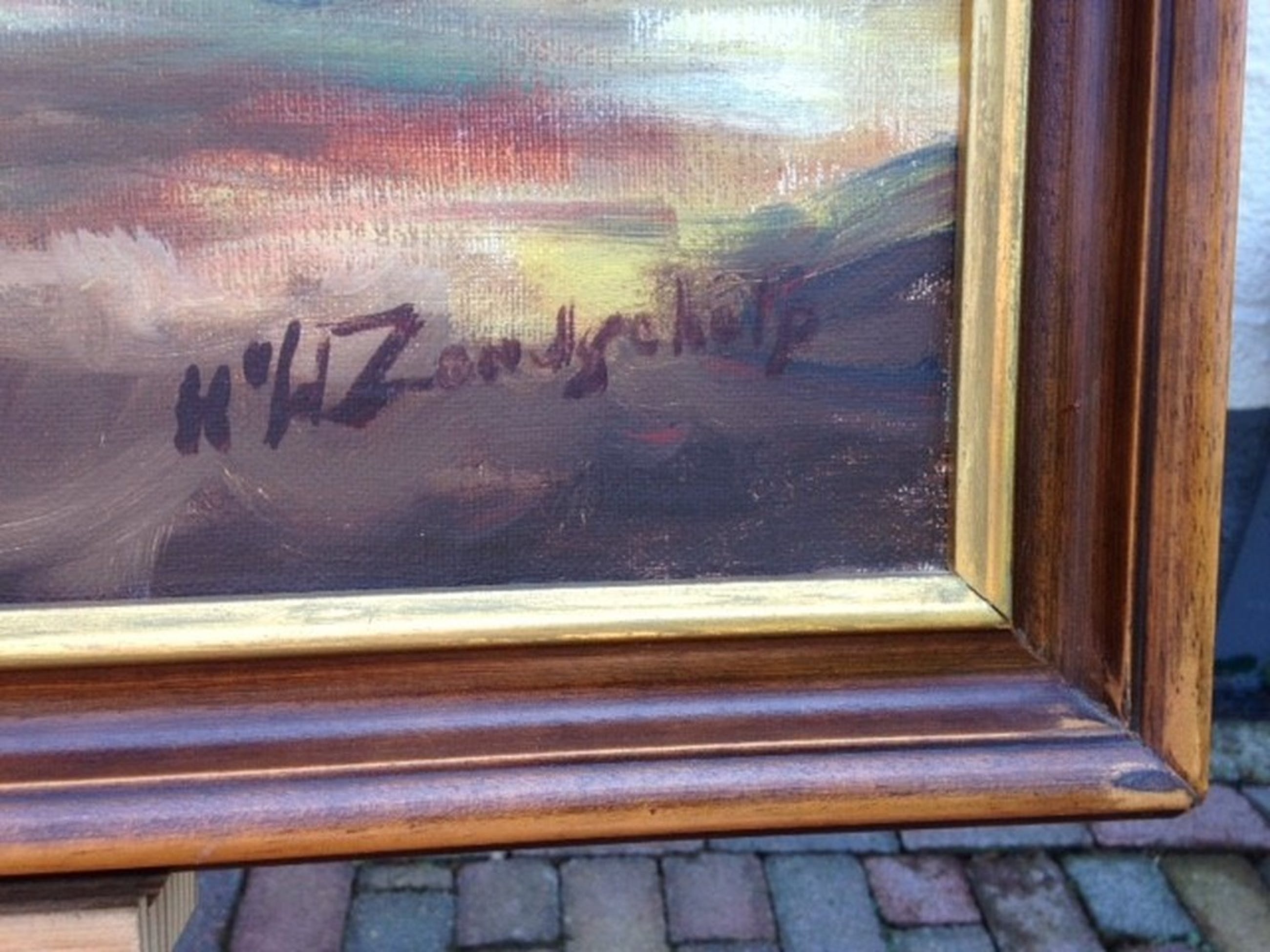 Werk van Henk van de Zandschulp (1930-1996). Techniek: Olieverf op doek. Gesigneerd aan de rechter onderzijde. Henk van de Zandschulp heeft les gehad van Jos Lussenburg en later van Jaap Hiddink. Zijn meest geliefde ondewerp was de Zuiderzee. Naast zeegezichten schilderde hij landschappen, boslandschappen, strandvoorstellingen en portretten. Hij woonde laatstelijk in Lieren en had een atelier aan huis.