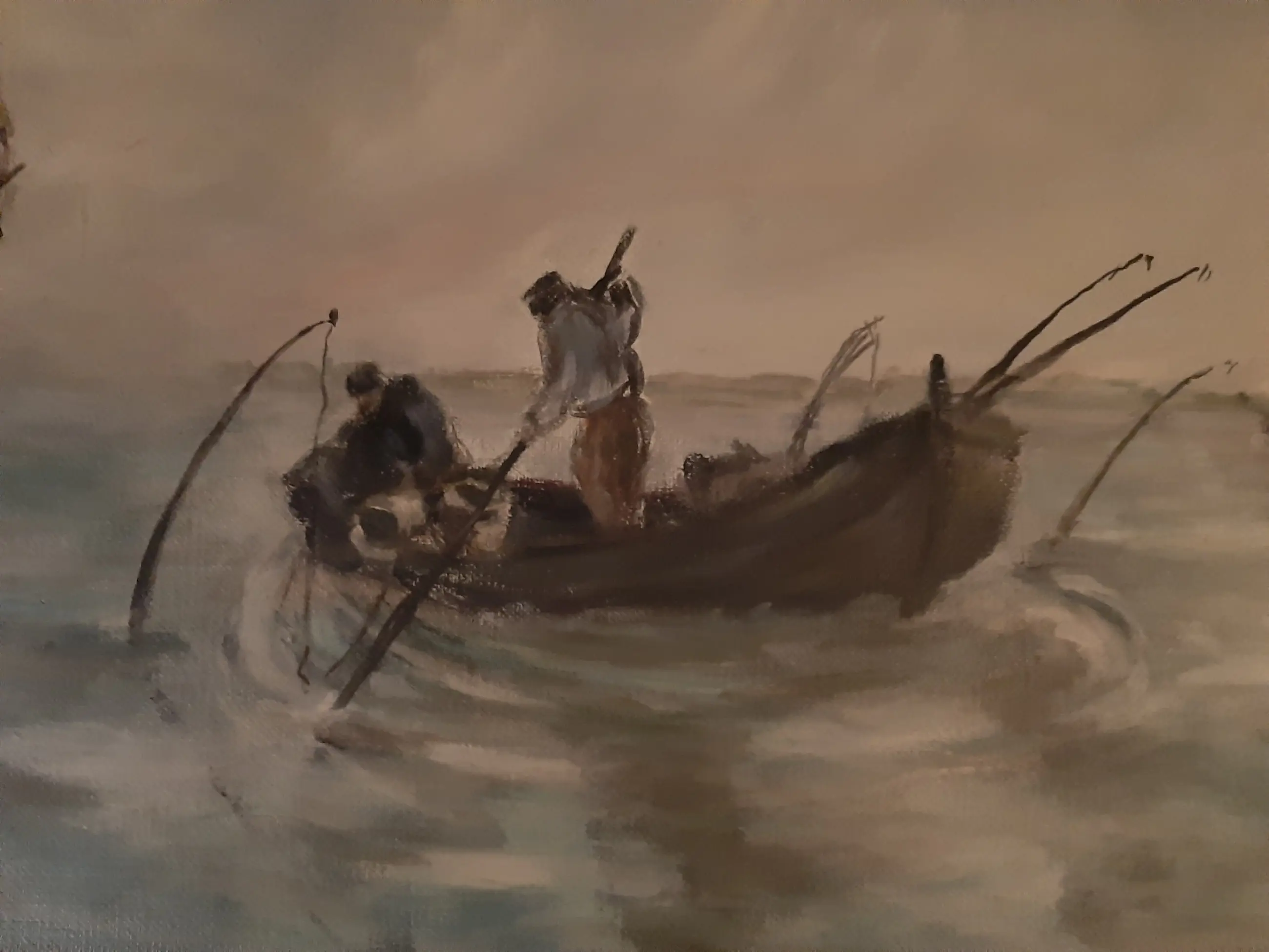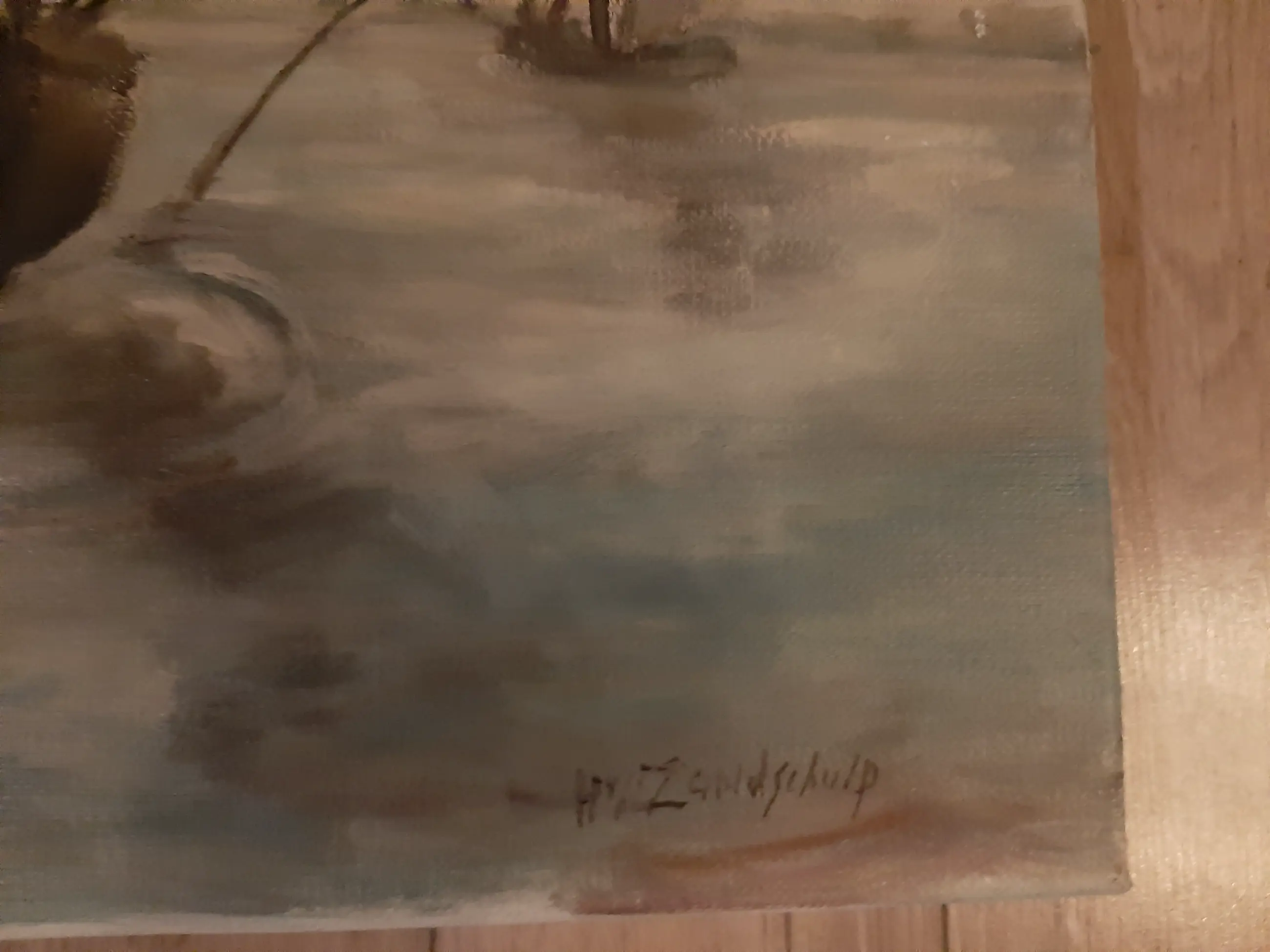 Olieverf op doek van Henk van der Zandschulp. Deze schilder heeft een voorliefde voor de oude Zuiderzee.