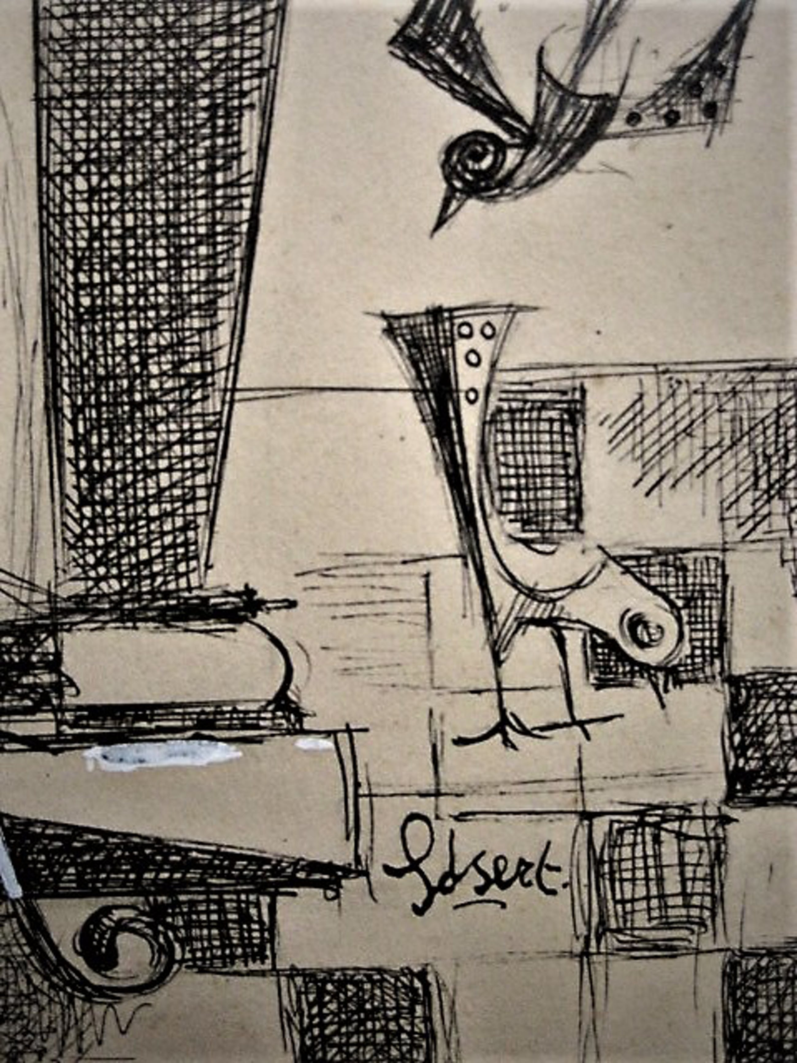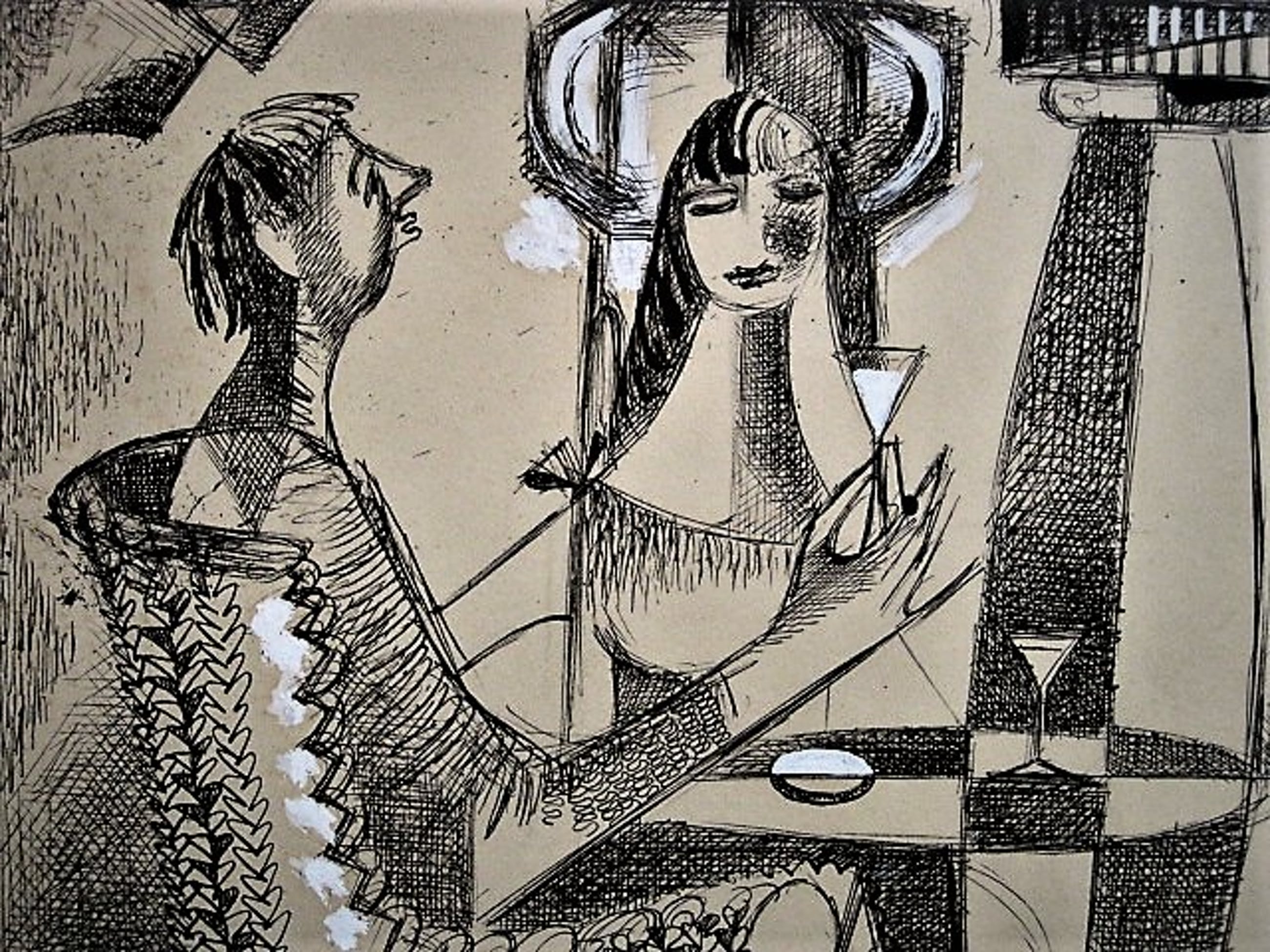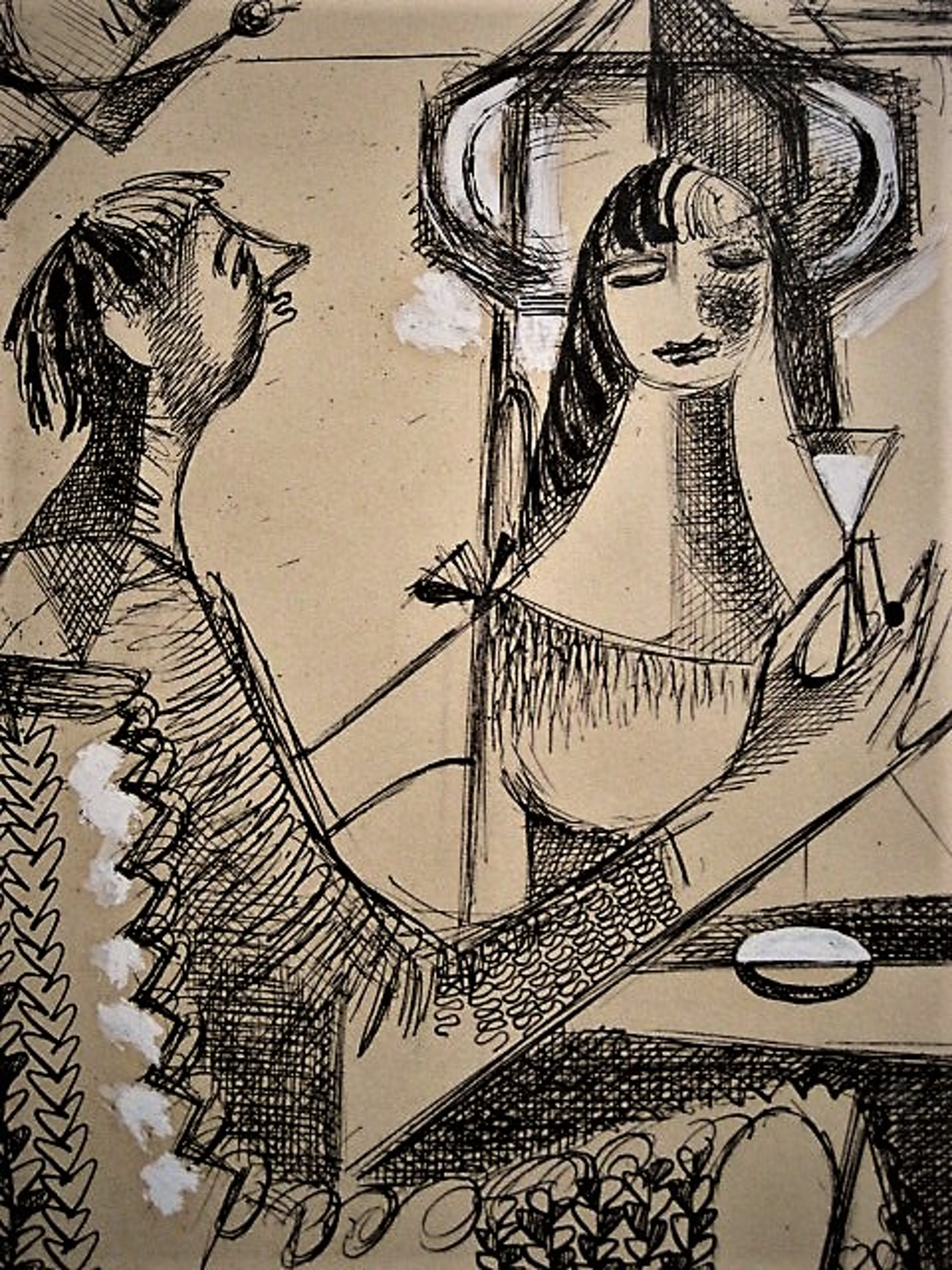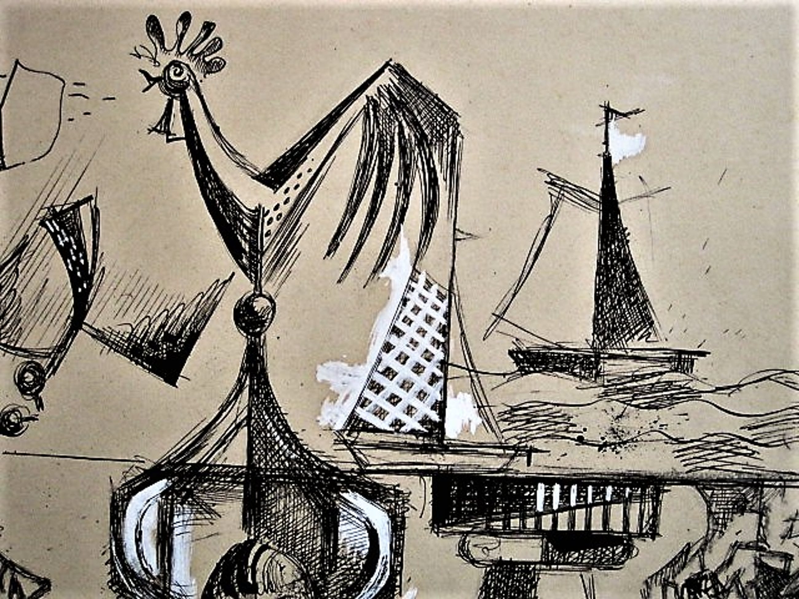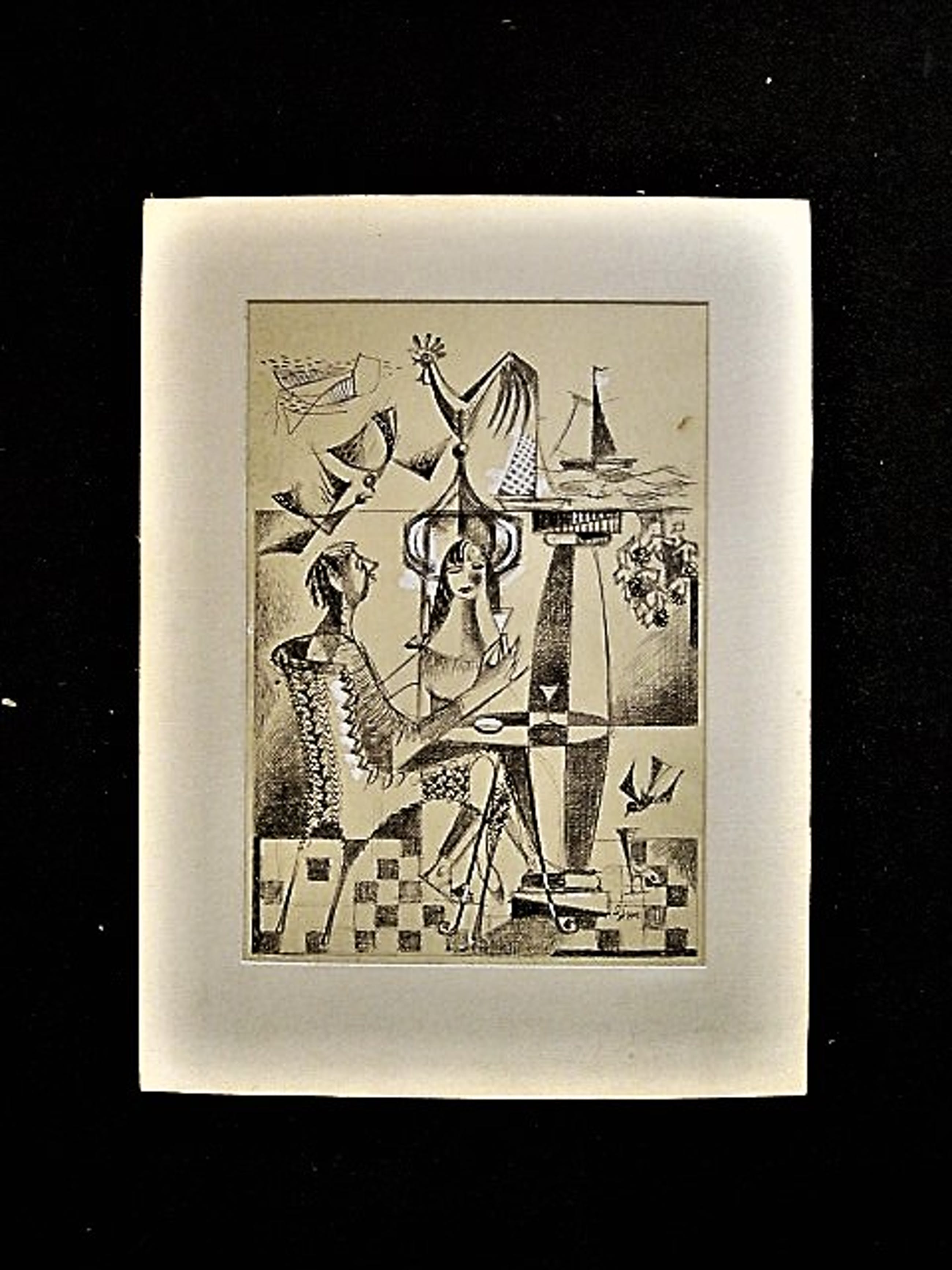 mooie scherpe inkttekening opgehoogd met wit. Papier iets gelig.