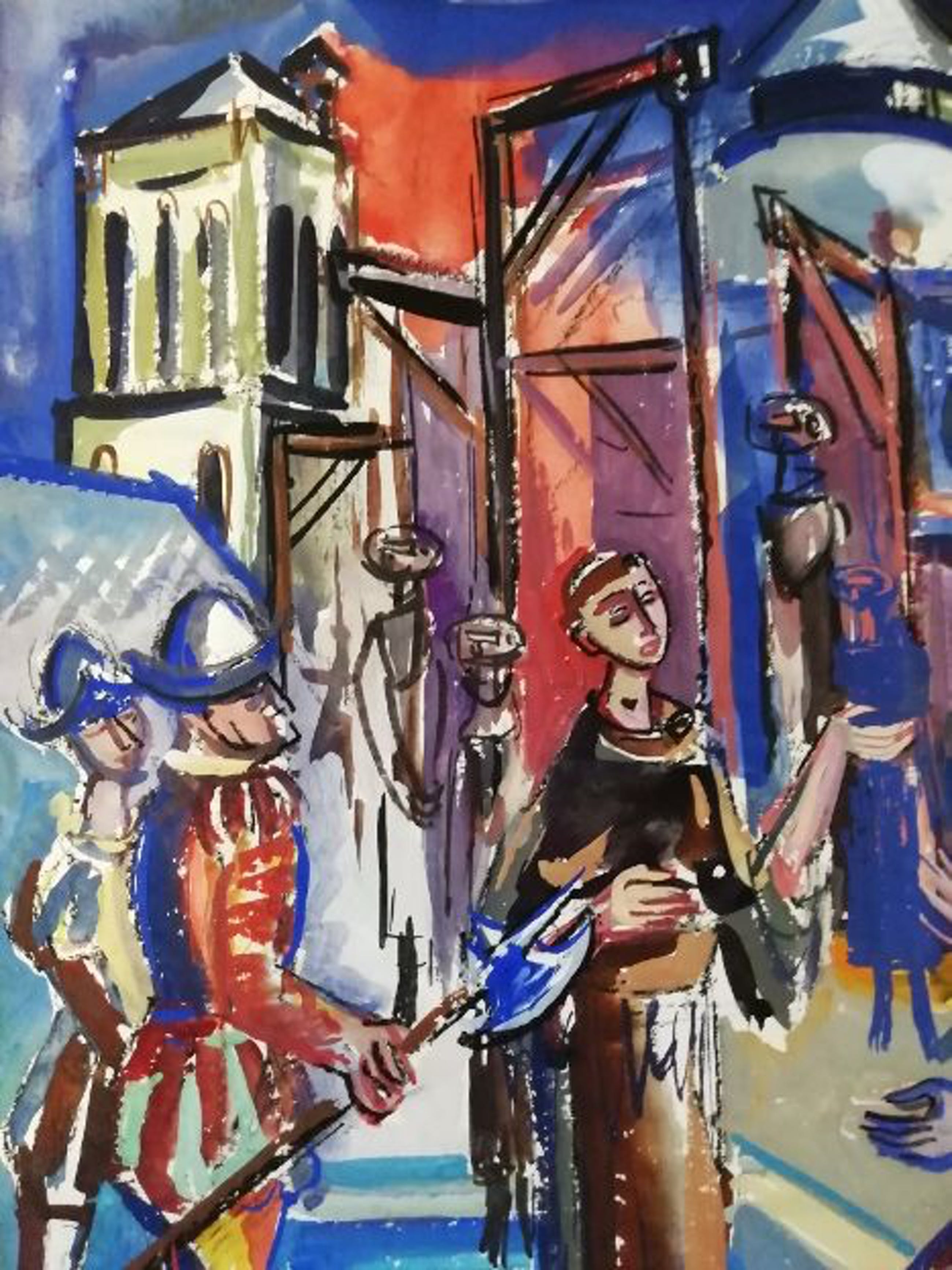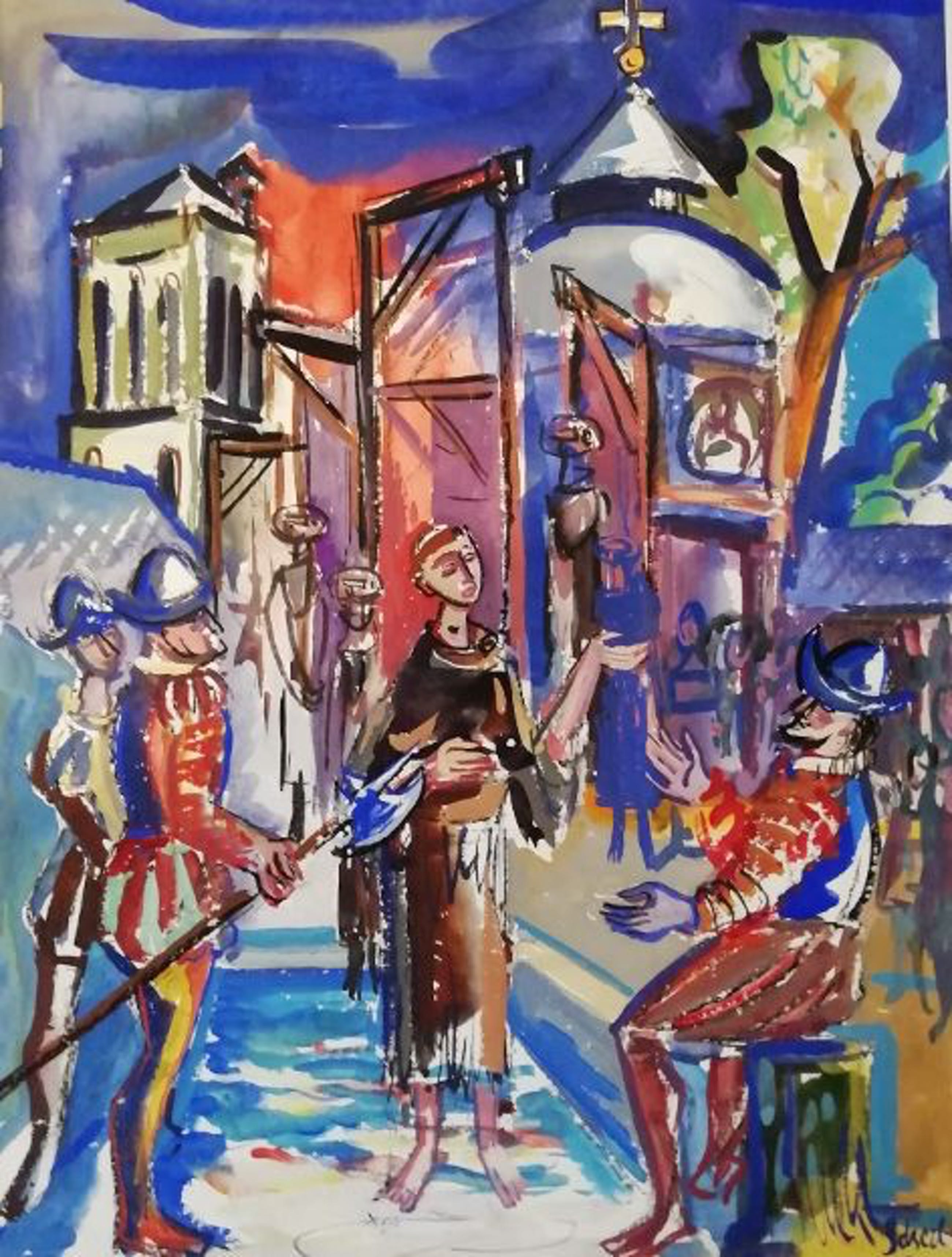 Aquarel van de 2e generatie bergense school kunstenaar Henk van den Idsert......