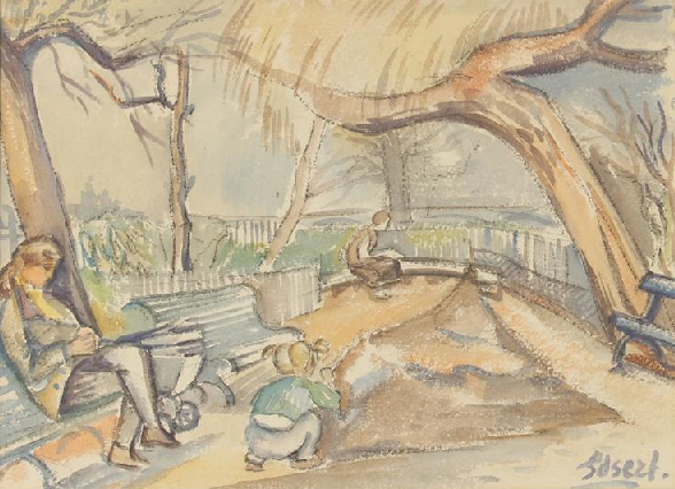 Aquarel van de 2e generatie Bergense school kunstenaars Henk van den Idsert....
