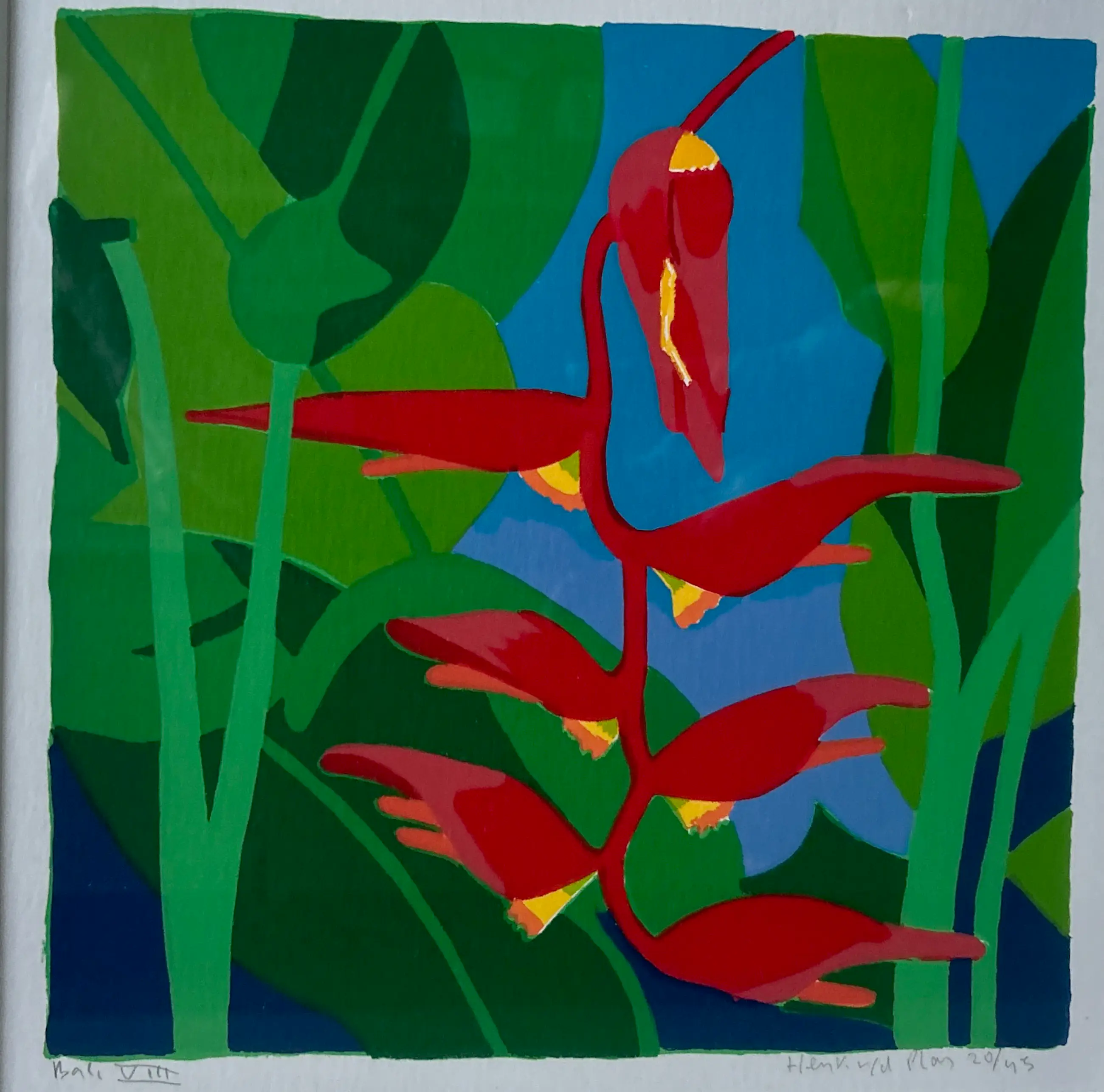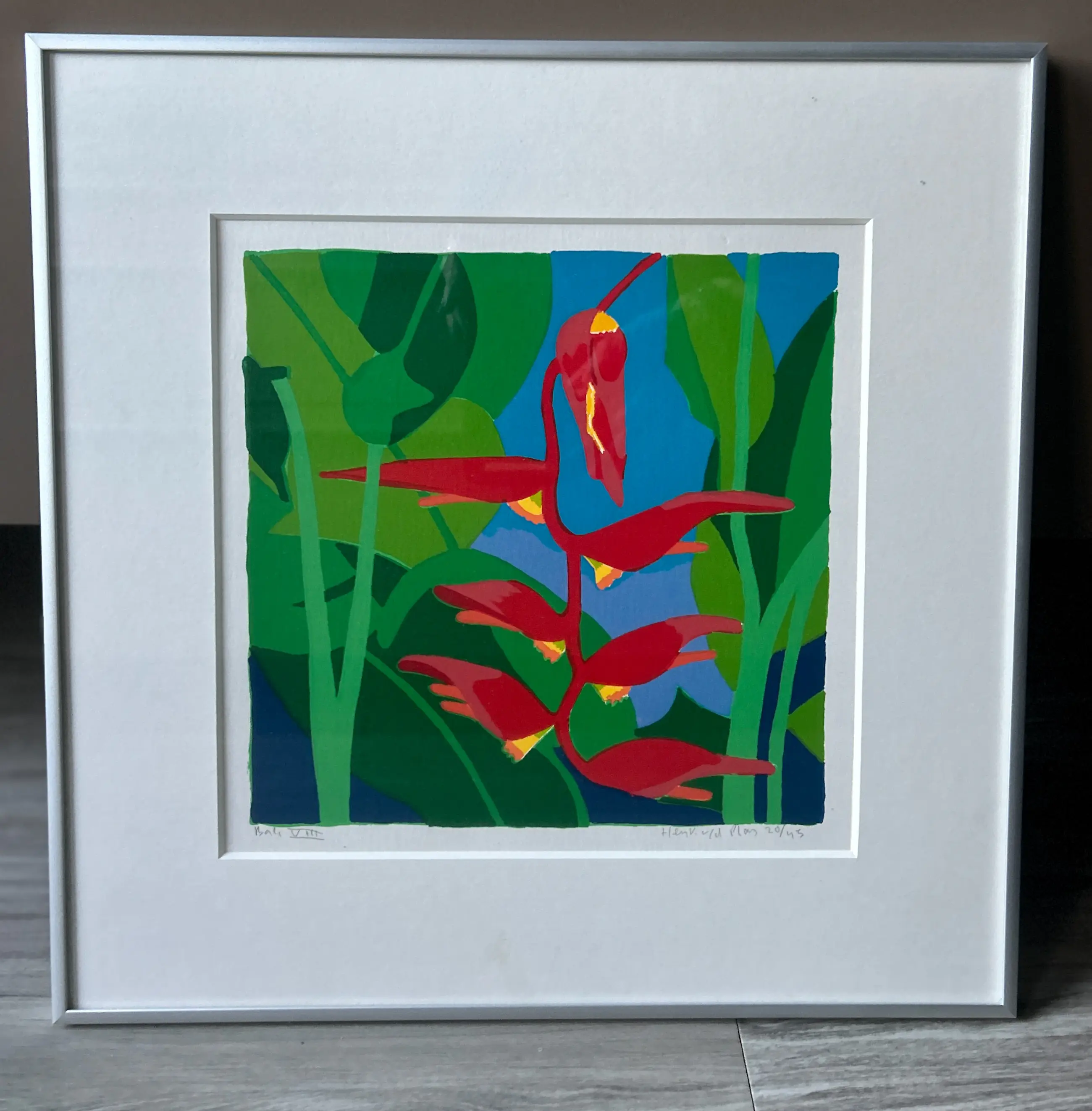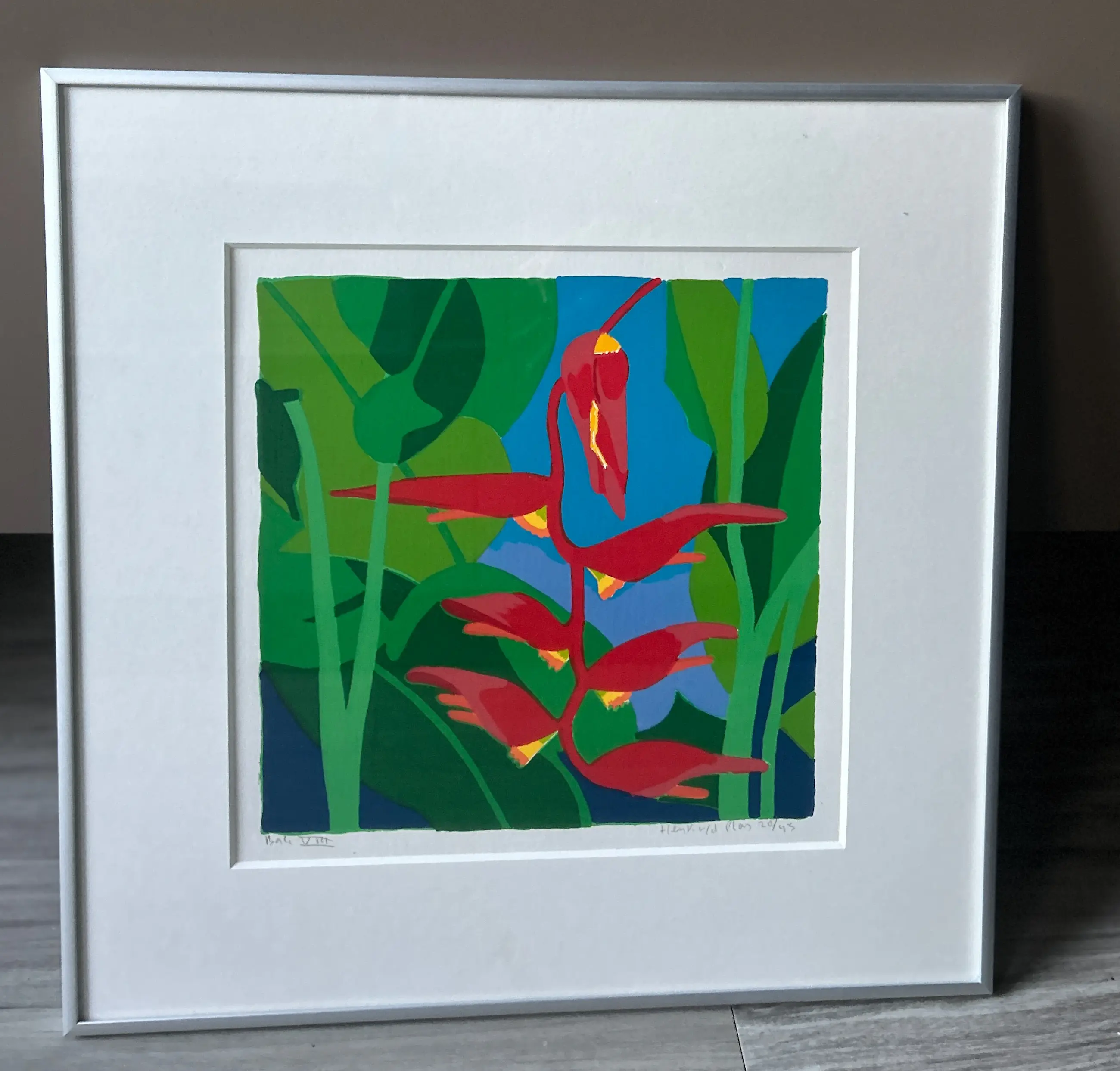 Conditie: zeer goed. Lichte weerspiegeling van omgeving in afbeelding. Ingelijst in zilverkleurige lijst, zie foto's. Oplage: 20/45. Wordt zorgvuldig verpakt en verzekerd verzonden.