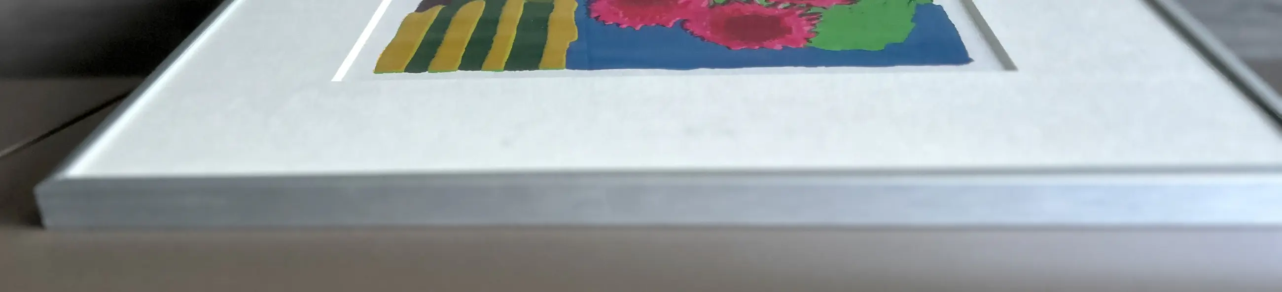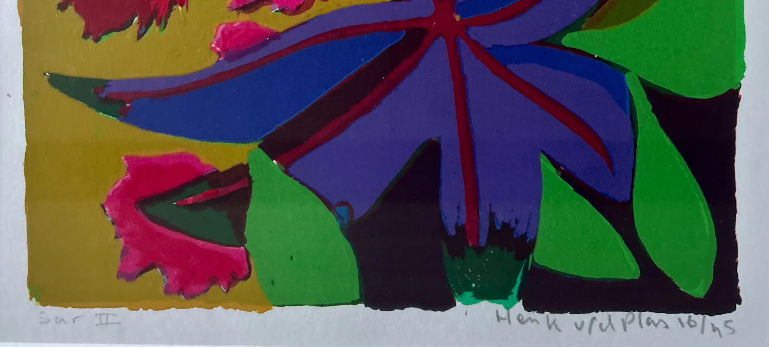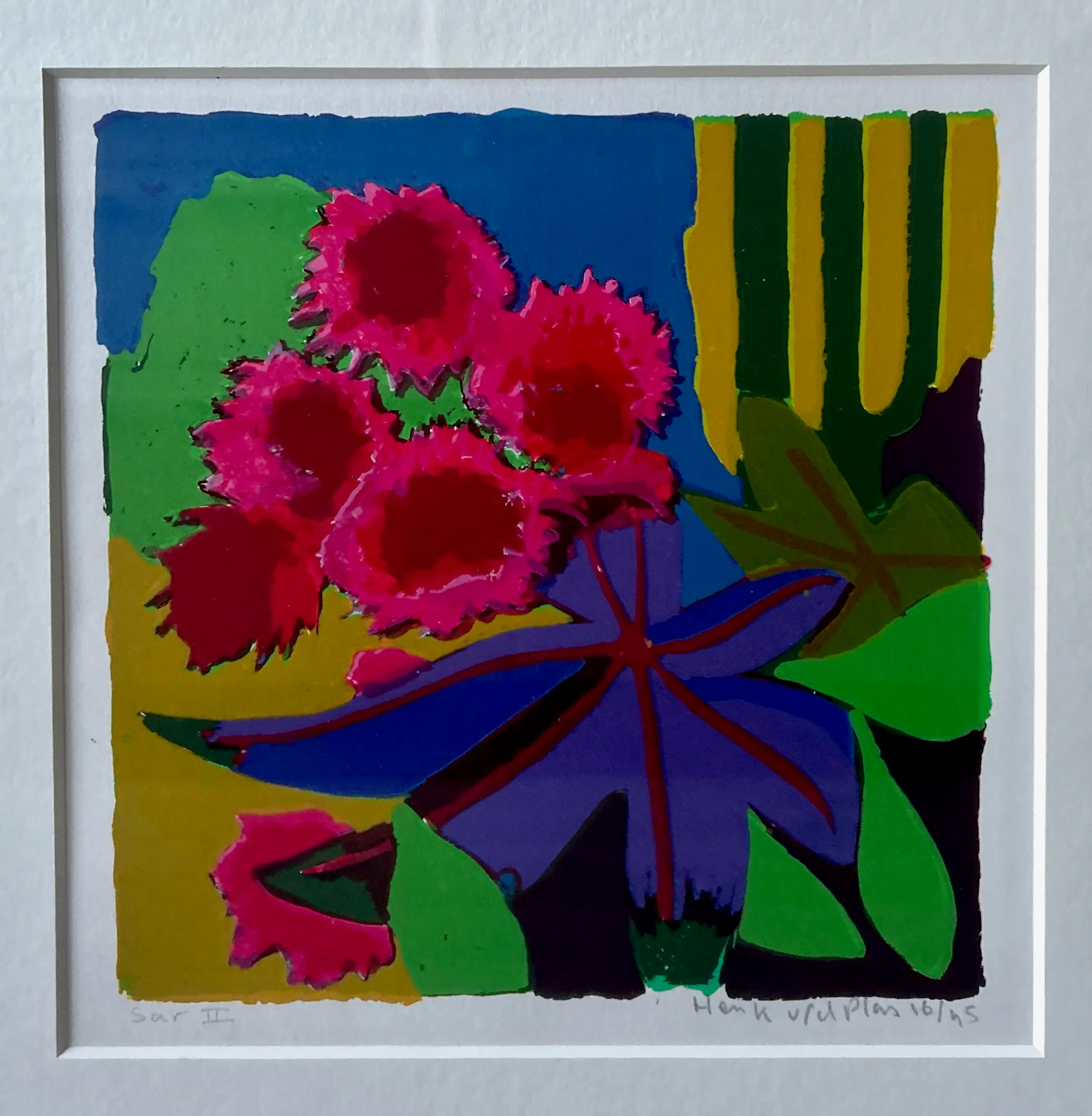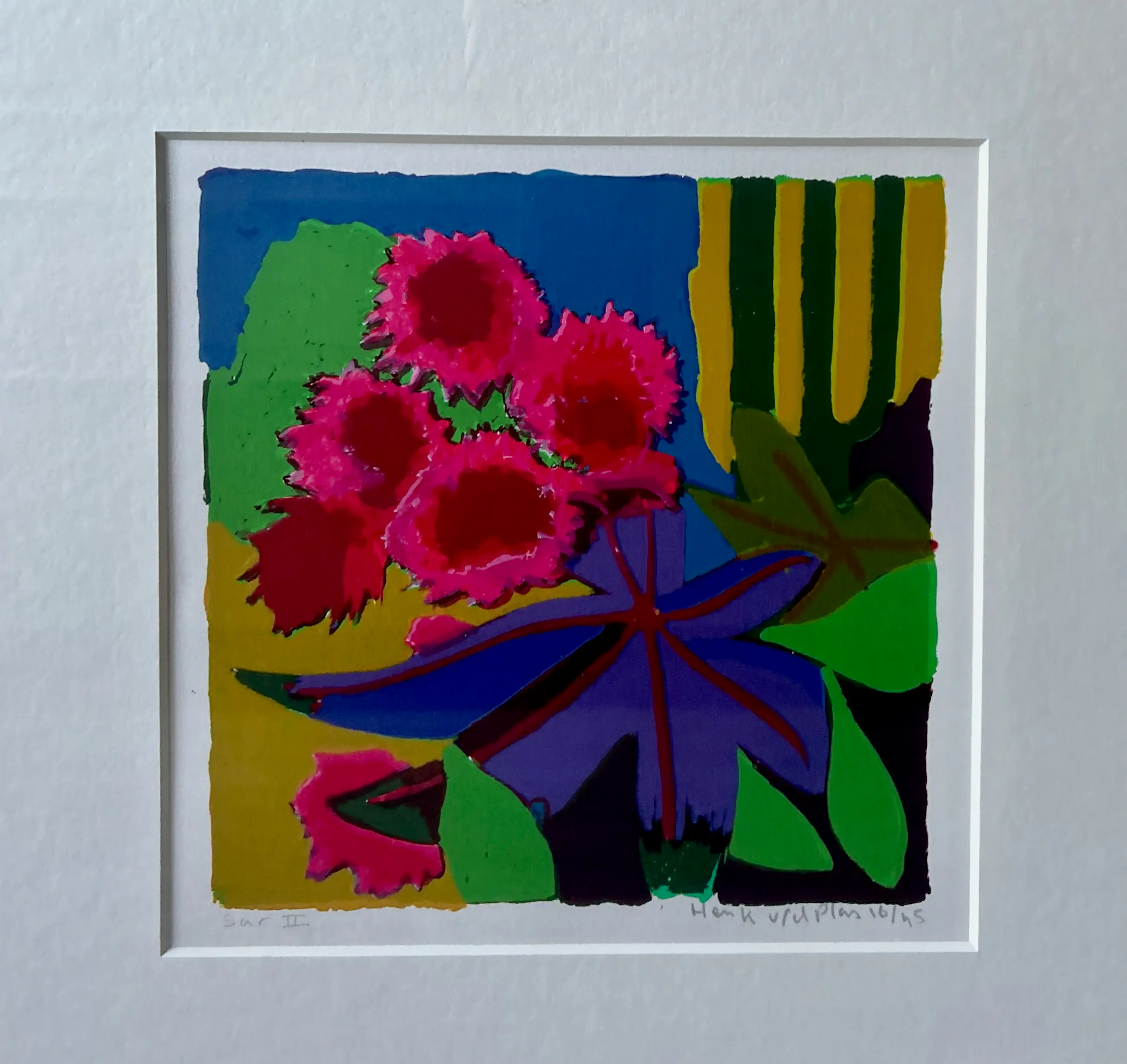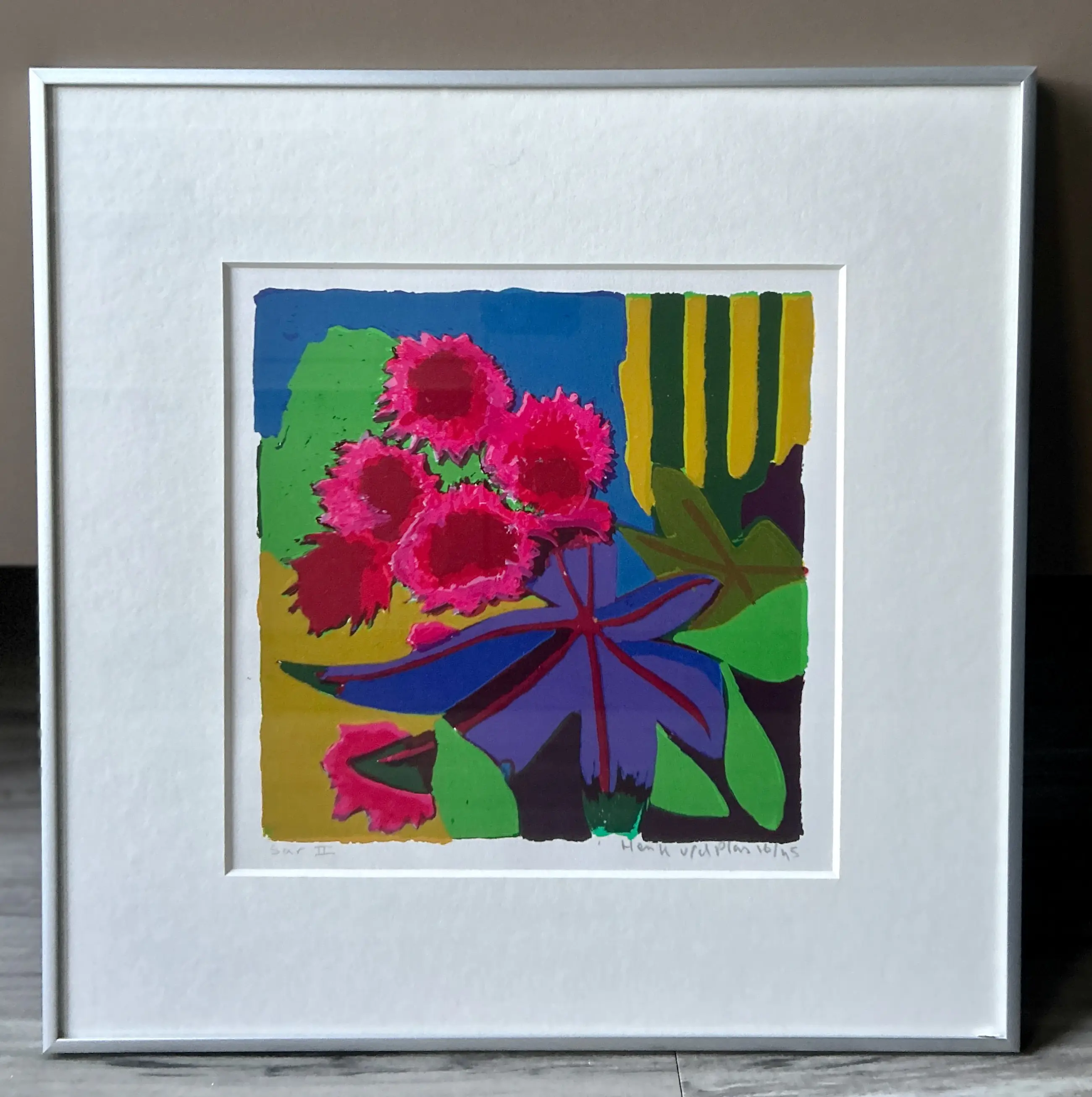 Conditie: zeer goed. Ingelijst achter glas in een zilverkleurige lijst, de lijst is in uitstekende staat. Oplage: 16/45. Wordt zorgvuldig verpakt en verzekerd verzonden.