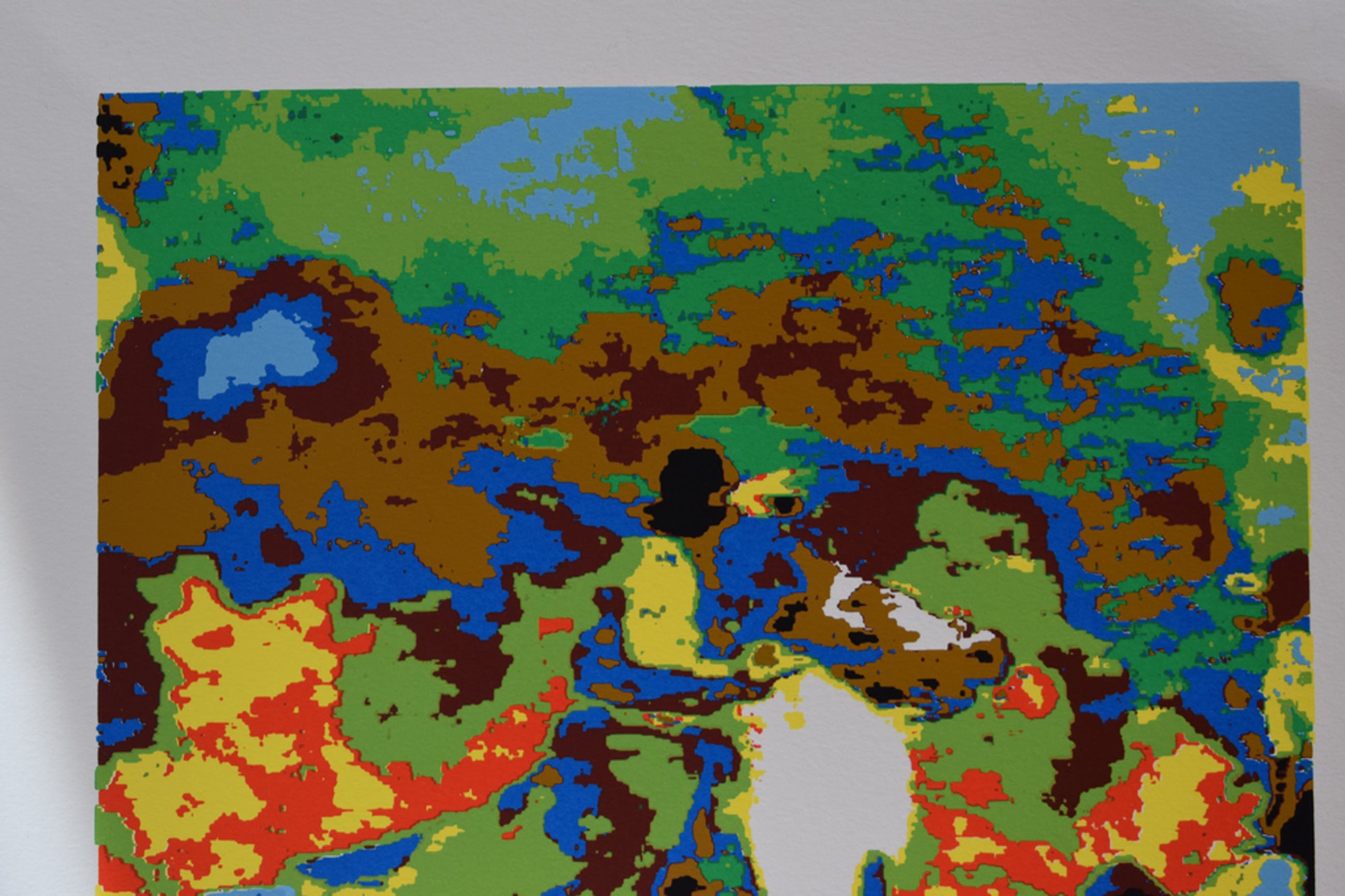 Deze kleurenzeefdruk heeft de afmeting van : 75 x 56 cm