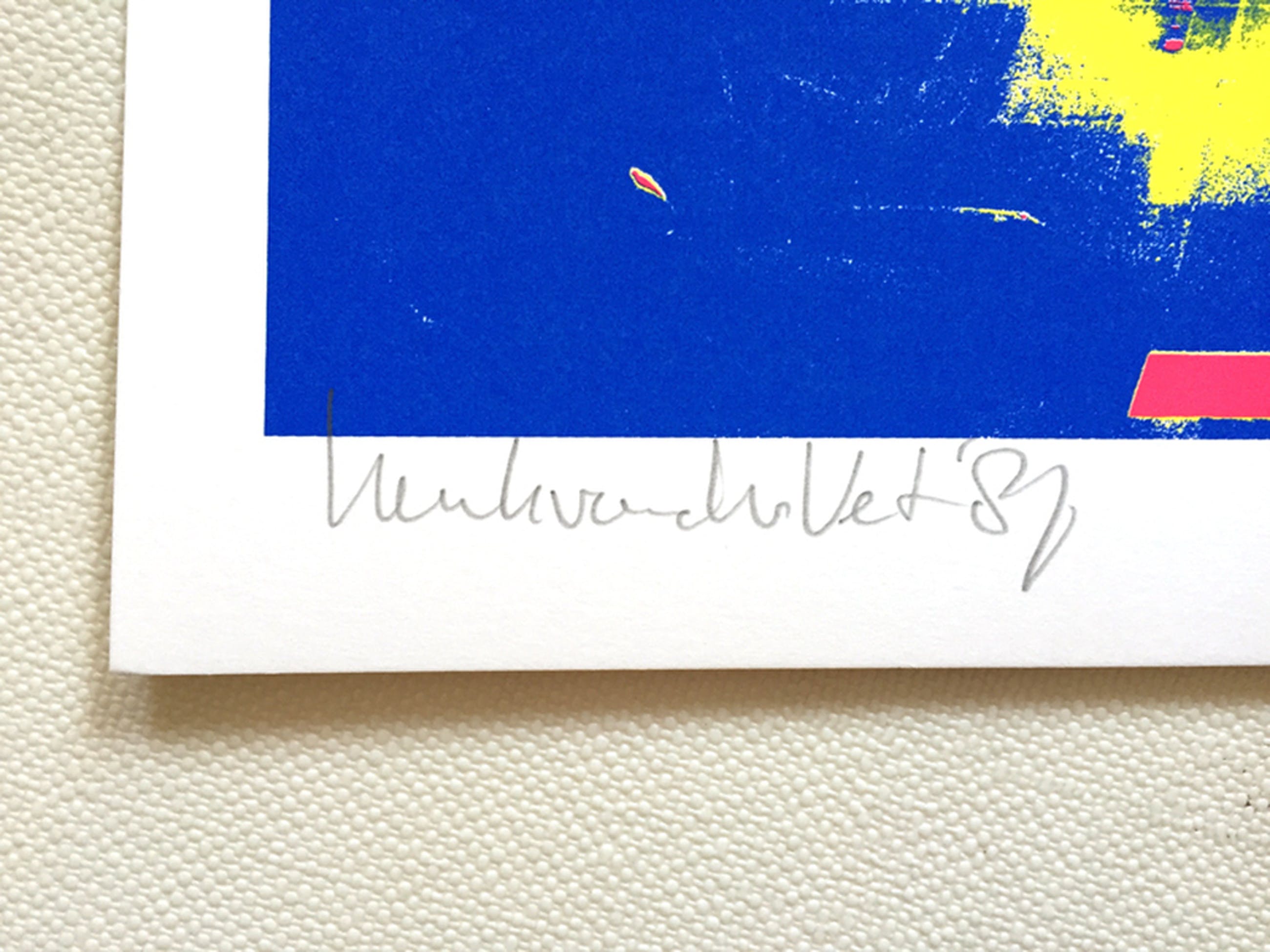 Zeefdruk is met de hand gedrukt en genummerd en gesigneerd met potlood door de kunstenaar.