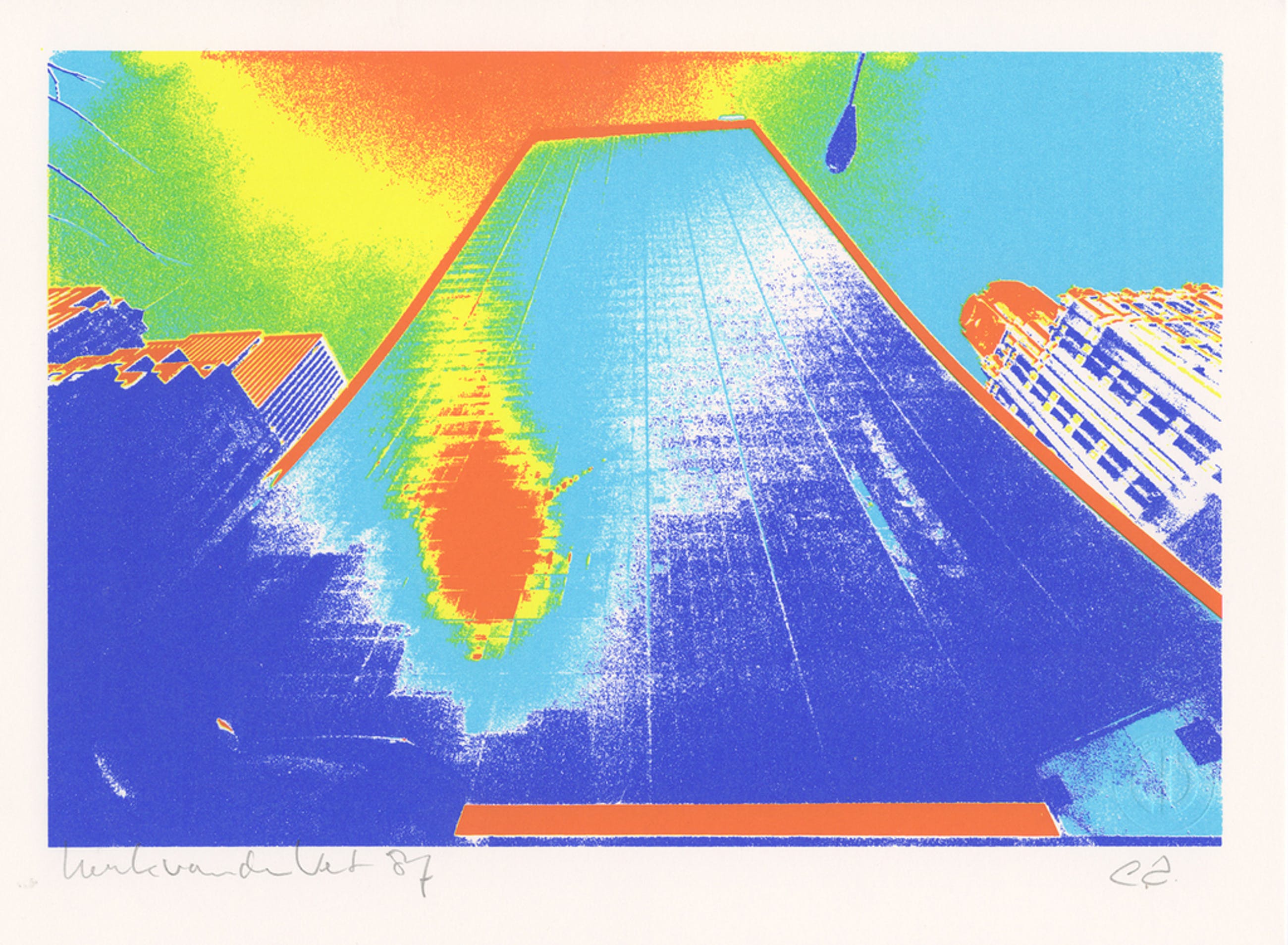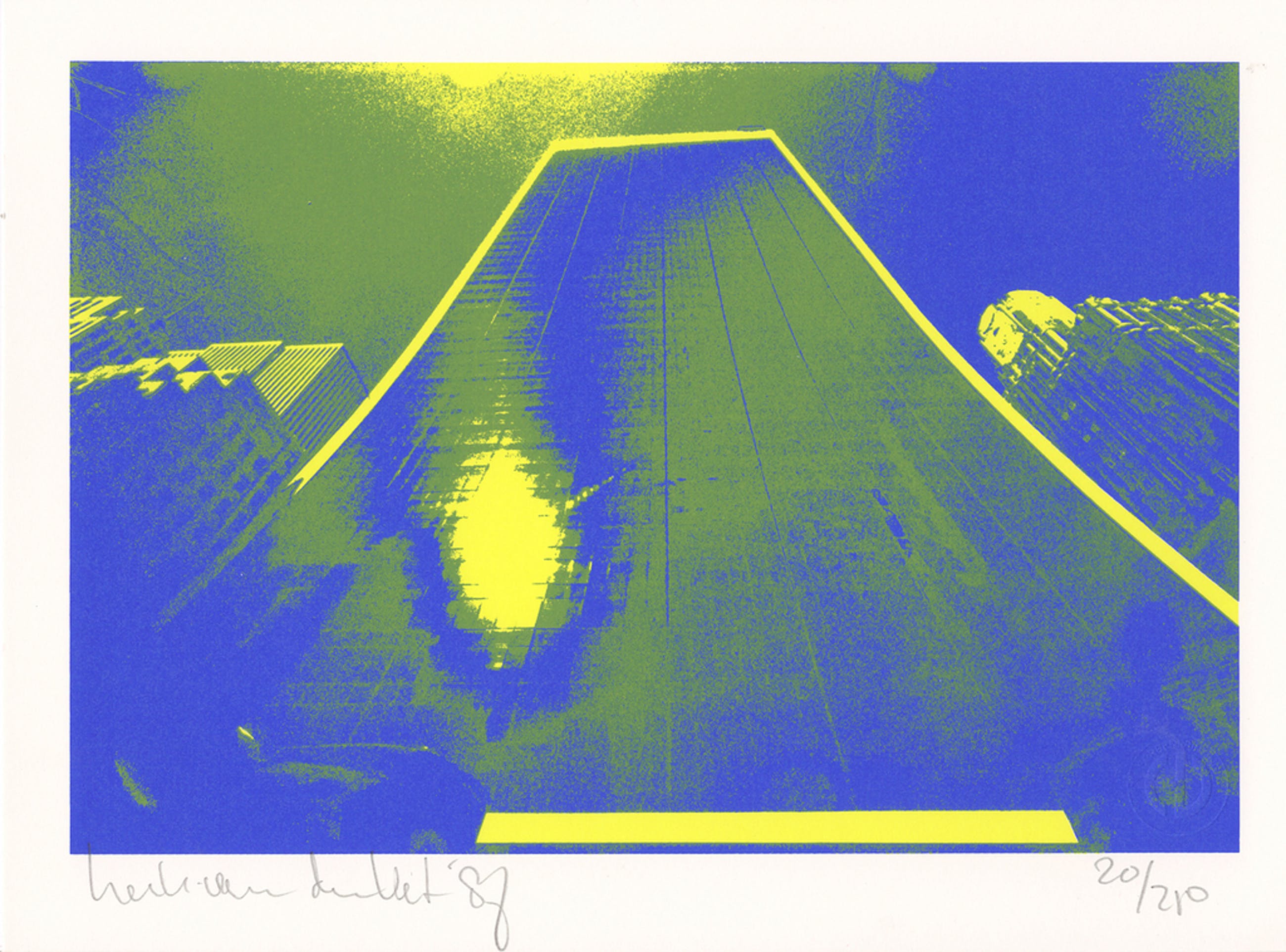Zeefdrukken zijn door meesterzeefdrukker Wout van der Vet met de hand gedrukt en genummerd en gesigneerd met potlood door de kunstenaar.