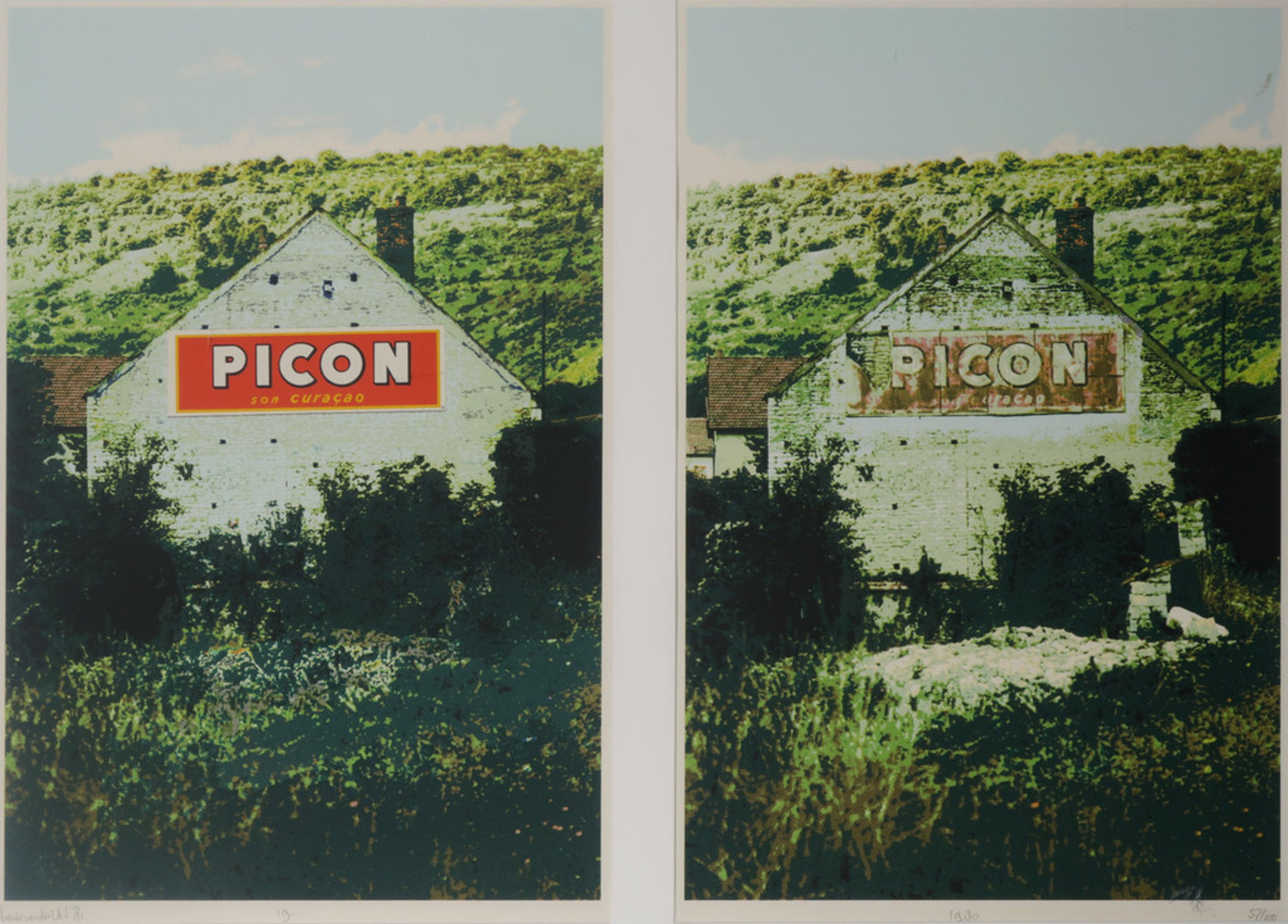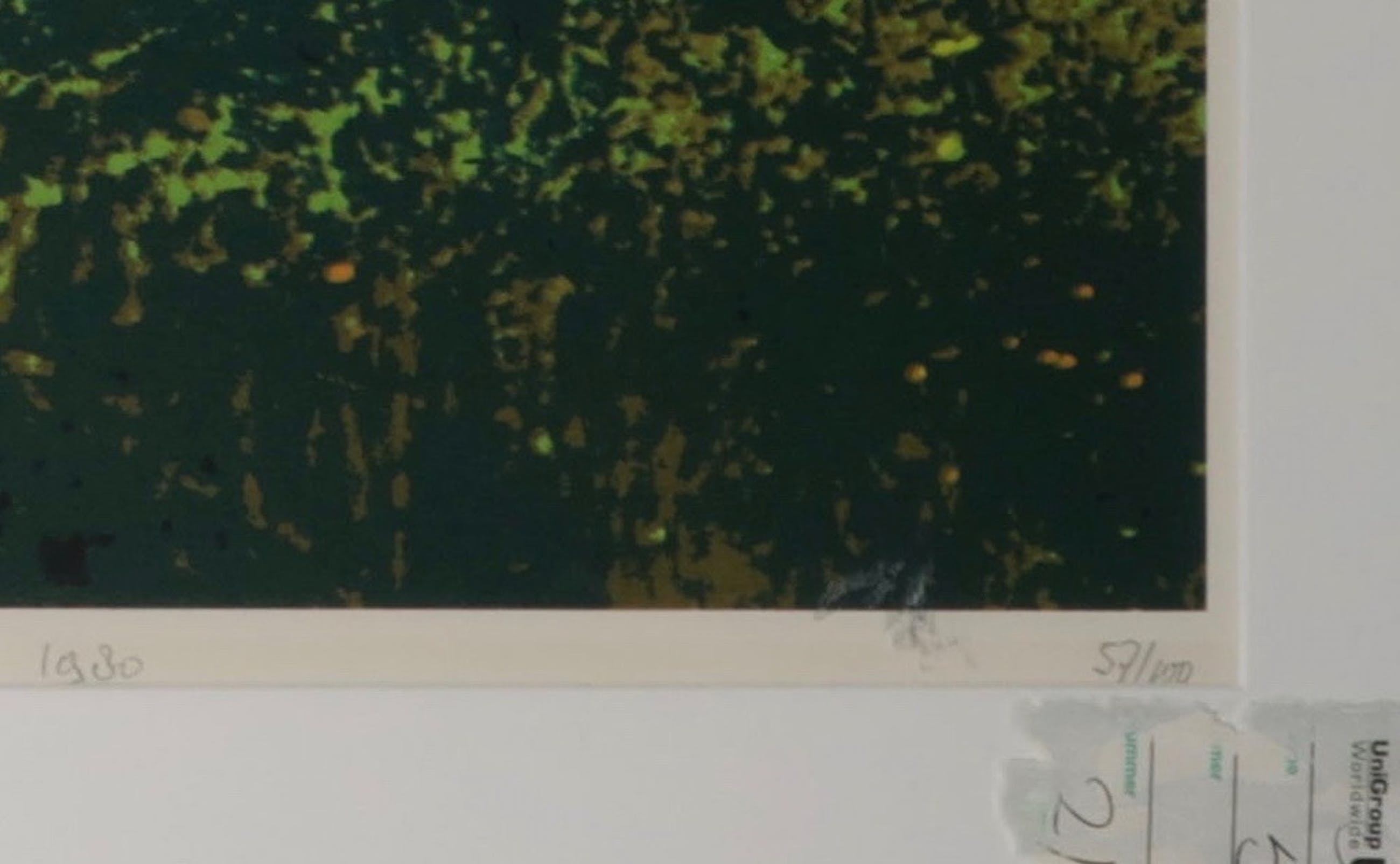 Conditie kunstwerk: In goede staat. Het rechterdeel heeft drie beschadigingen in/ langs het beeld (rechtsonder, rechts en boven). Zie foto's.