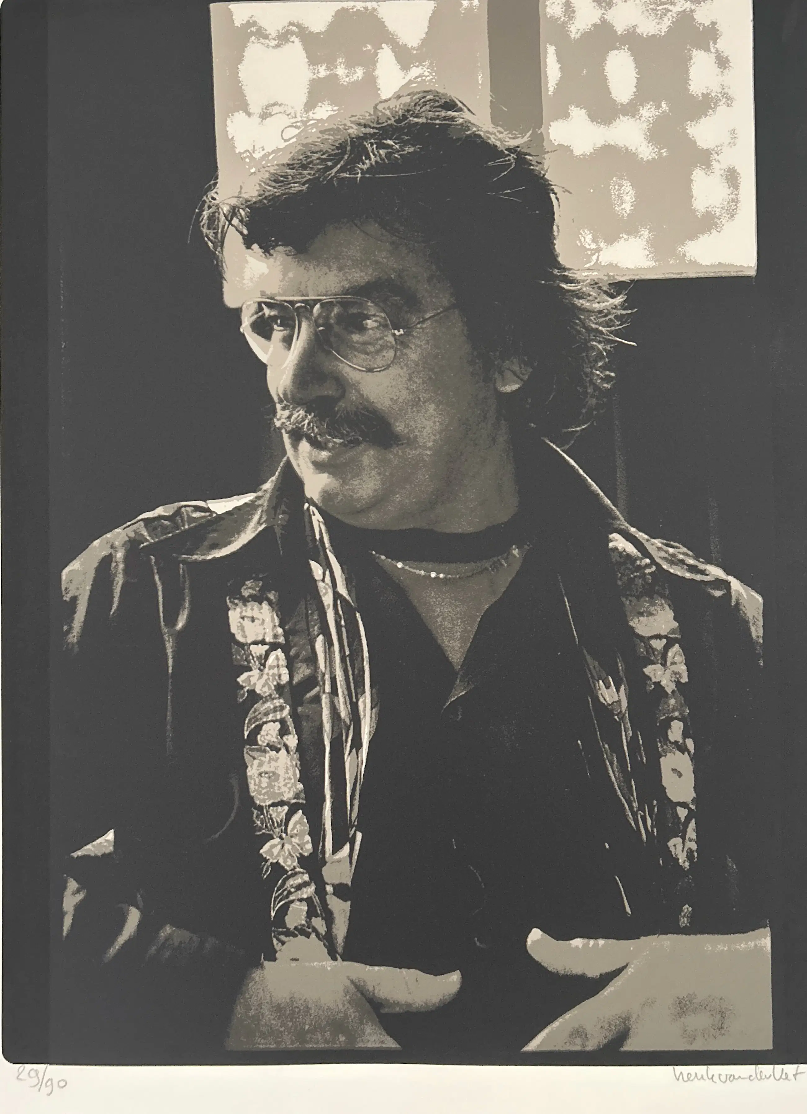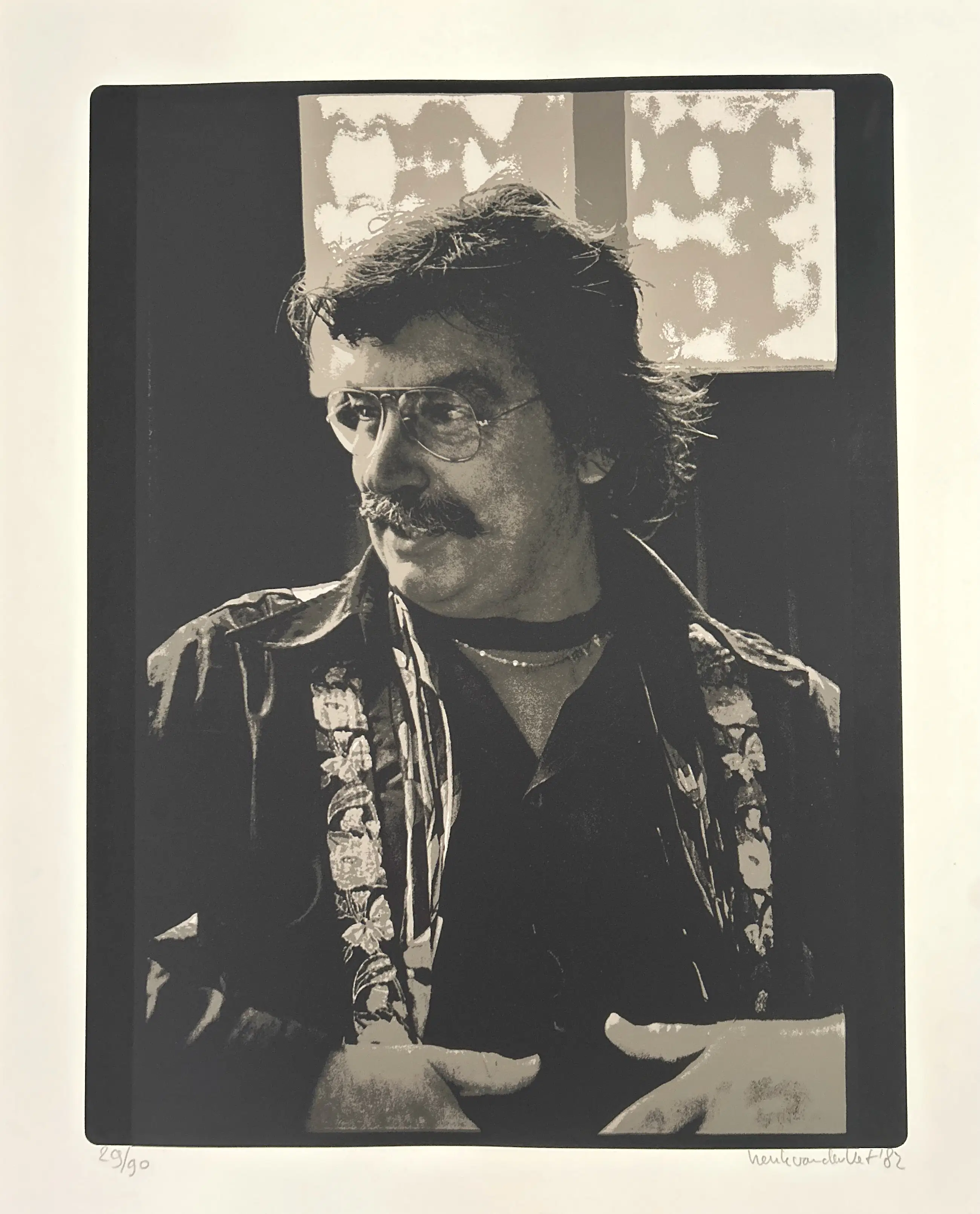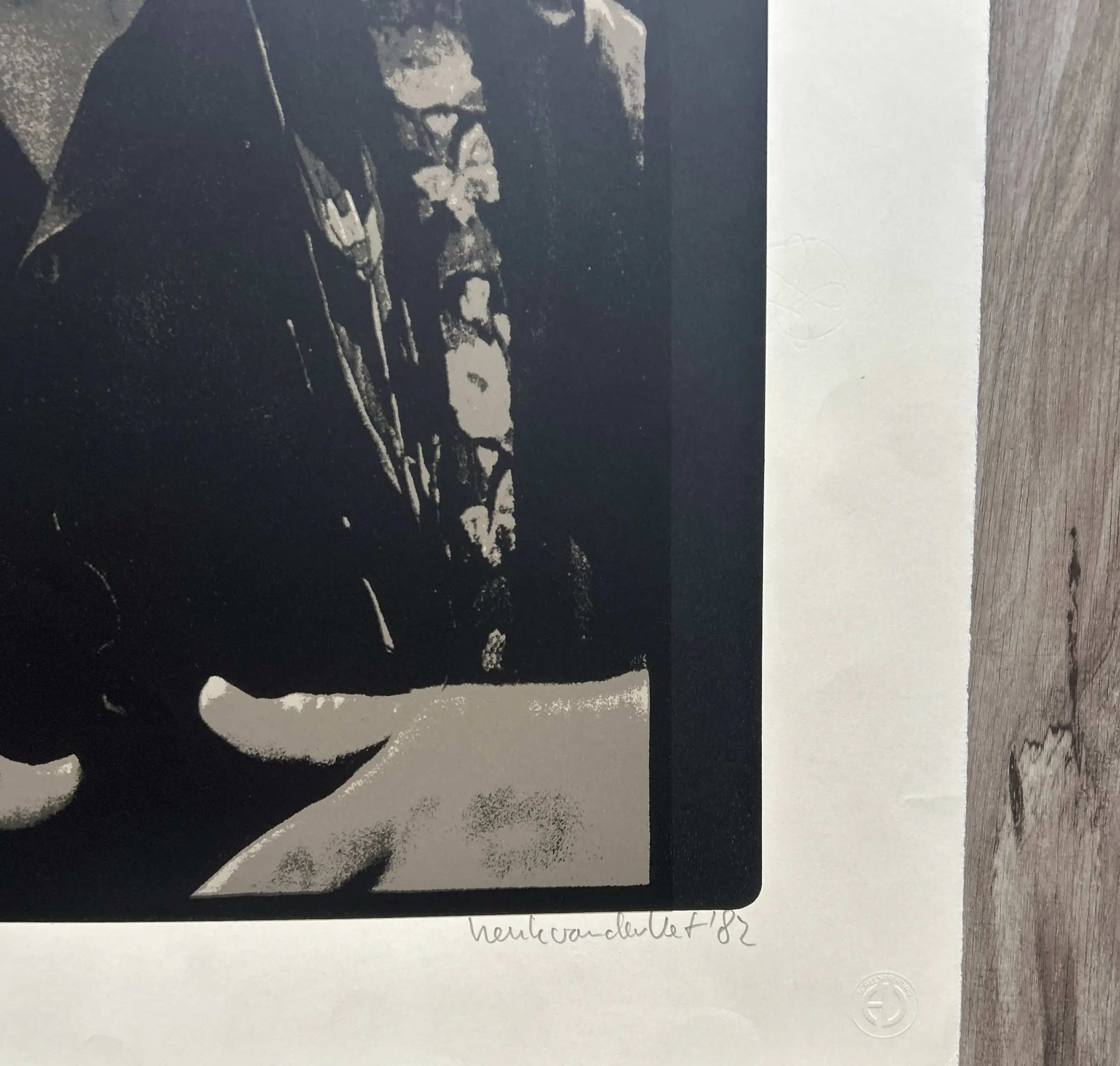 Conditie: zeer goed. Vouwtje hoek en deukje rand vel, zie foto's Oplage: 29/90. Afmeting: 65 x 50 cm. Zeefdruk van een foto van Karel Appel. De foto's werden gemaakt tijdens het maken en drukken van de portfolio 'Duo pour Pinceau et Crayon'. Wordt zorgvuldig verpakt en verzekerd verzonden.