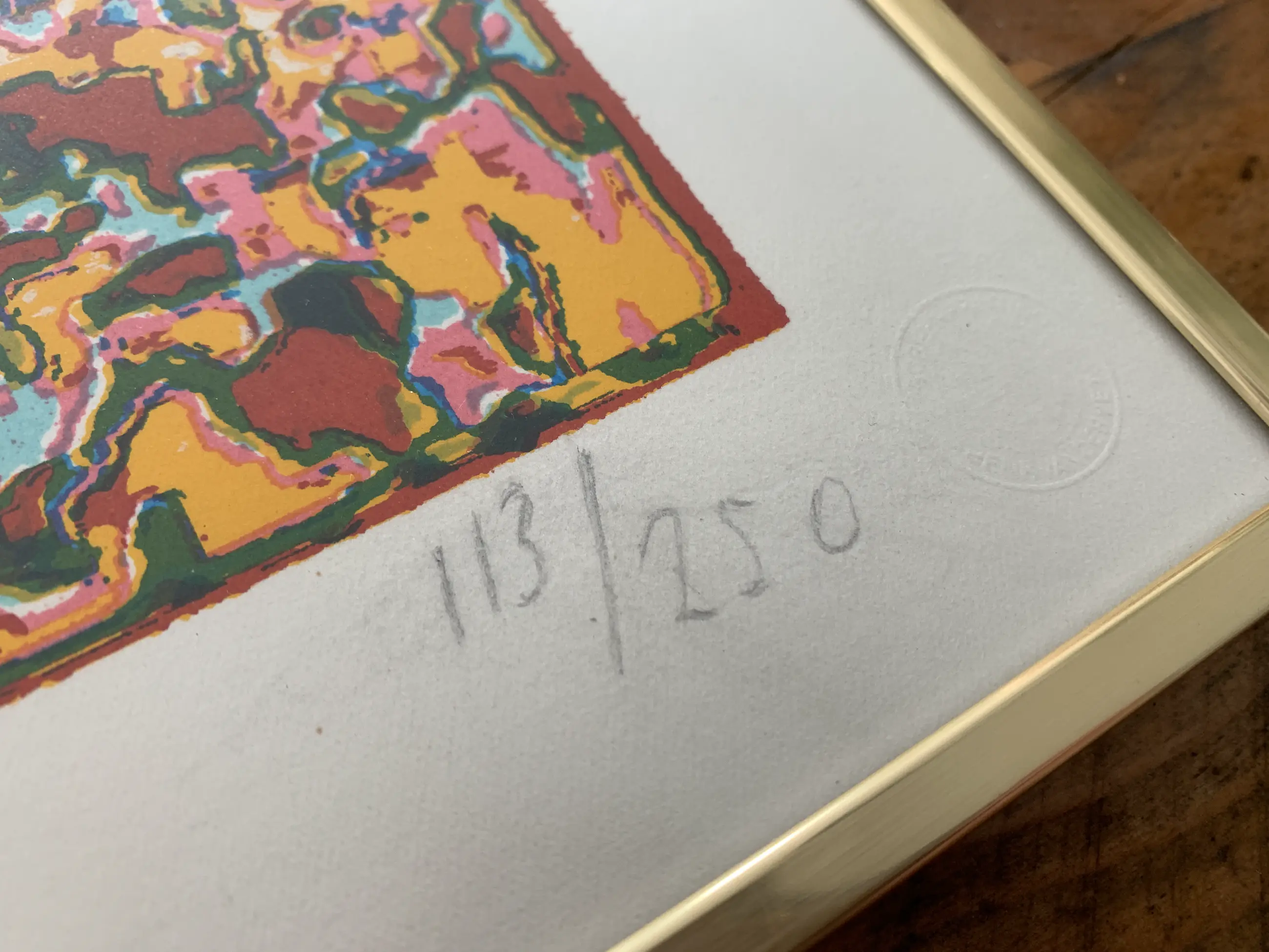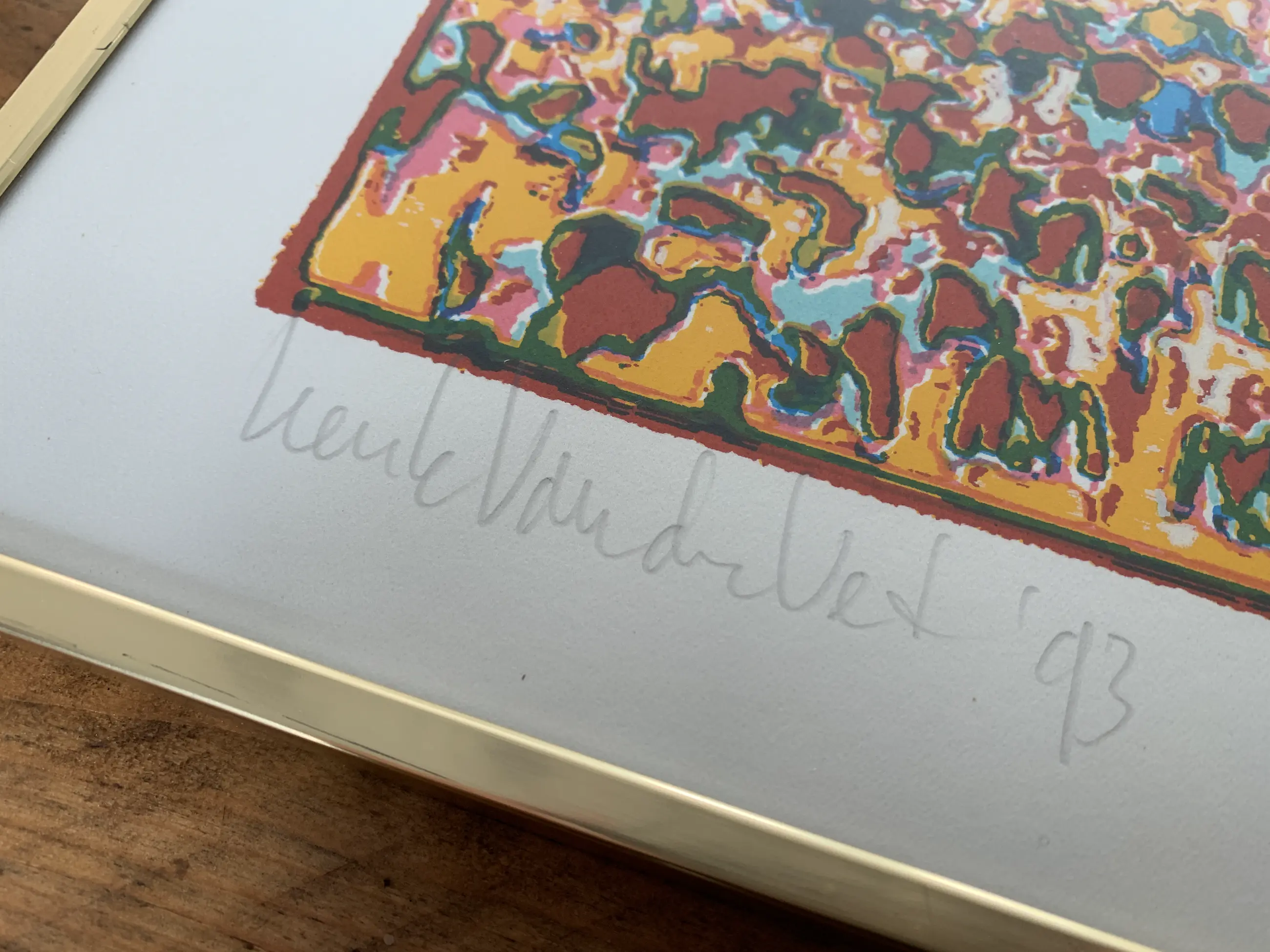 Dit kunst object heeft altijd in een omlijsting gezeten, geen gebruikssporen zichtbaar.
