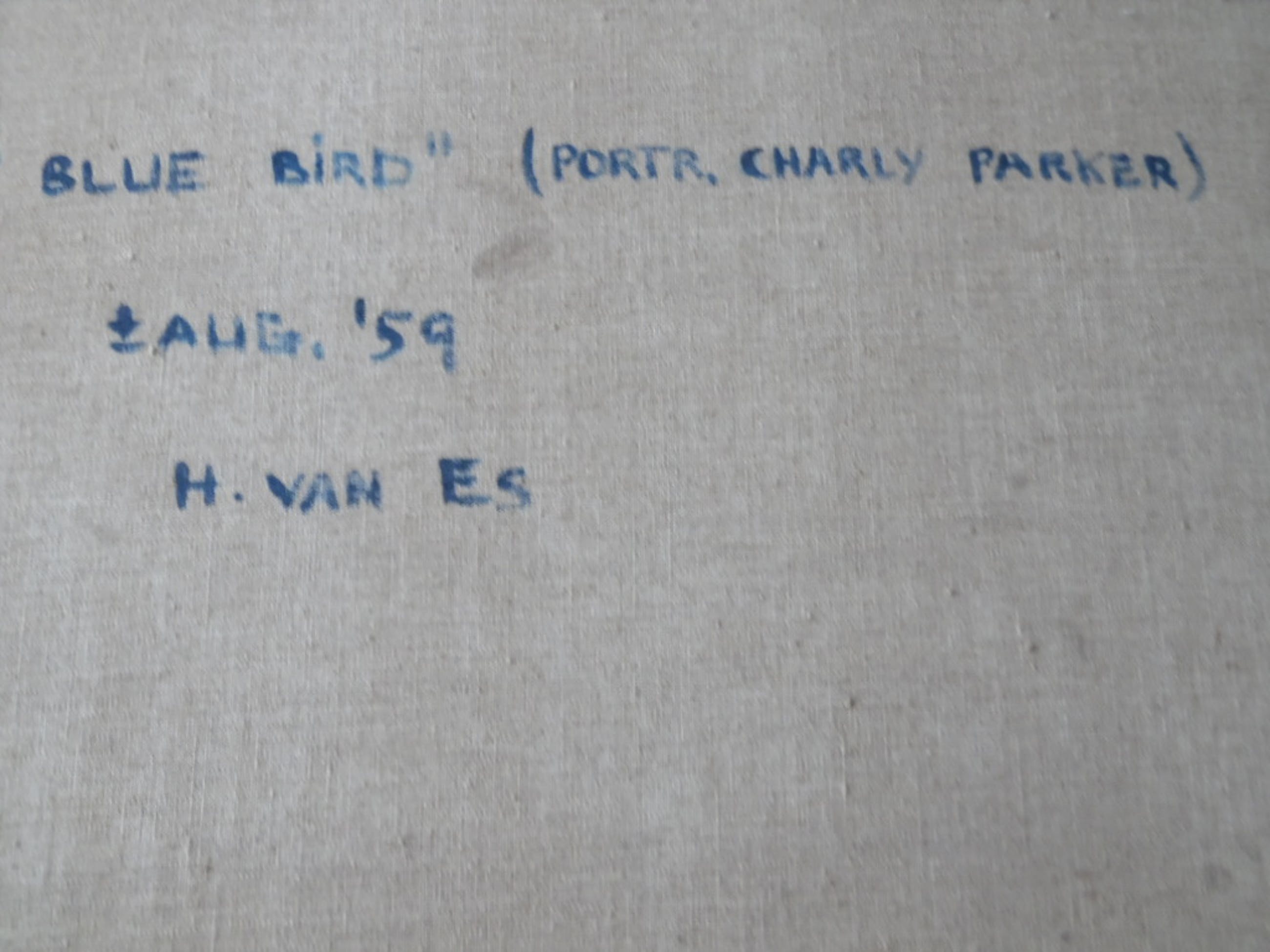 Henk van Es is een surrealist met een geheel eigen stijl. In zijn verbeeldingswereld zoekt hij de "inner cosmos". De strakke kleur, meestal koel, en de verticale composities kenmerken zijn "loszingen van het aardse, misschien nog nadrukkelijker dan de onderwerpen. Behalve schilderen speelde hij zelf ook baritonsaxofoon en hij had een grote bewondering voor Charlie Parker, een destijds beroemd musicus. Het schilderij is aan de achterzijde gesigneerd met vermelding van titel en jaartal.