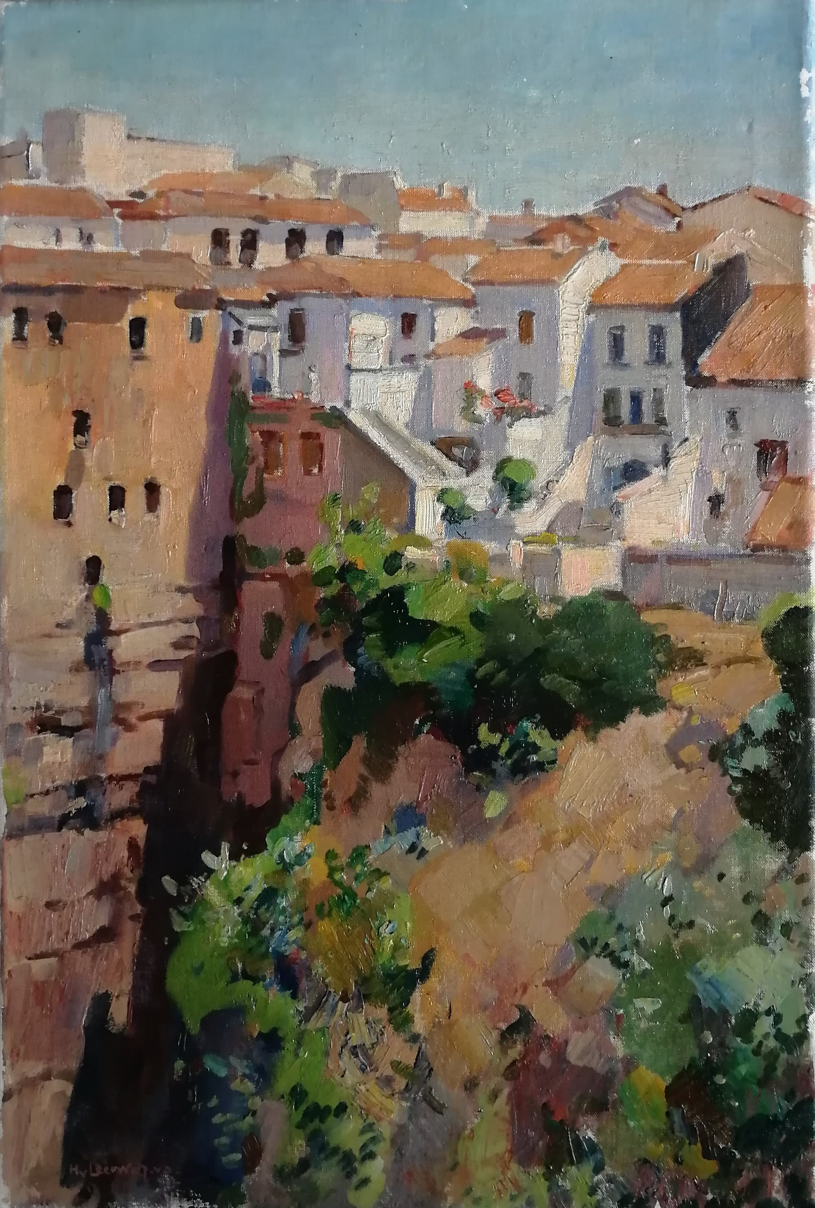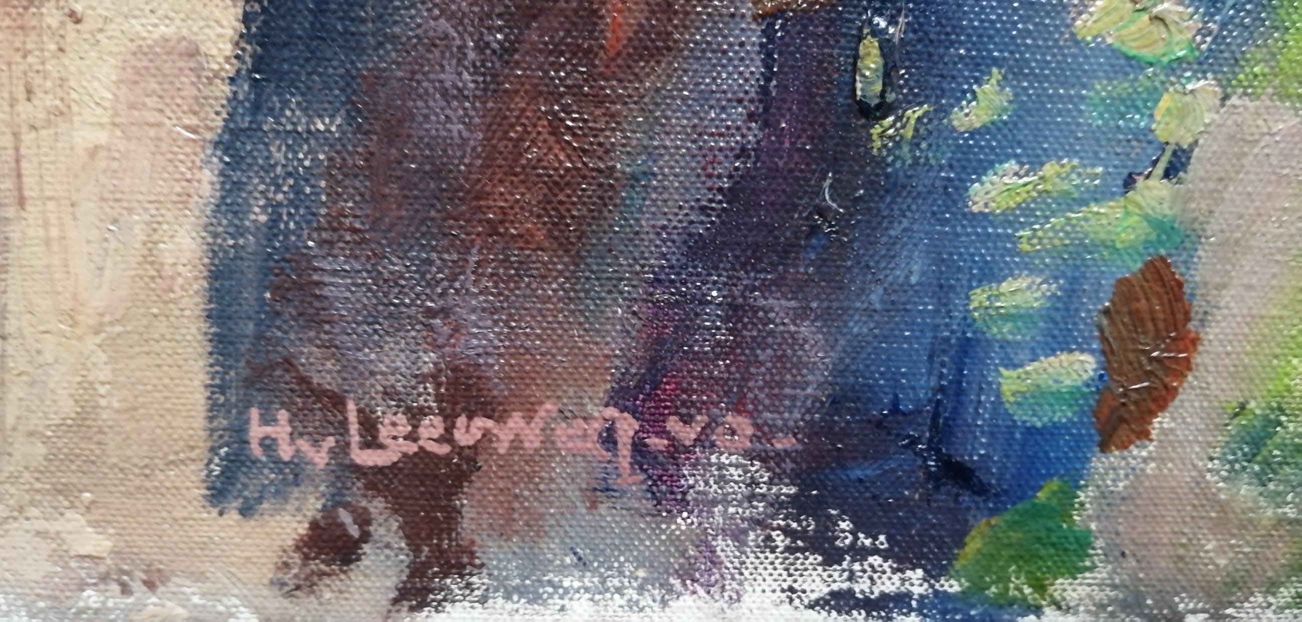 Fraai olieverf op doek in kleurige pasteltinten.Gesigneerd linksonder.Hendrik van Leeuwen van Oudewater werd geboren op 22 januari 1890 te Ter Aar en overleed te Voorburg op 23 augustus 1972.Zijn opleiding genoot hij aan de Koninklijke Academie voor Beeldende Kunst te Den Haag, de Académie Julian te Parijs en de Académie de la Grande Chaumière te Parijs.Hij was een leerling van Willem de Zwart.Lid van de Haagsche Kunstkring en Pulchri Studio. Verzend- en verpakkingskosten binnen Nederland 20,00 euro.