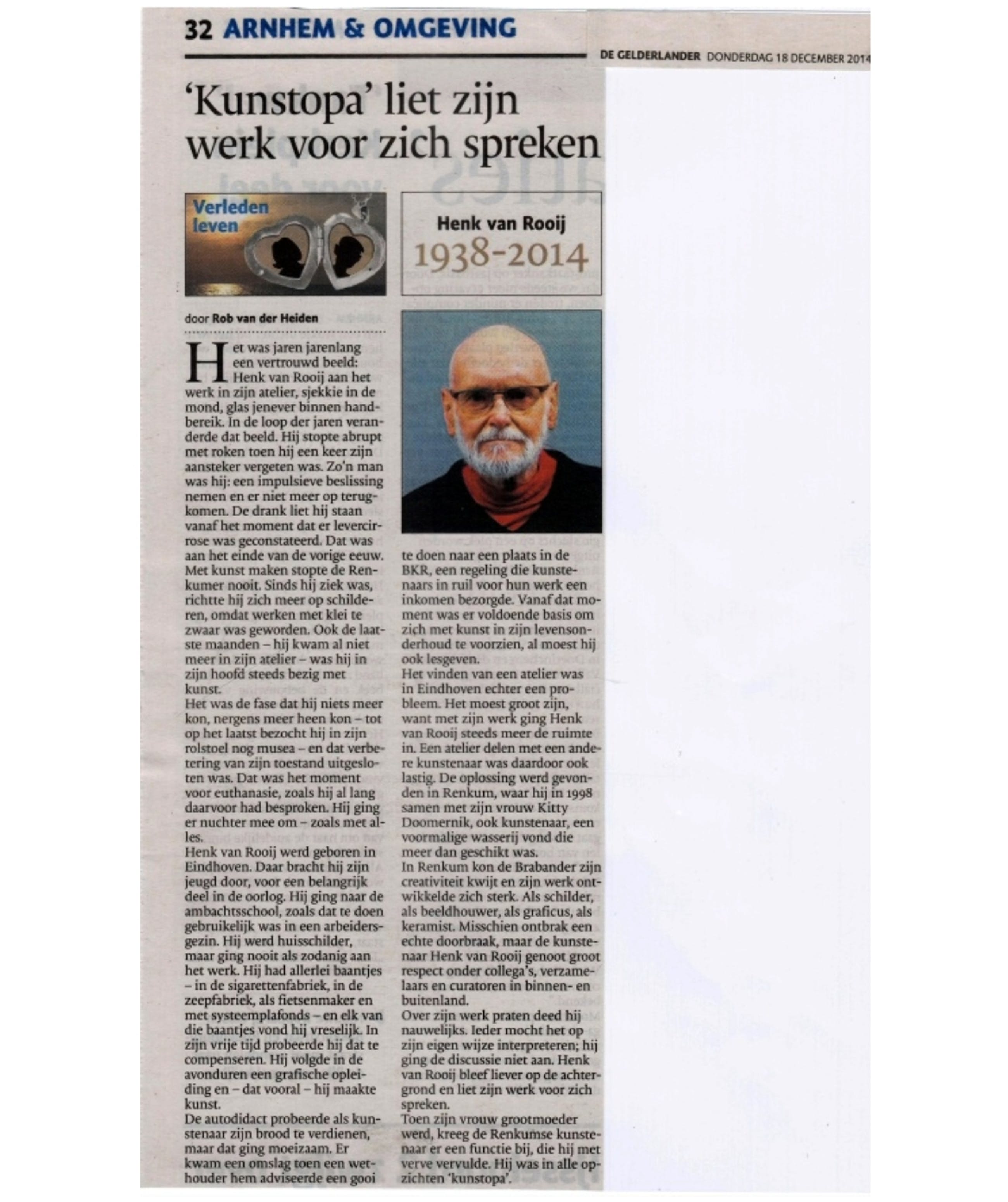 Mooi werk van Henk van Rooij. Afkomstig uit collectie ministerie van BiZa. Slechts 2 eigenaars gehad. Met lijst.