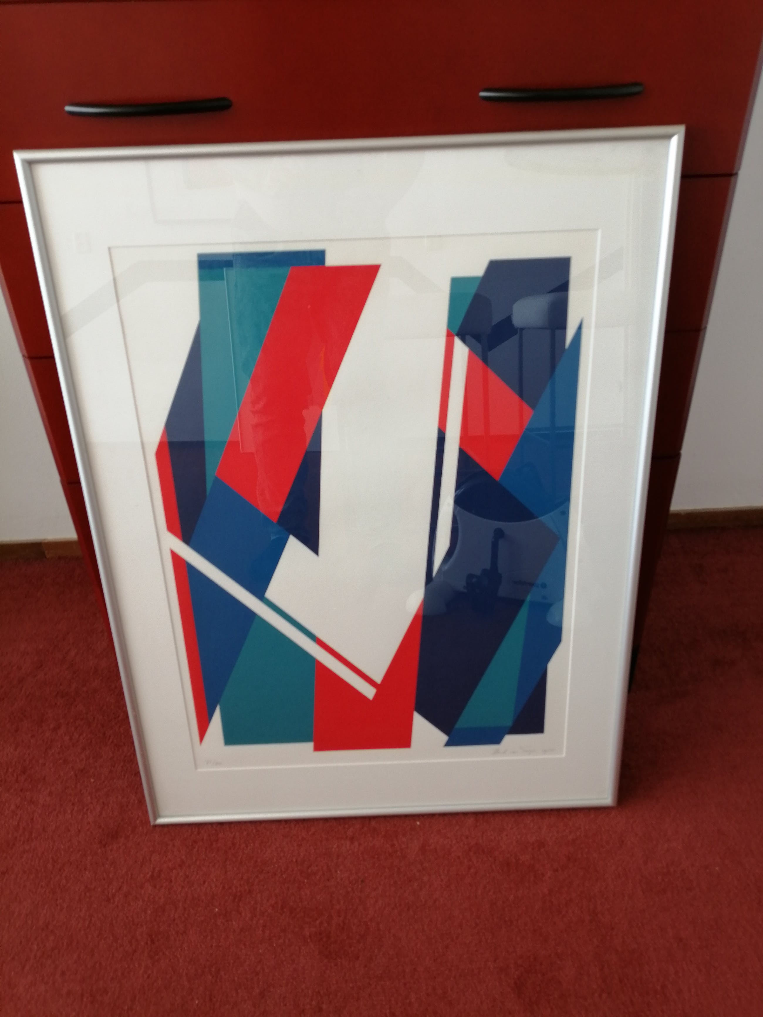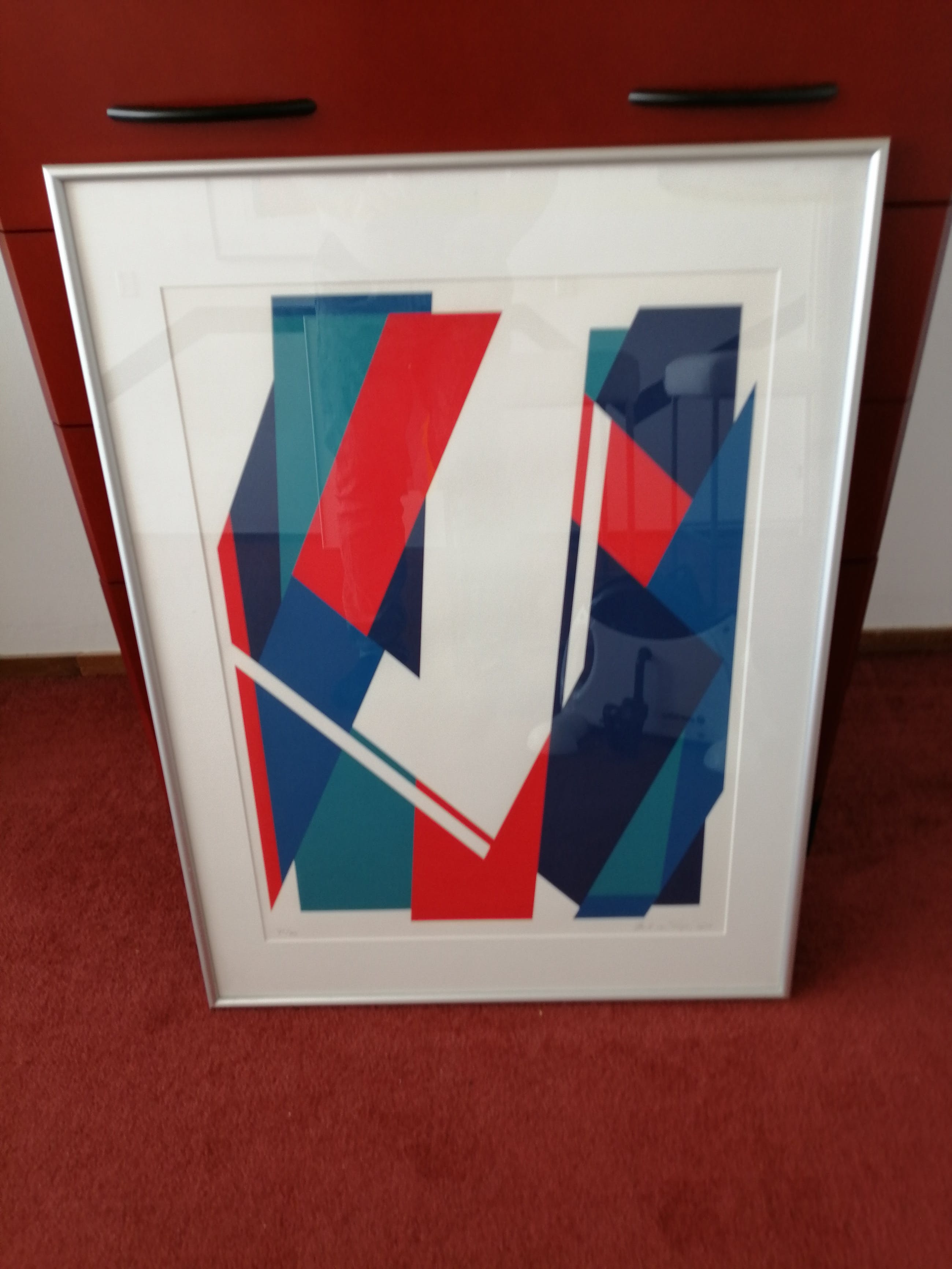 prachtige zeefdruk geometrisch abstract , werk en lijst puntgaaf 32 jaar oud !!