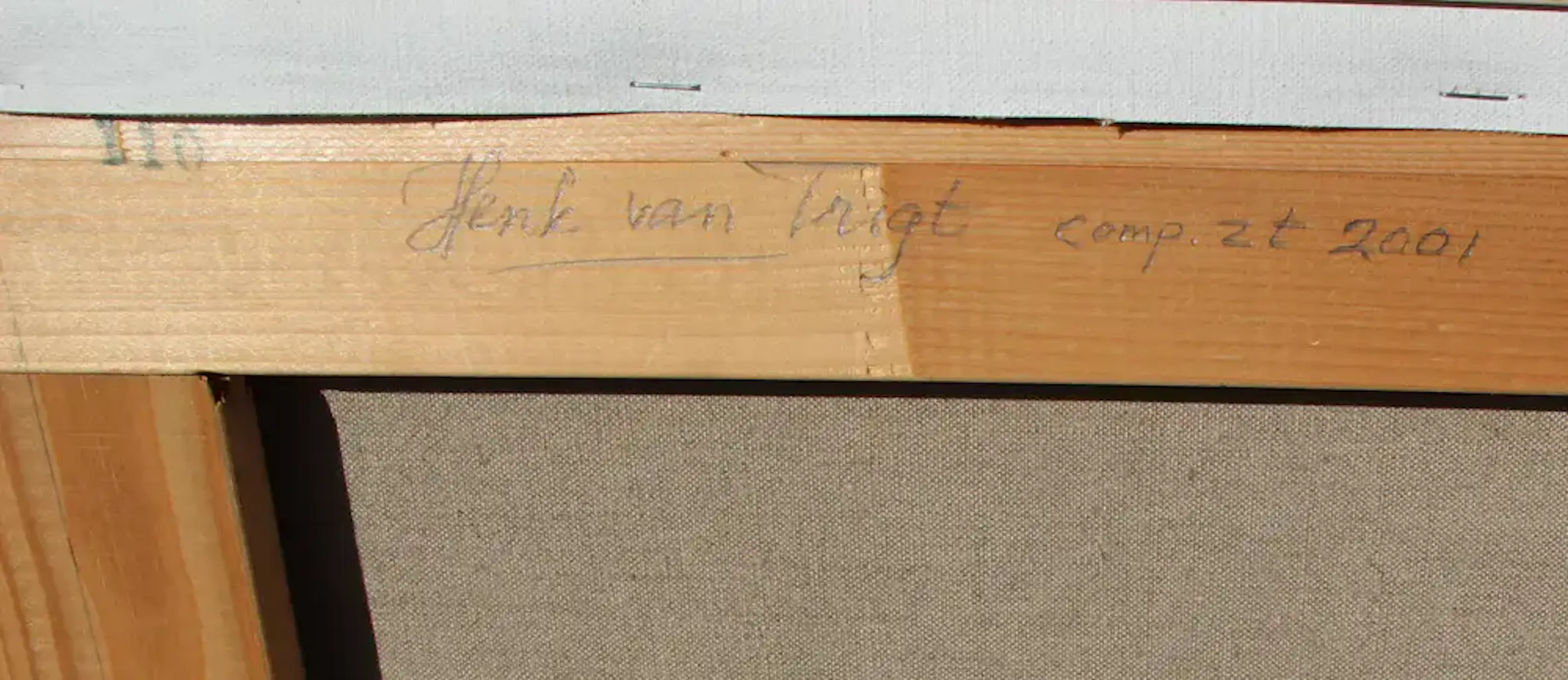 Ingelijste olieverf op doek, van Henk van Trigt. "Compositie". Afmetingen incl lijst: H61,5 x b111,5,5cm. Afmetingen voorstelling: H60 x b110cm. Het werk is, voorzien van monogram, door de kunstenaar. De authenticiteit van dit werk wordt volledig gegarandeerd. Een certificaat van echtheid wordt, op aanvraag, gemaild.