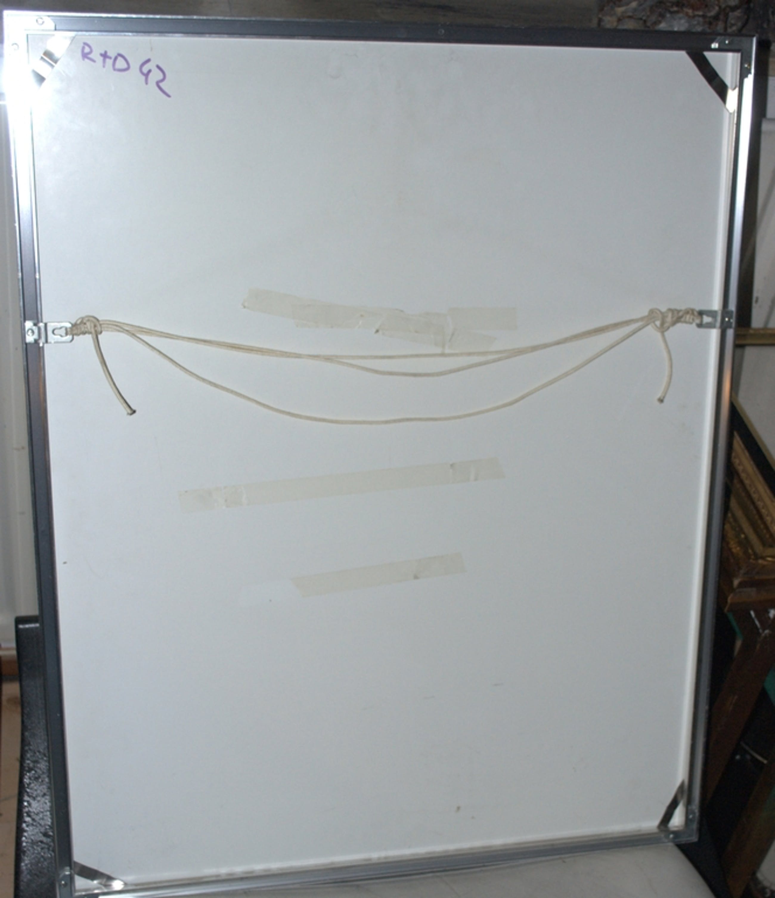 Achter een fraai passepartout, in een mooie metalen lijst met lichte schade,75x61 cm.