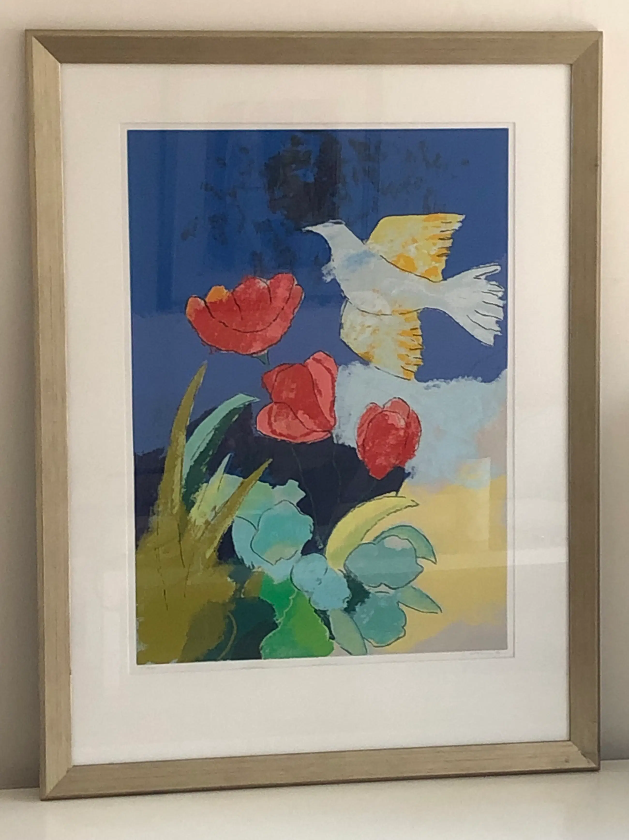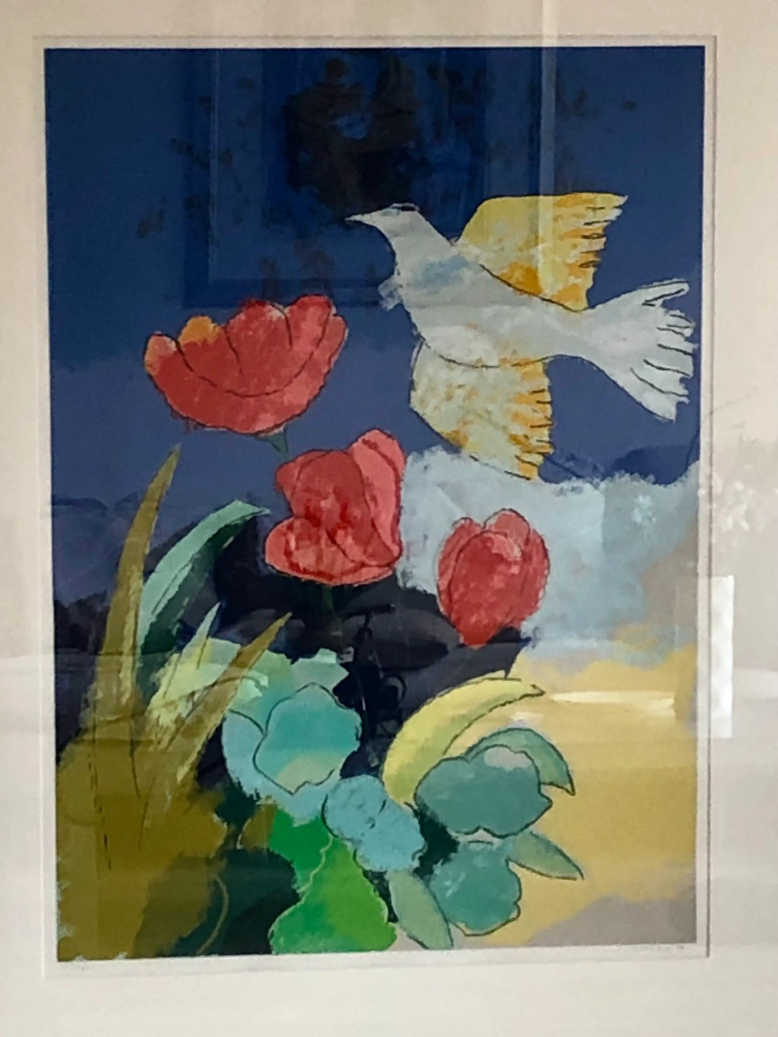 Henk van Vessem - Compositie met bloemen en duif (groot)