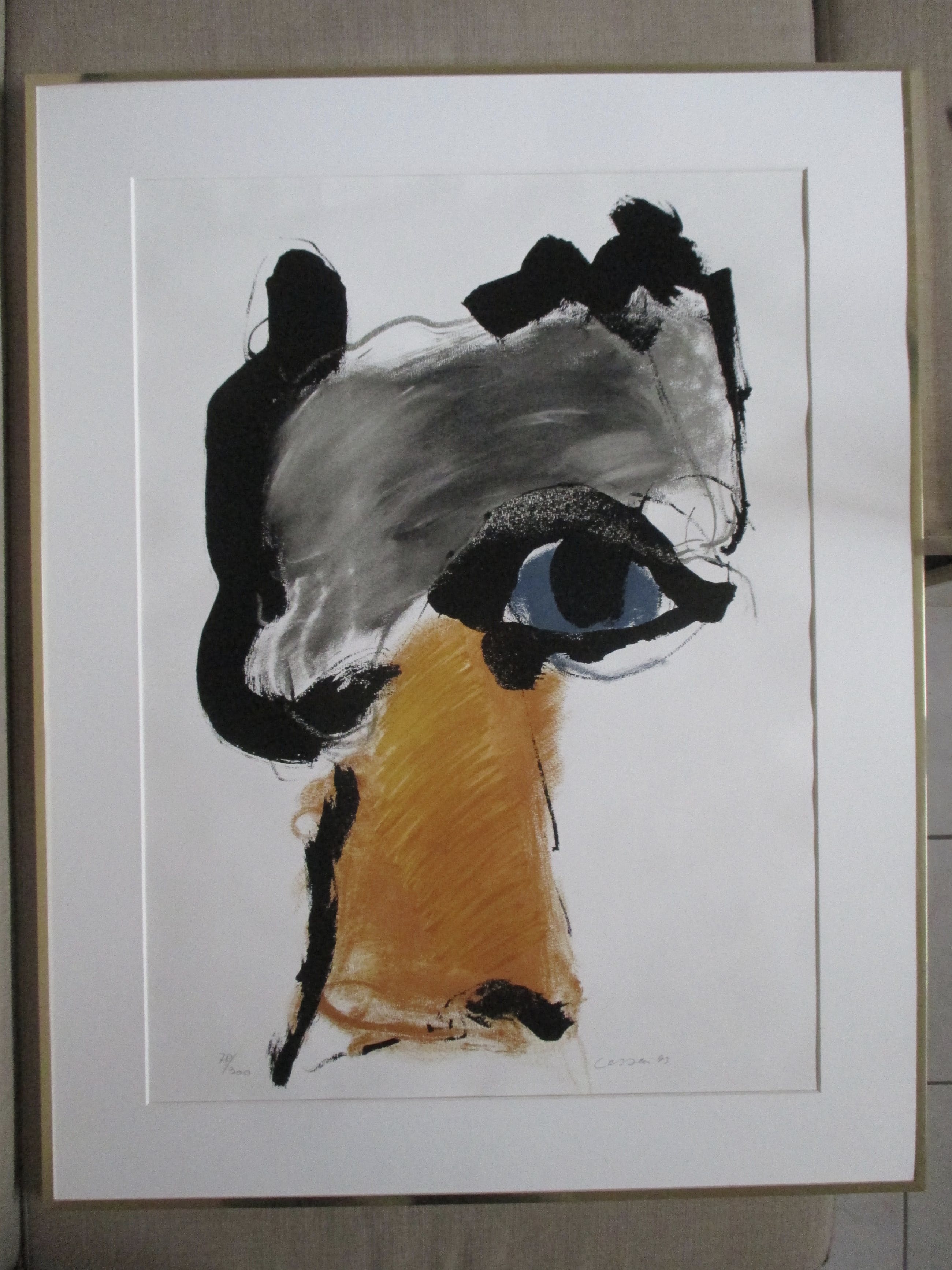 Litho van Henk van Vessem, gesigneerd, gedateerd en genummerd in potlood. Ingelijst ZONDER GLAS in goudkleurige aluminium Barth lijst.