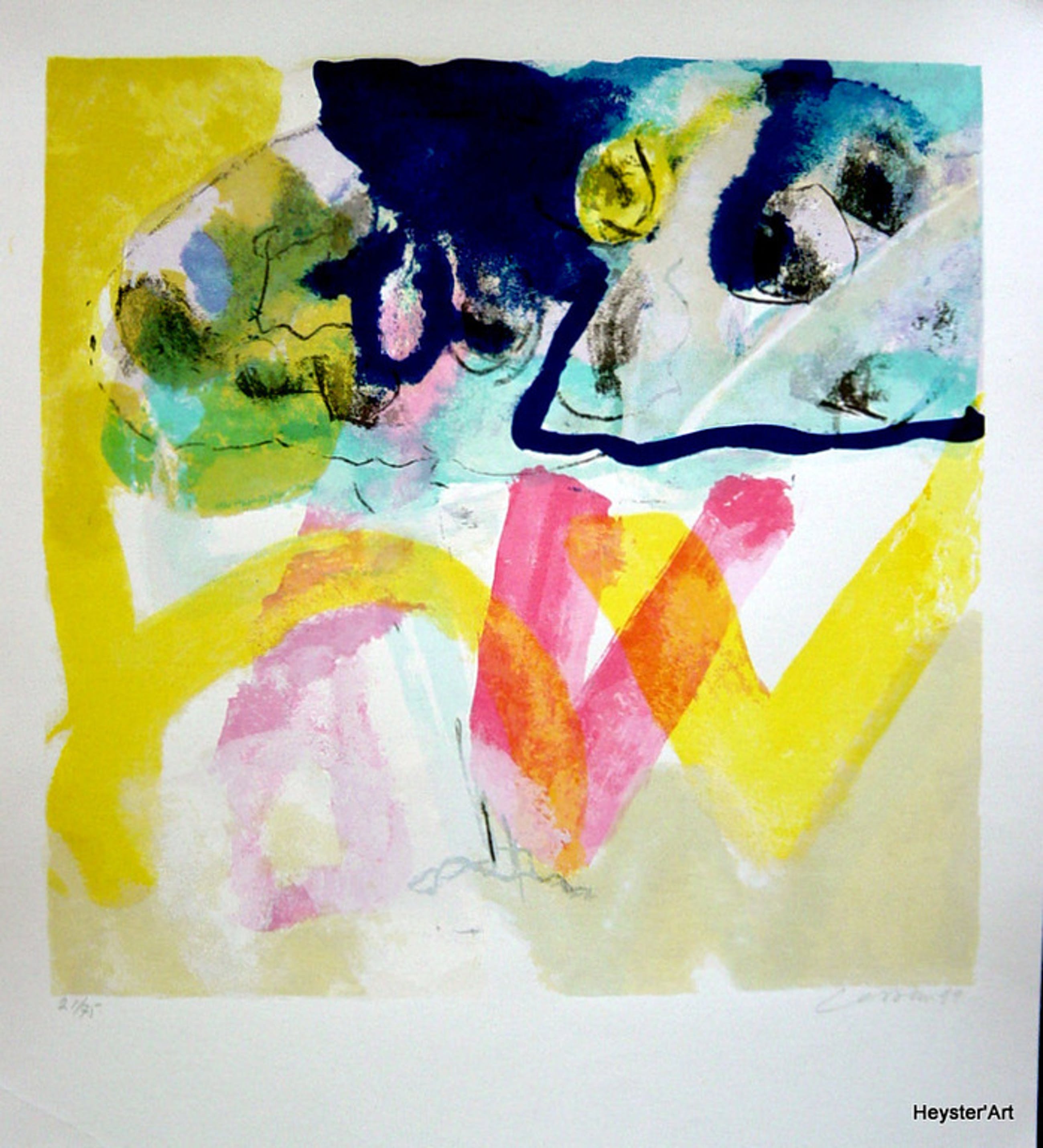 Oplage 75 Dit is nr 21. Zeefdruk is in goede staat. Formaat 45x40 cm. Gedrukt op het atelier van de kunstenaar, door de kunstenaar zelf.