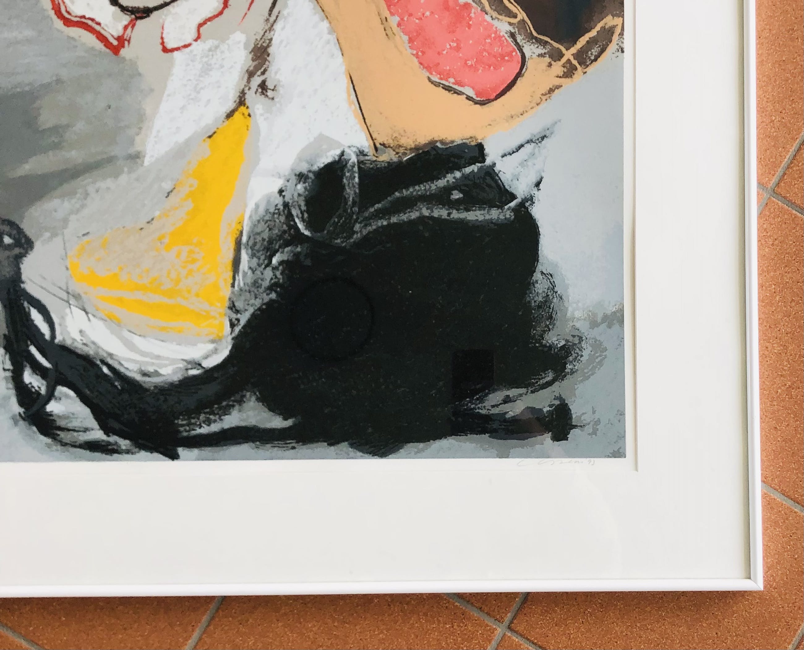 Mooie zeefdruk van henk van Vessem met lijst. Een werk dat zo aan de muur kan worden gehangen! U kunt het werk vooraf komen bekijken in de Schatkamer van galerie Rotor in Gorcum, na aankoop afhalen of verzenden per koerier met lijst. Het werk zit in een prima maar gebruikte lijst. De foto is door het glas van de lijst heen genomen. Pademietip: In overleg kunt u uw aankopen laten opslaan in onze verwarmde opslagruimte en ze in een later stadium ophalen.