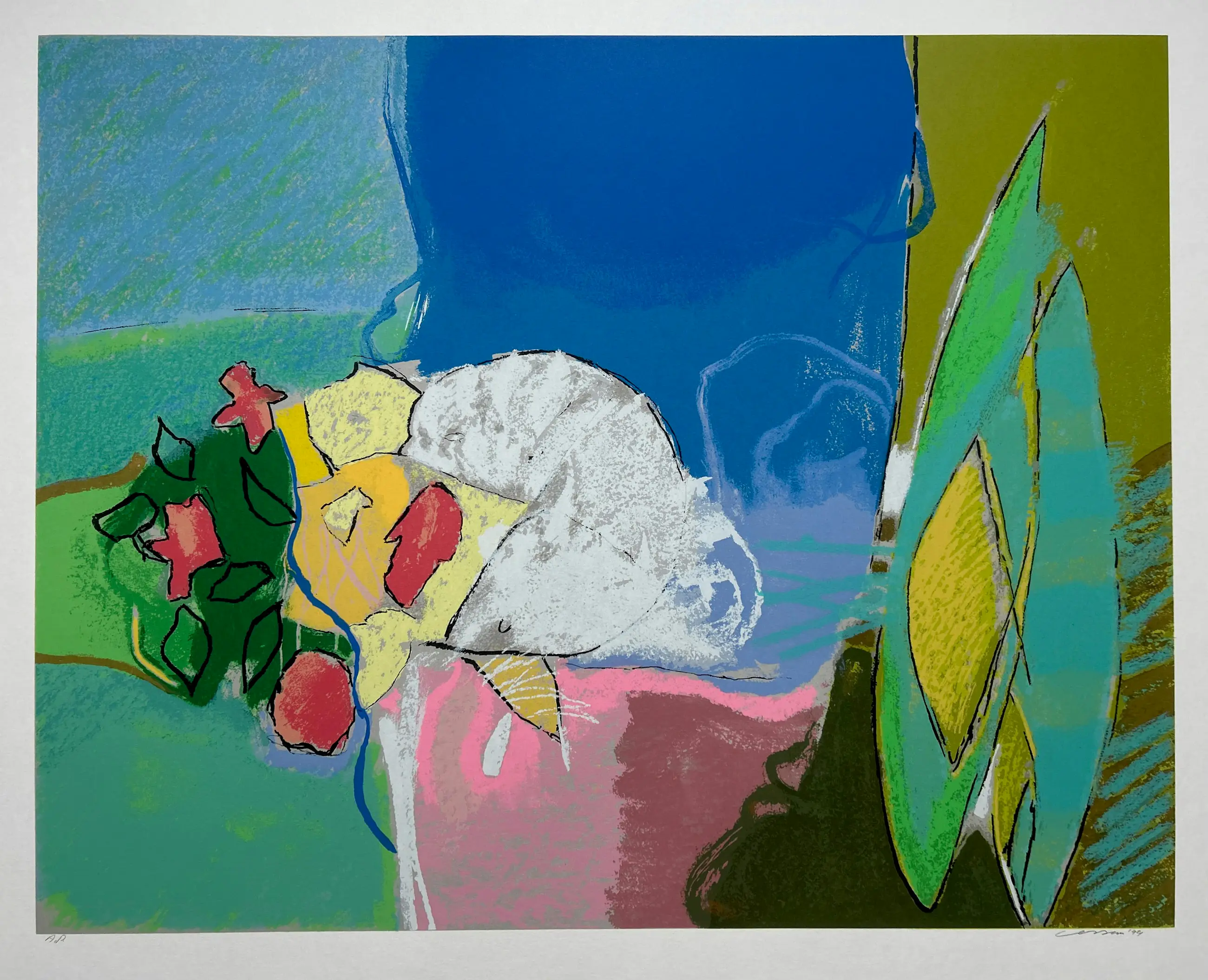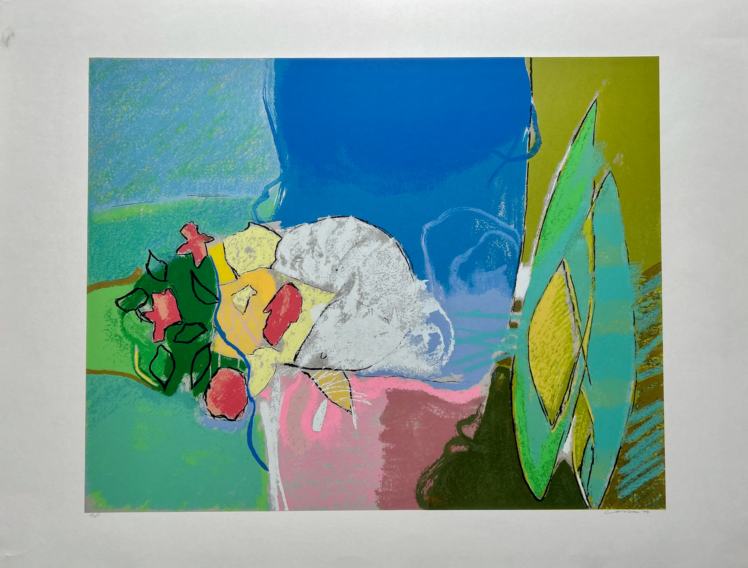 Conditie: zeer goed. Rand vel heeft licht vlekje, zie foto's. Oplage: A.P. Afmeting: afbeelding: 60 x 67 cm. Wordt zorgvuldig verpakt en verzekerd verzonden.