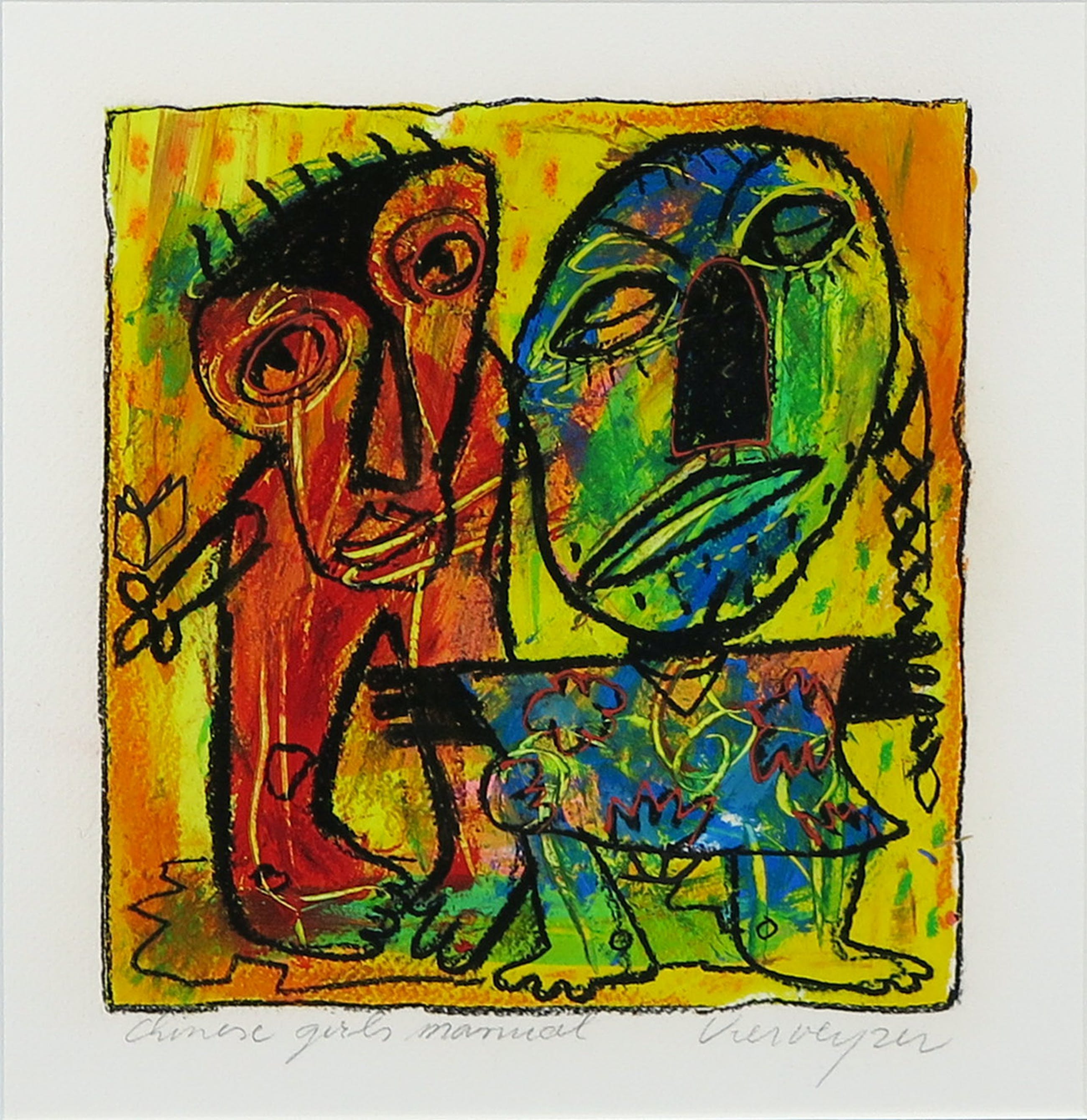 Henk Vierveijzer - Gemengde techniek op papier, Chinese girls manual- Ingelijst kopen? Bied vanaf 50!