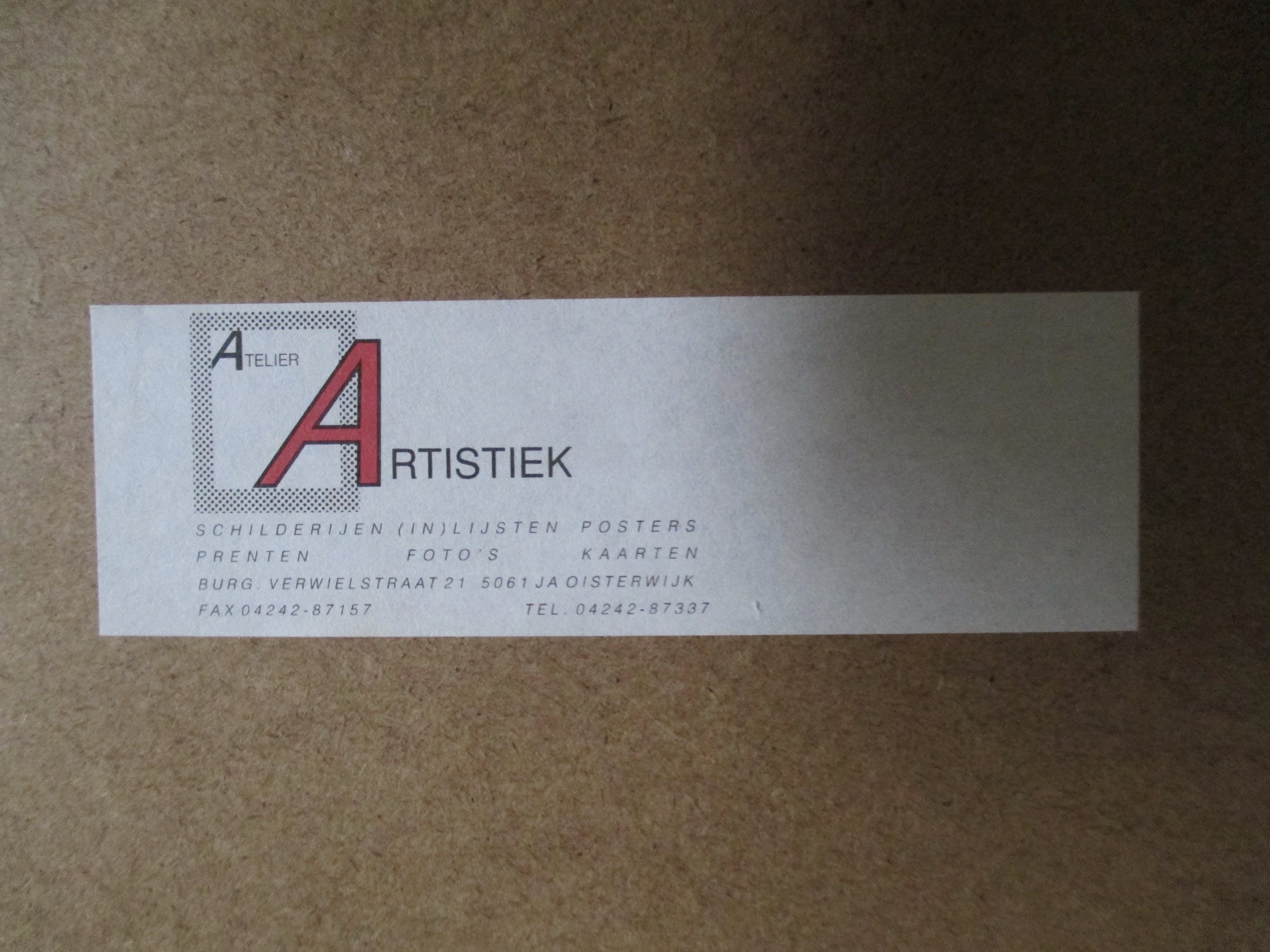 Het werk is af te halen op locatie. Als koper dient u zelf verpakkingsmateriaal mee te nemen. De locatie is: Voorthuizen, Nederland