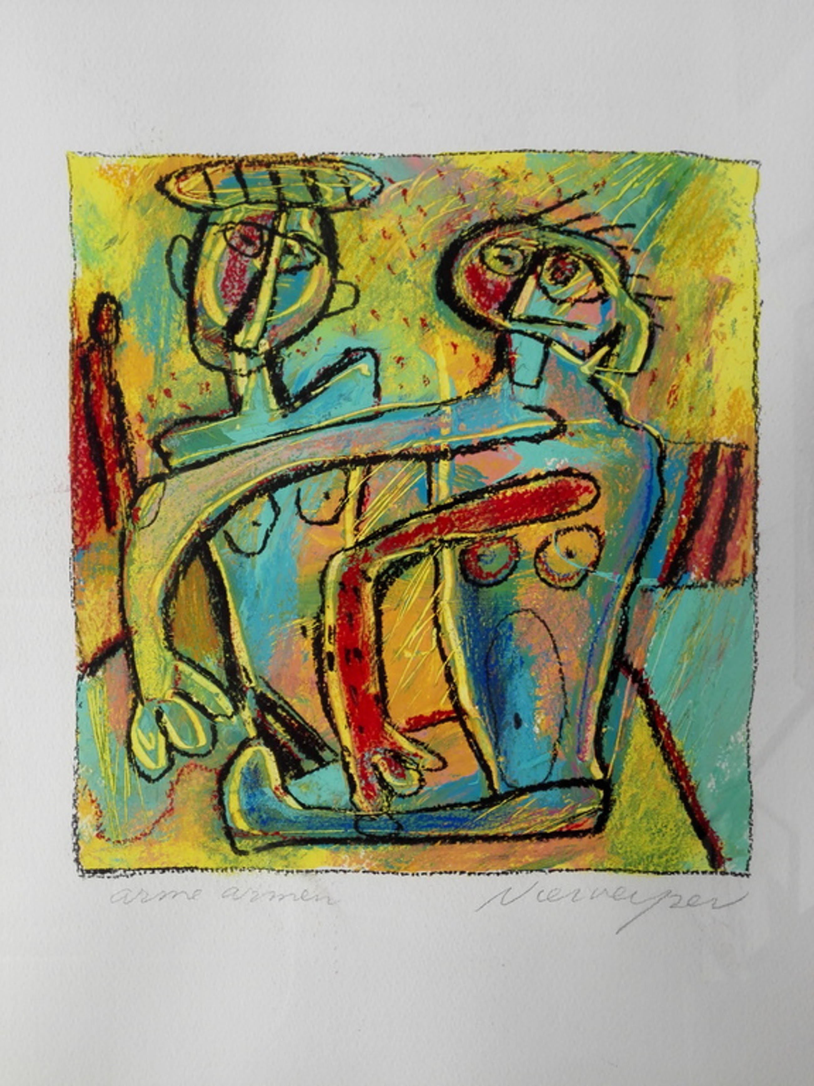 Kunstenaar: Henk Vierveijzer Titel: Arme armen Oplage: Origineel Gesigneerd: Ja Techniek: gemengd techniek op papier Maten: lijst : 83,5cm x 70cm Bij voorkeur ophalen, verzendkosten altijd voor koper, in overleg met verkoper.