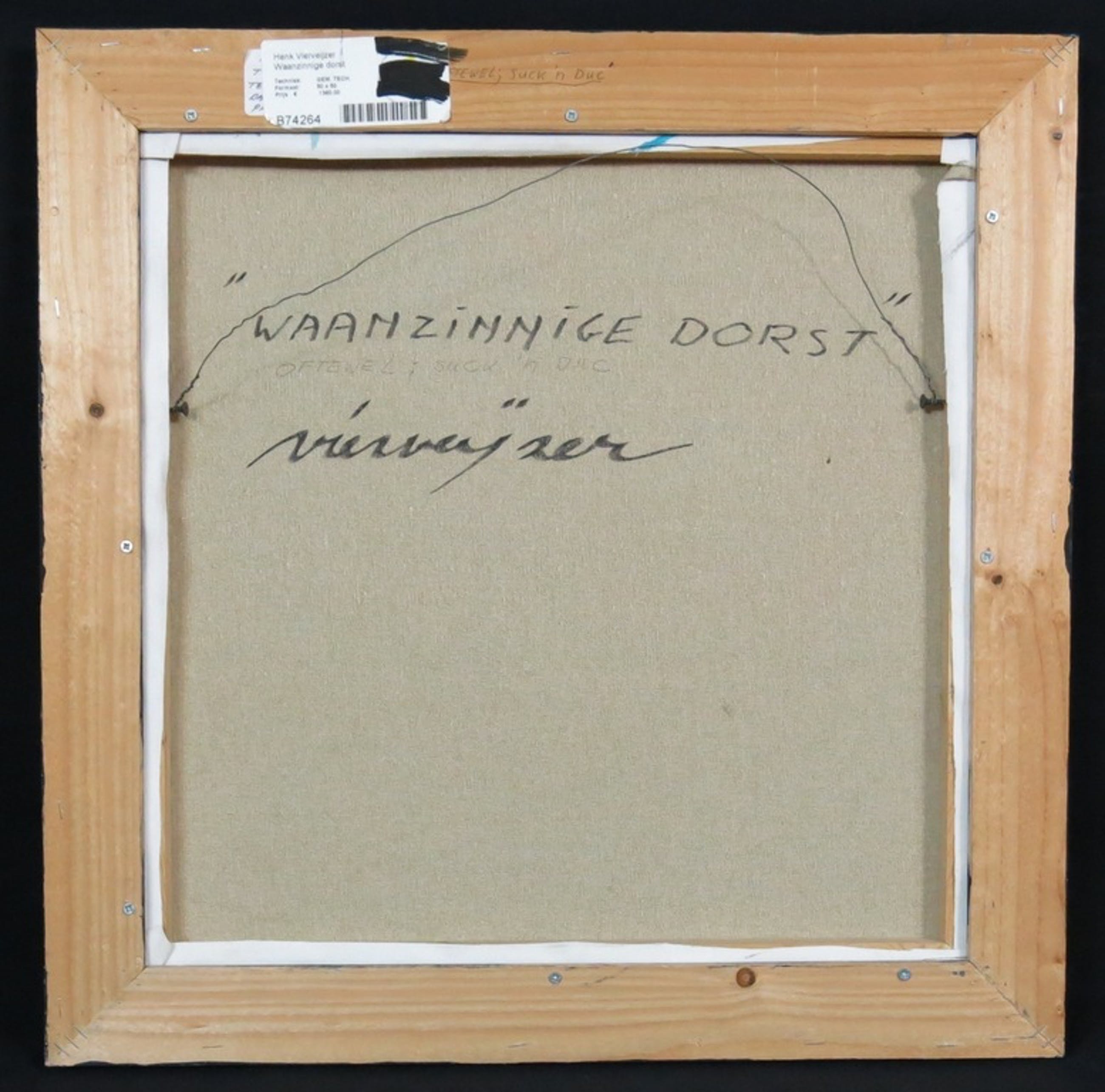 Afmetingen: lijst: 56 cm x 56 cm, in zwarte houten baklijst, gesigneerd