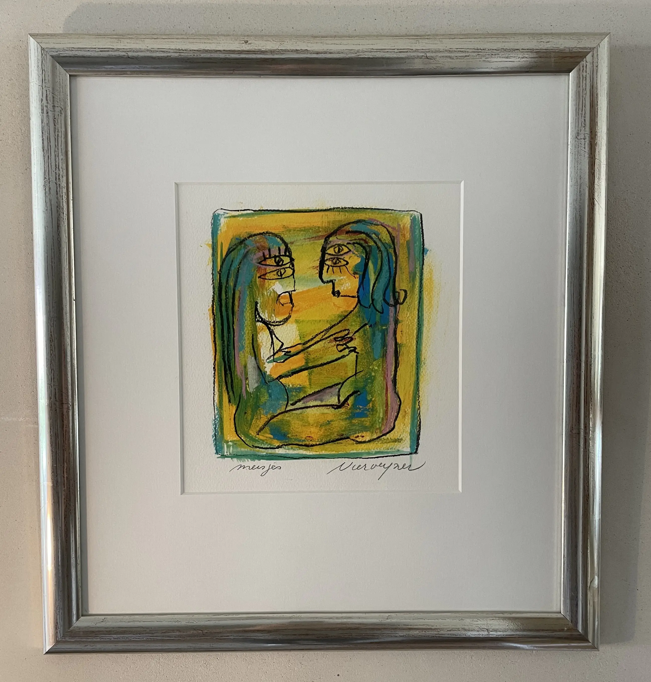 Henk Vierveijzer, de schilder van het werk "Meisjes", staat bekend om zijn vermogen om intieme en betoverende momenten vast te leggen. Zijn kunstwerken wekken gevoelens van nostalgie en vreugde op, waarbij hij de essentie van jeugdige onschuld en verbondenheid weet vast te leggen. Met zorgvuldige penseelstreken en kleurgebruik creëert Vierveijzer een atmosfeer van warmte en tederheid, waarin de schoonheid van eenvoudige menselijke relaties naar voren komt.