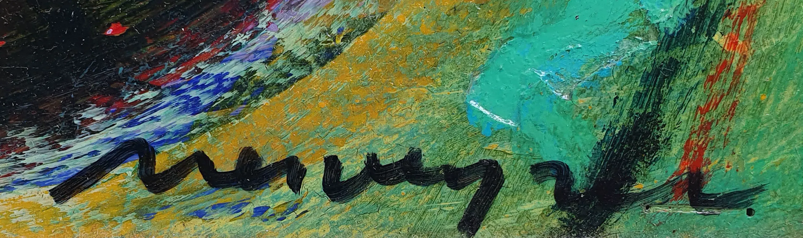 Kunstenaar: Henk Vierveijzer Techniek: Schilderij Oplage: Unicum Gesigneerd: Rechtsonder Afwerking: Ingelijst Afmeting zonder lijst (HxB): 40 x 40 cm Afmeting met lijst (HxB): 90 x 85,5 cm Conditie werk: Zeer goed Conditie lijst: Gebruikt Referentie: 00903