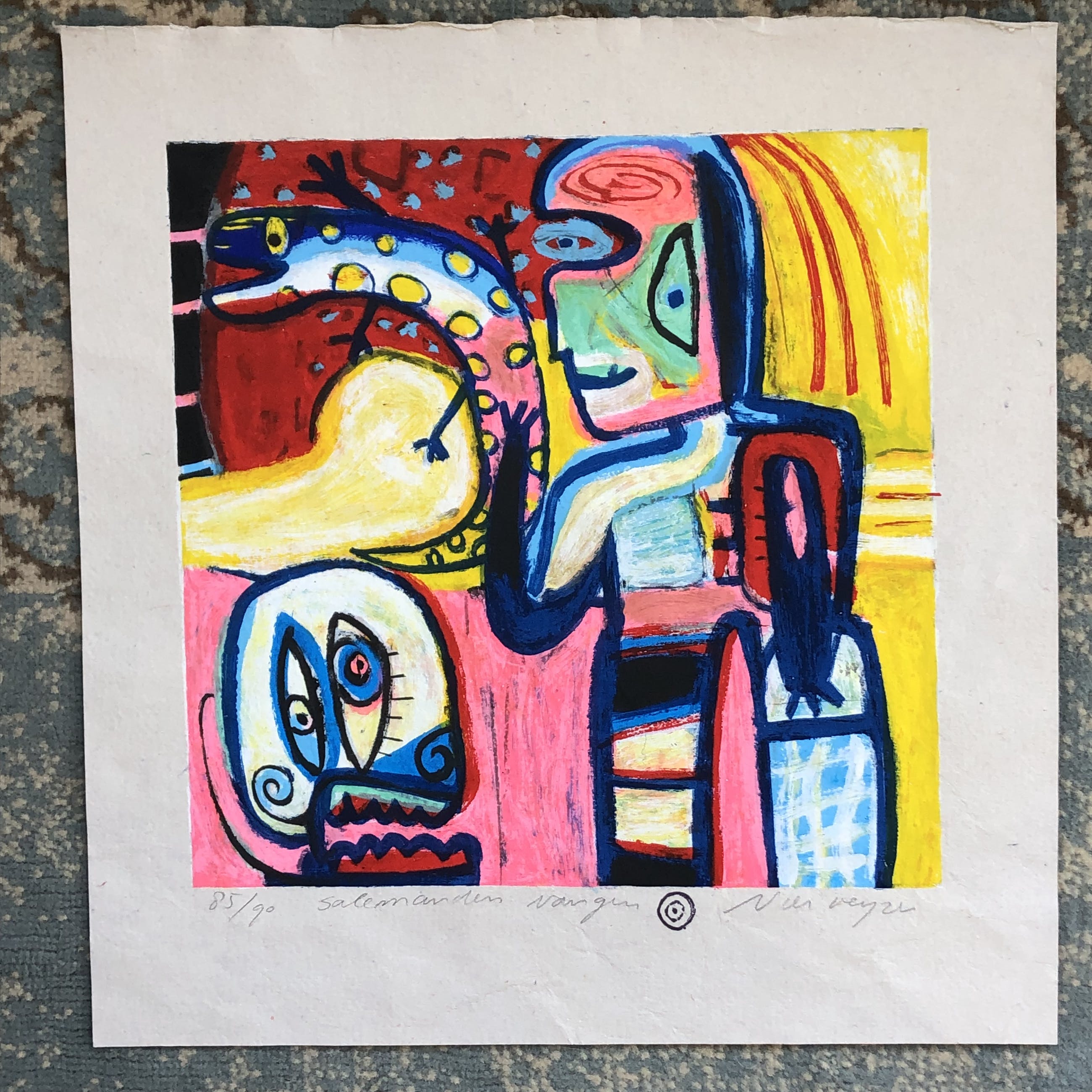 Fraai gekleurde zeefdruk in zeer heldere kleuren van Henk Vierveijzer. Gesigneerd en genummerd. Het werk verkeert in perfecte conditie. U kunt het werk vooraf komen bekijken bij galerie Rotor of na aankoop ophalen. Het werk kan ook verzonden worden via aangetekende post.
