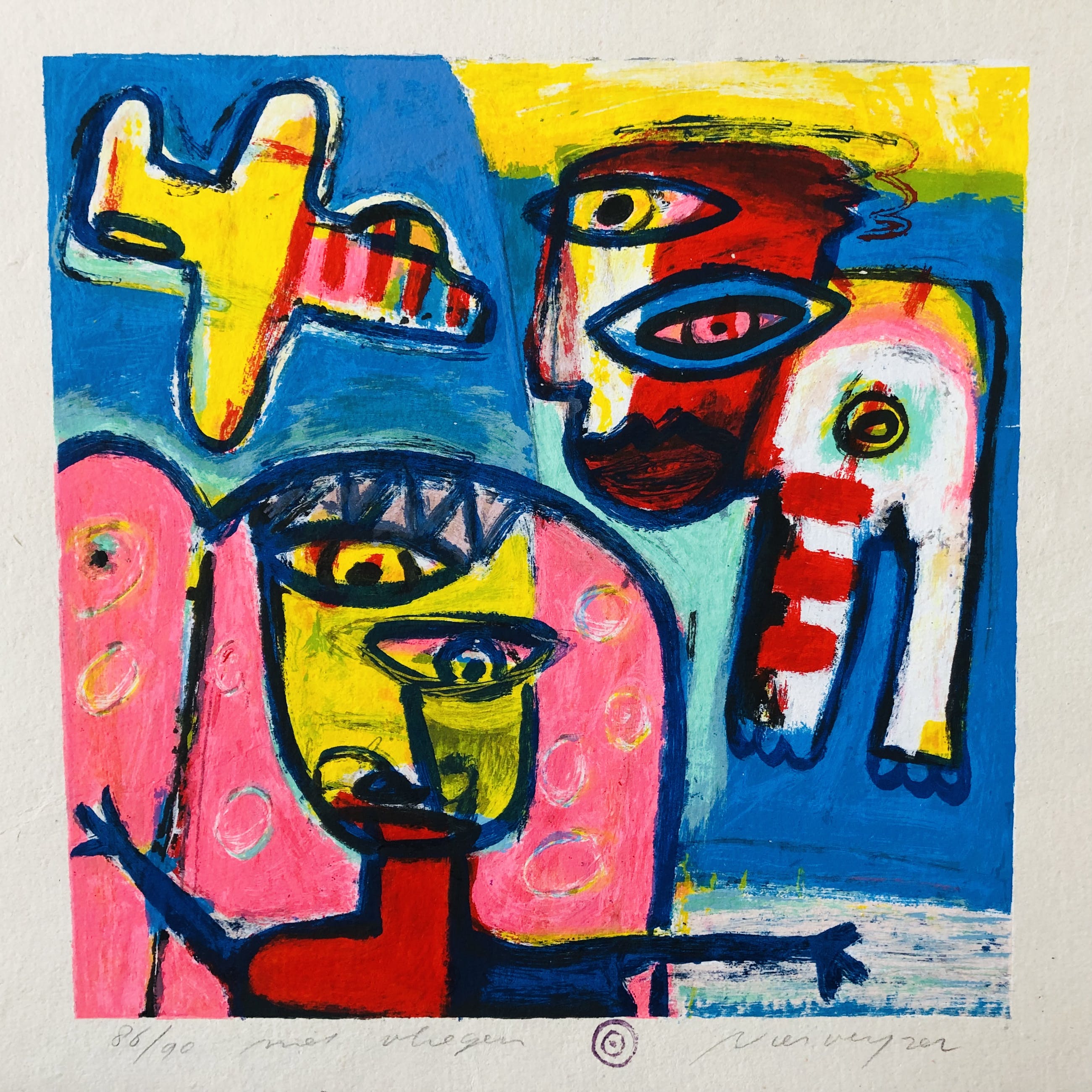 Fraai gekleurde zeefdruk in zeer heldere kleuren van Henk Vierveijzer. Gesigneerd en genummerd. Het werk verkeert in perfecte conditie. U kunt het werk vooraf komen bekijken bij galerie Rotor of na aankoop ophalen. Het werk kan ook verzonden worden via aangetekende post.