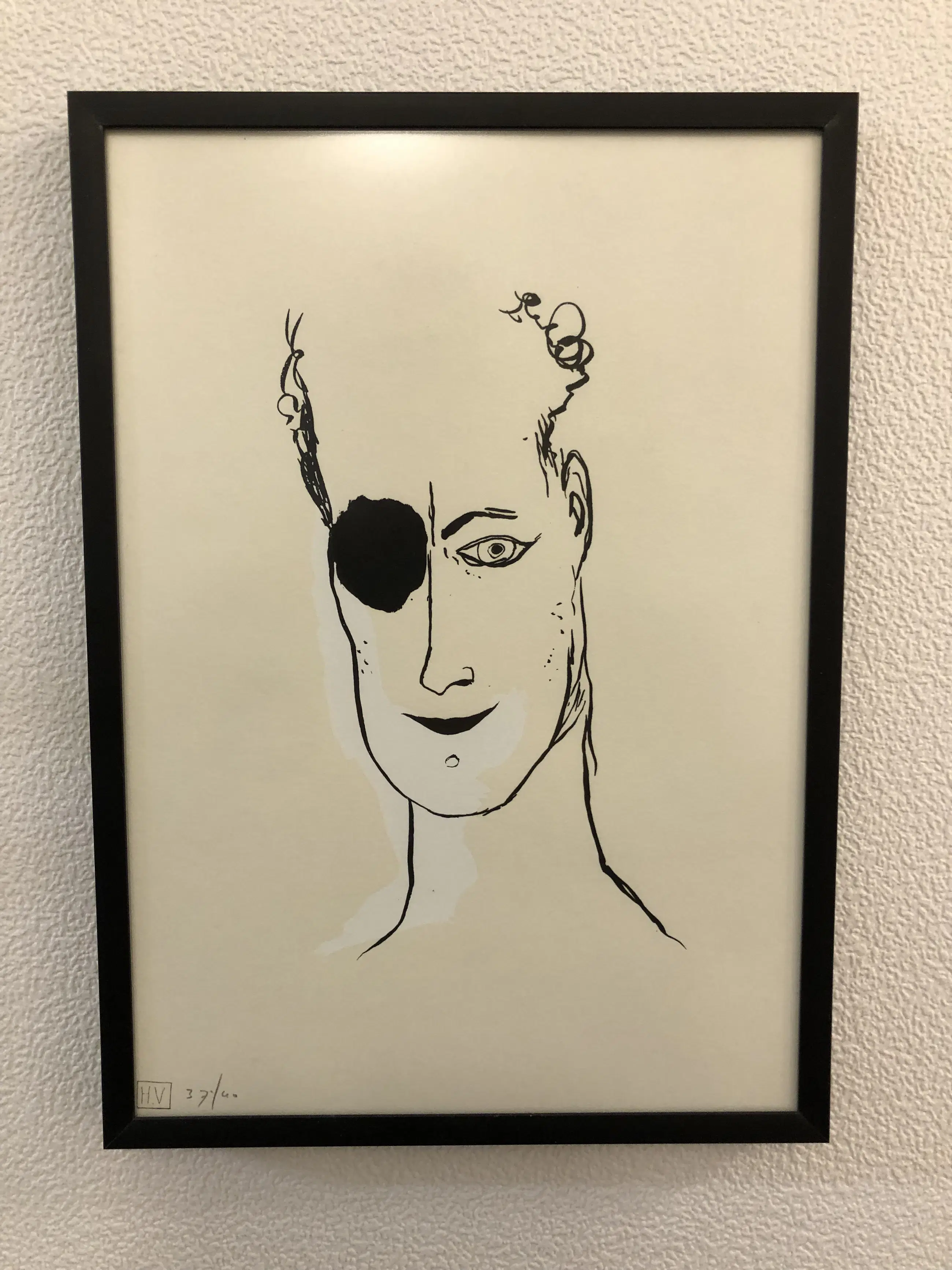 Klein portret van Henk Visch op A-vier formaat (21 x 29,7 cm). Linksonder gesigneerd en genummerd: 37 van oplage 40. Maakt deel uit van een reeks van 12 portretten uit 1995 met de titel To You. Het papier is geler dan op sommige foto's te zien is, maar daardoor steken de witte plekken beter af (wat waarschijnlijk de bedoeling was van de kunstenaar). Verzending in overleg of afhalen in Maastricht.