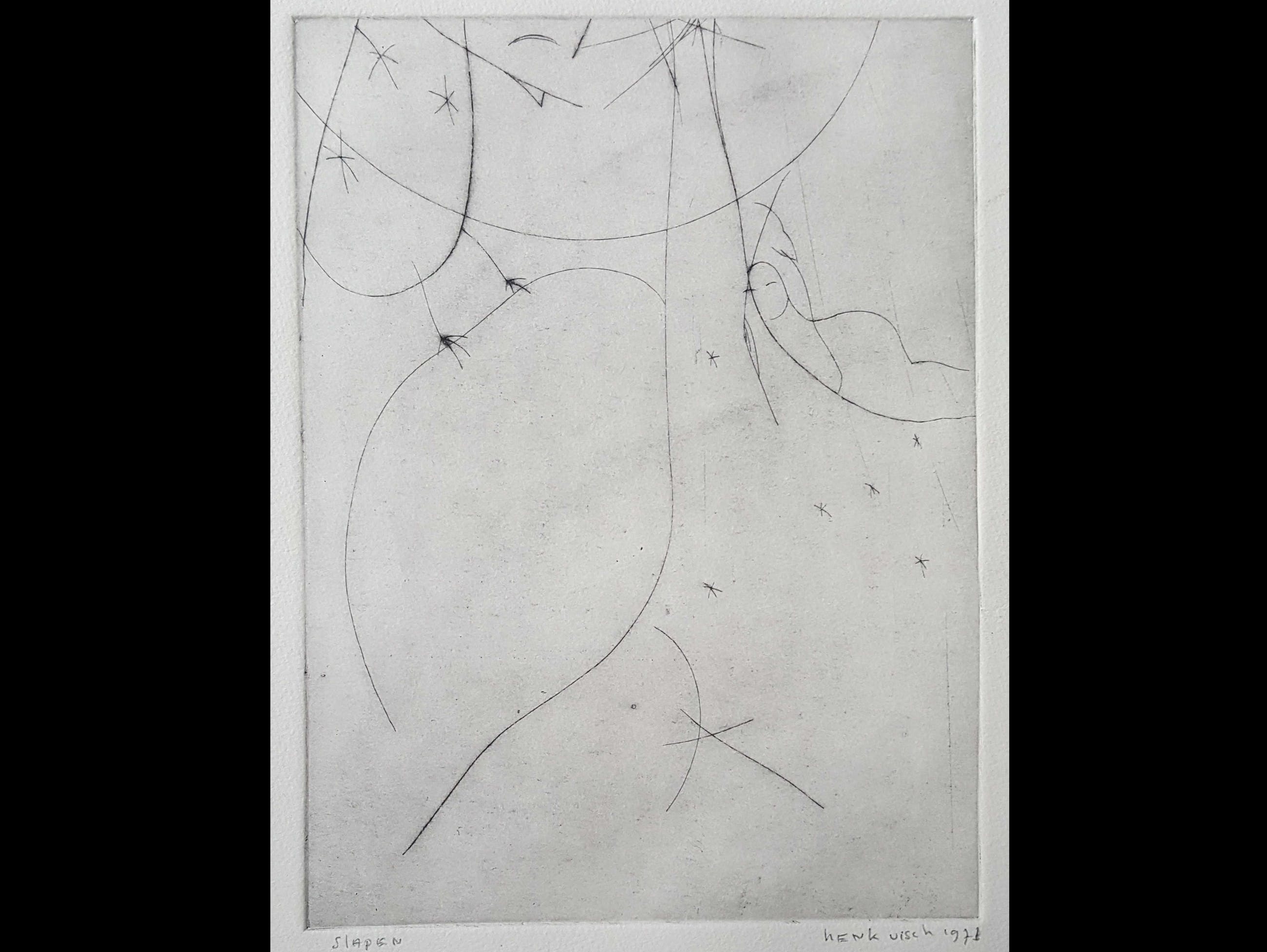 Ets van Henk Visch. Wel gesigneerd, niet genummerd. Ooit gekocht in Den Bosch. Op de achterzijde sporen van tape door herinlijsten.