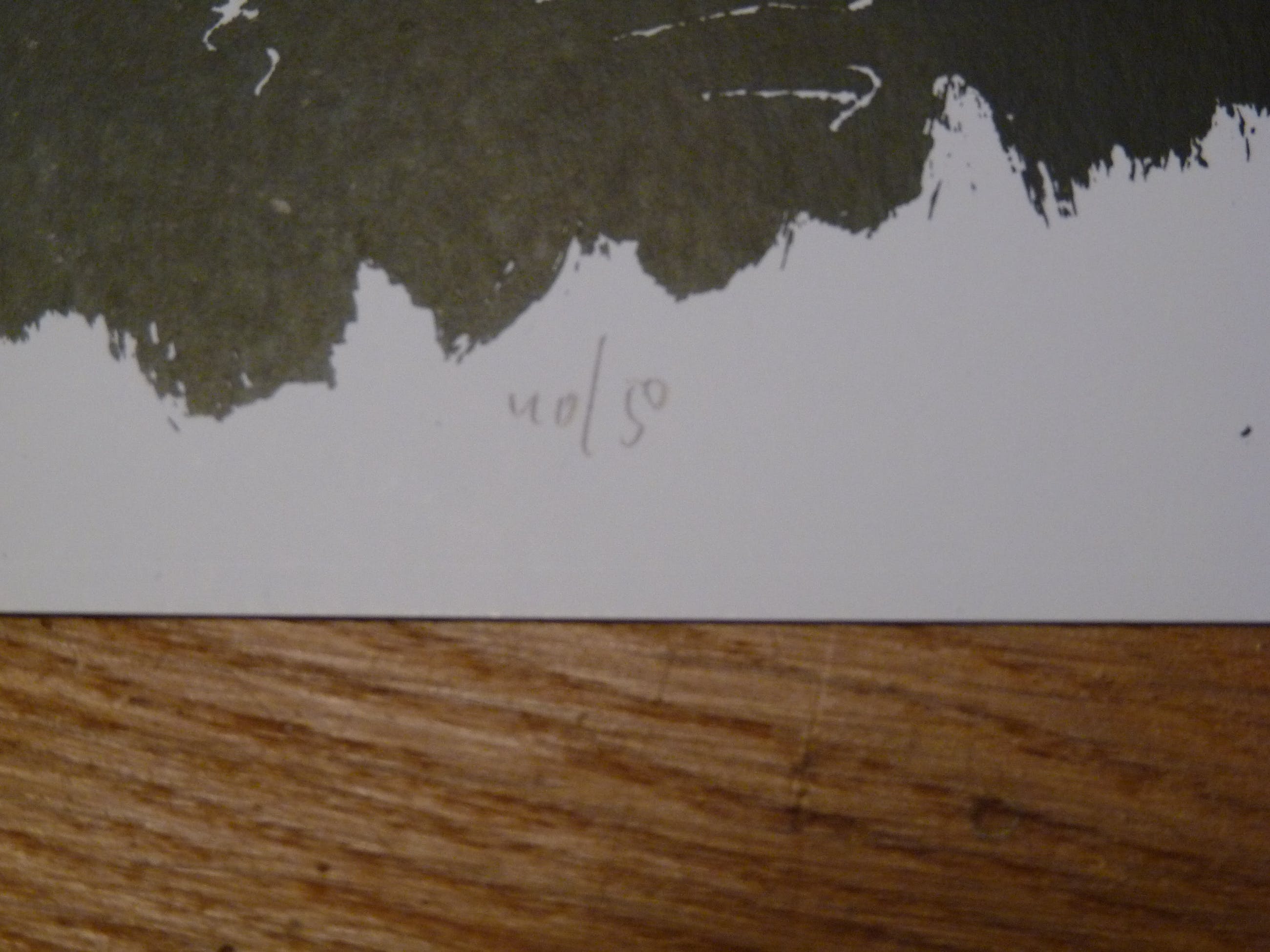 Grafiekblad uit kleine oplage 40/50 Blad is in goede conditie, is wel gelijst geweest, getuige de twee stukjes tape aan bovenkant achterzijde. (zie detailfoto)