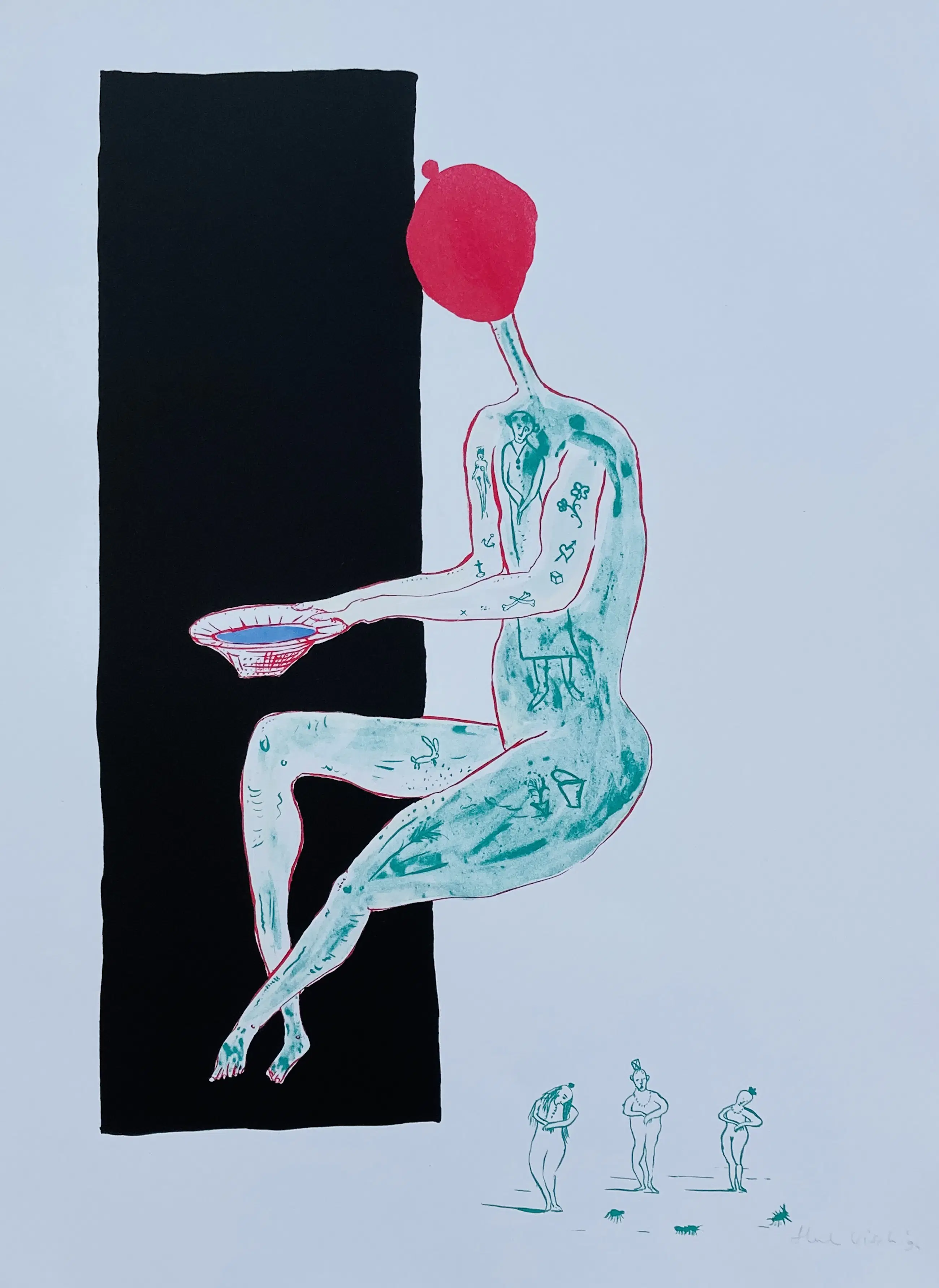 Een fraaie zeefdruk van de Nederlandse kunstenaar Henk Visch (1950). Het werk komt uit de AMC Grafiek map uit 1994. Het werk verkeert in uitstekende conditie en kan zo ingelijst worden.