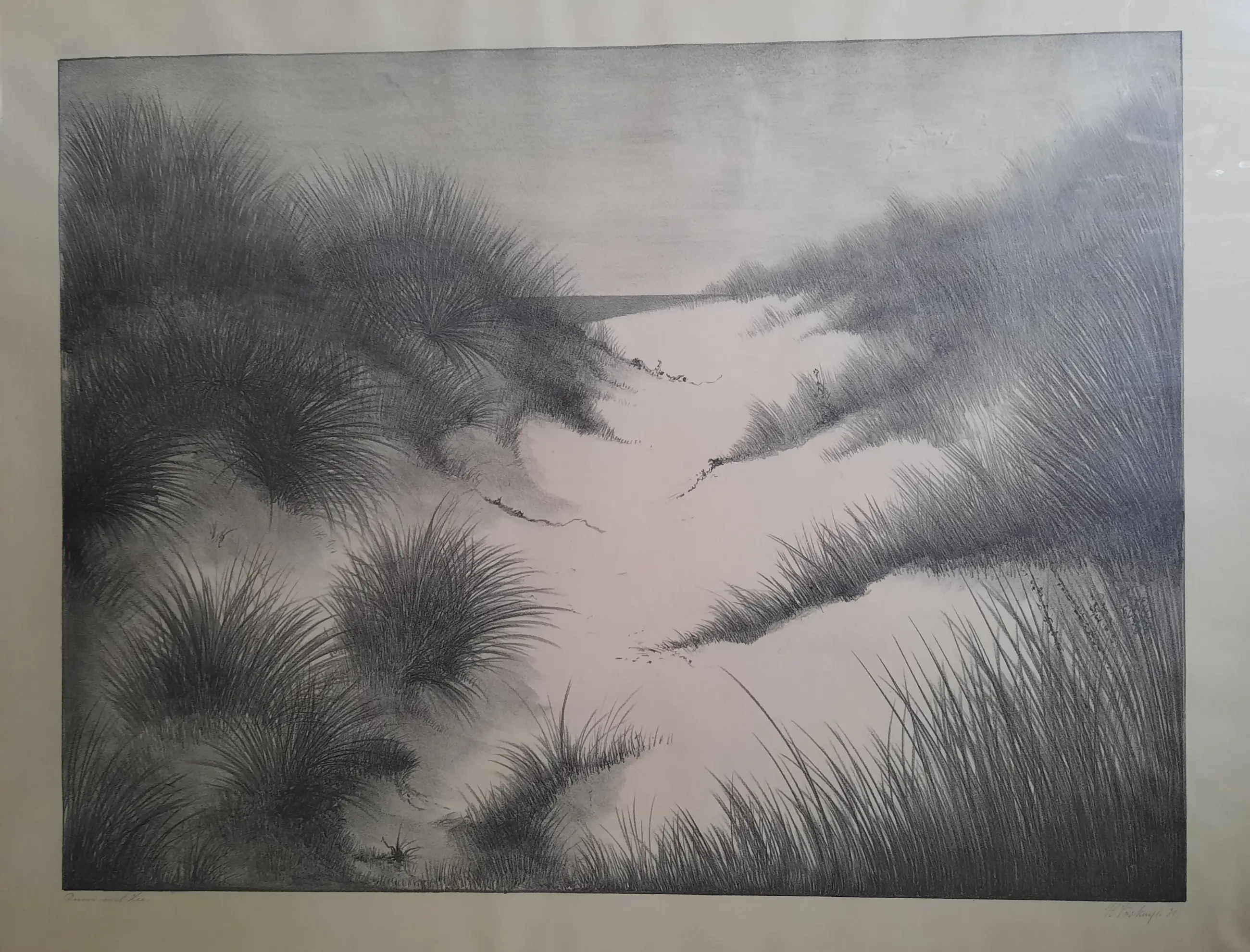 Litho is in goede orde, netjes ingelijst in aluminium frame, bijna 100 jaar oud, iets vergeeld